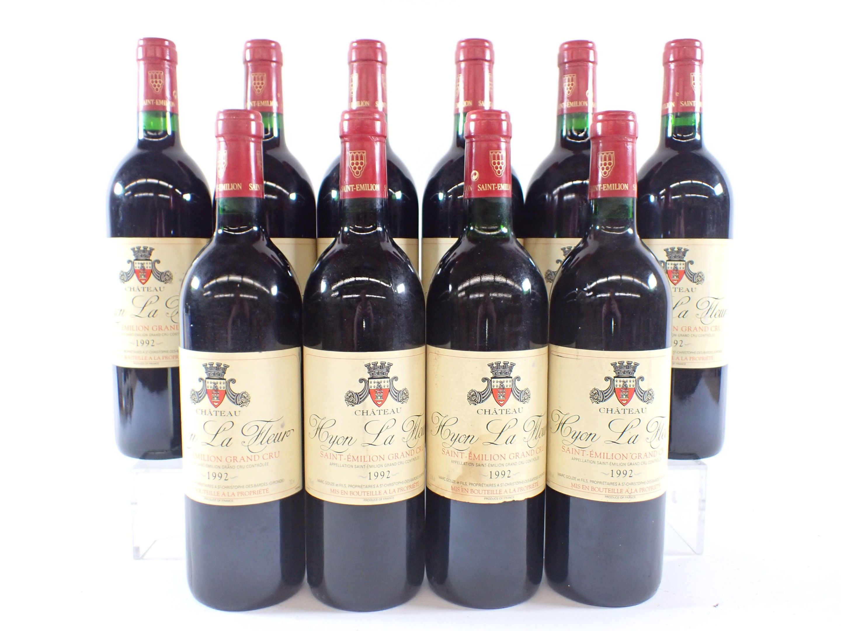 BORDEAUX - 10 bottles, Saint-Emilion Grand Cru, Château Hyon La Fleur, 1992. 1 BG (-). Caps with traces. Slightly dirty to dirty labels, two of which are slightly damaged.
