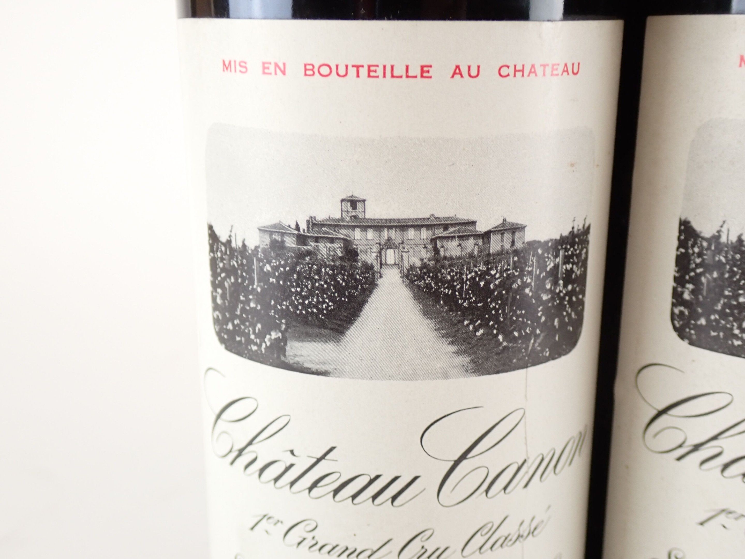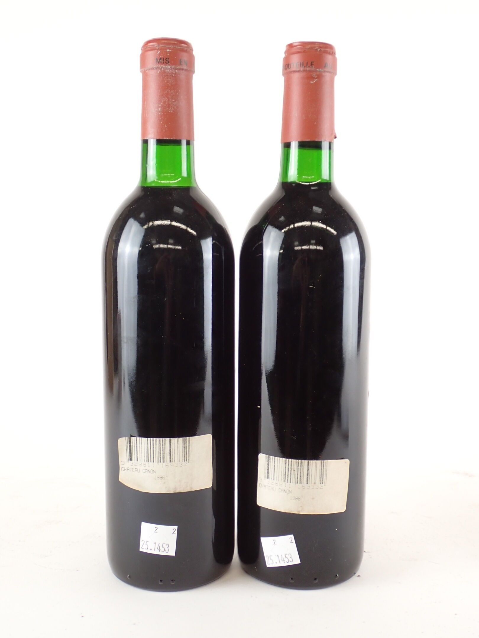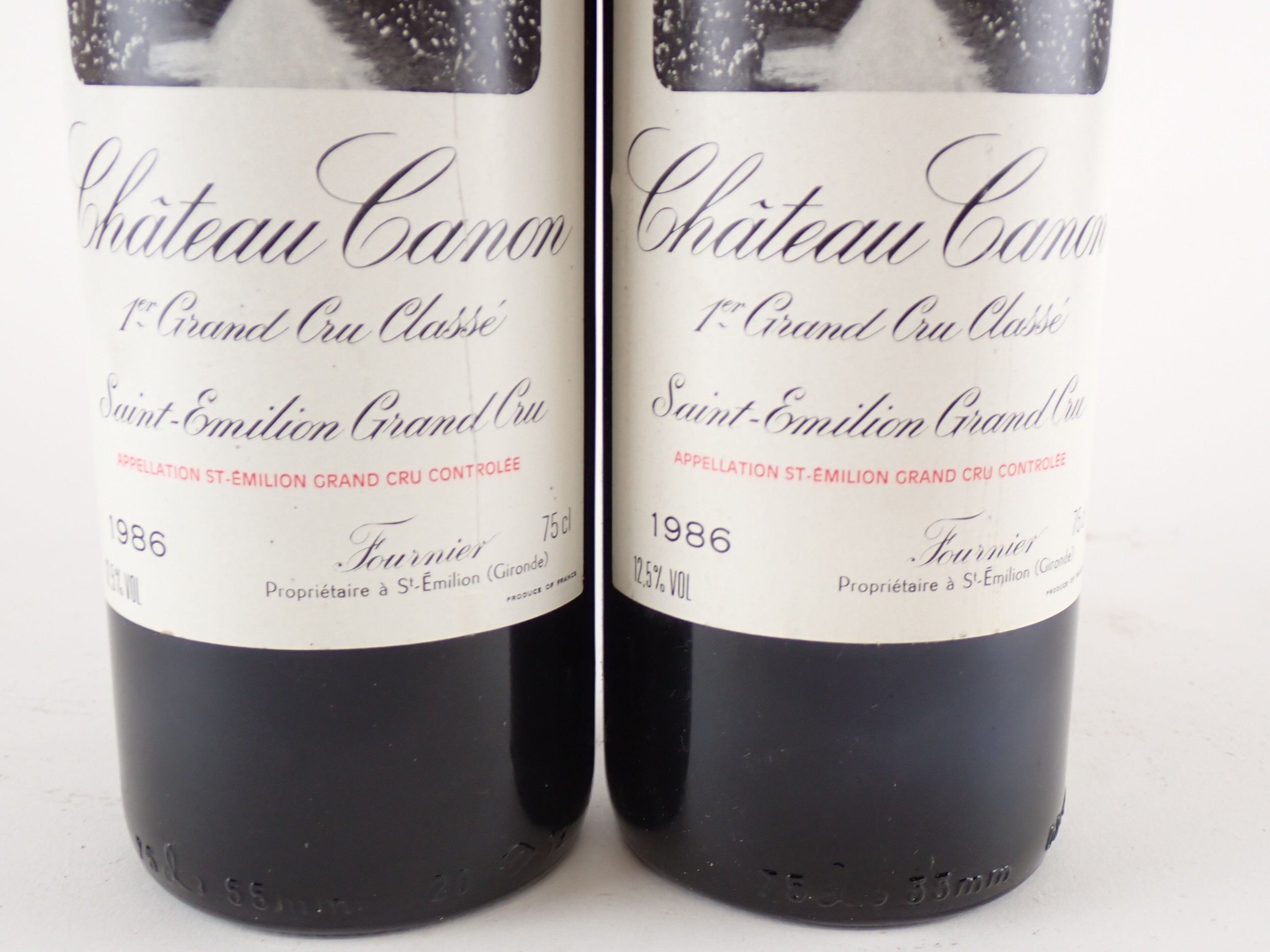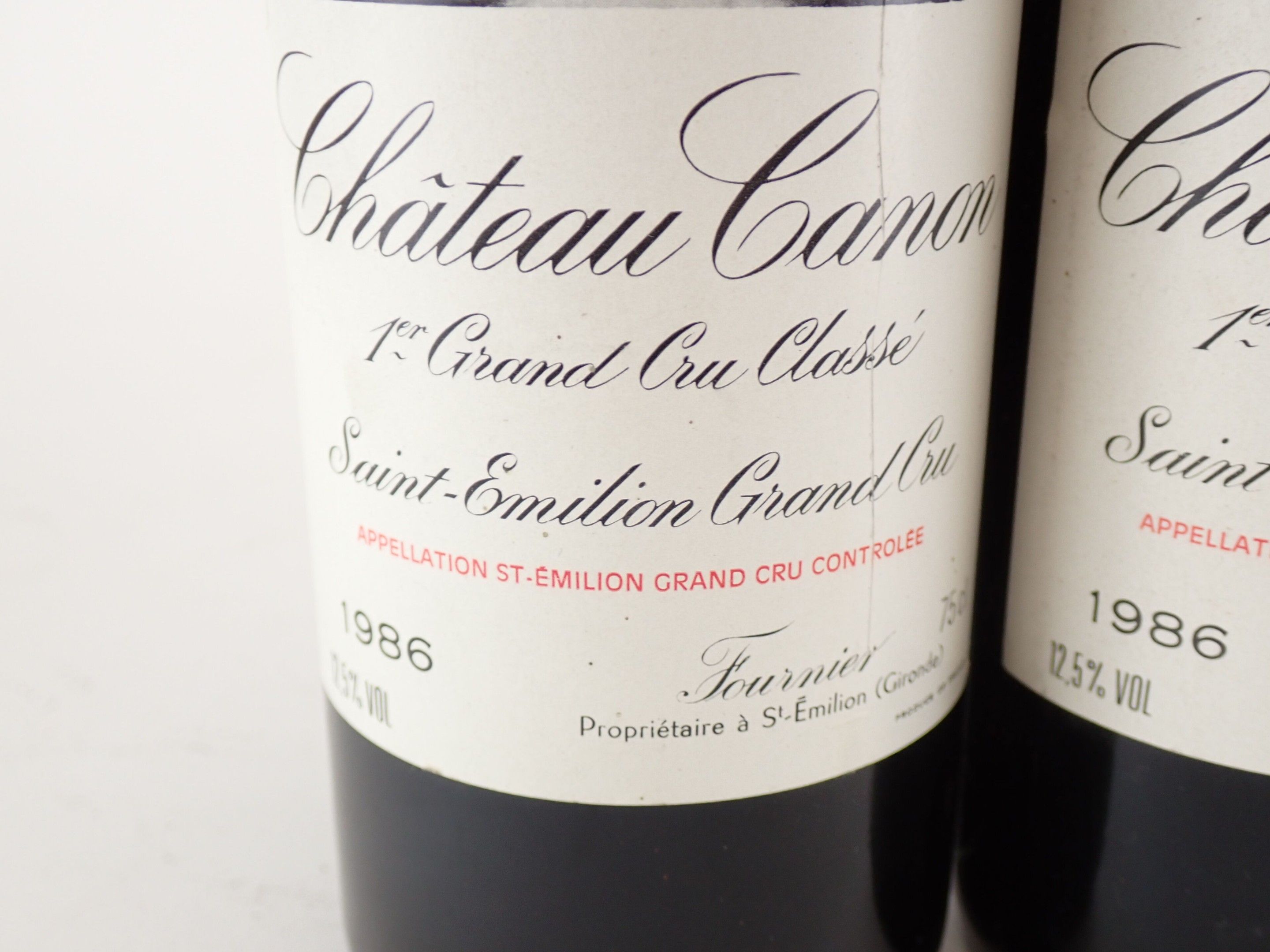 BORDEAUX - 2 bottles, Saint-Emilion Grand Cru, Château Canon, 1er Grand Cru Classé, 1986. 1 BG and 1 BG (-). Caps slightly dirty with traces of rubbing, one of which is slightly damaged at the bottom of the skirt. Some light marks on the labels.