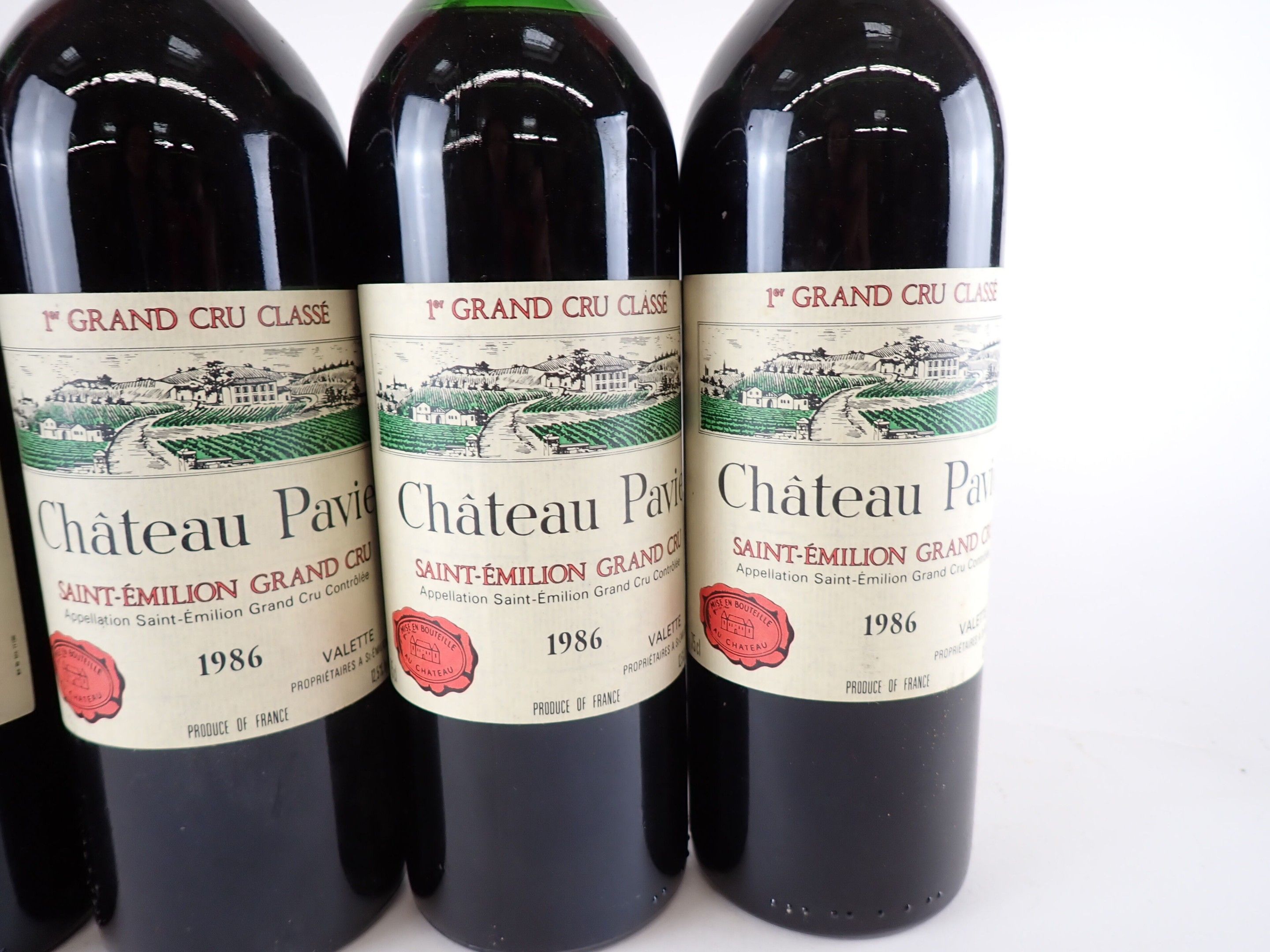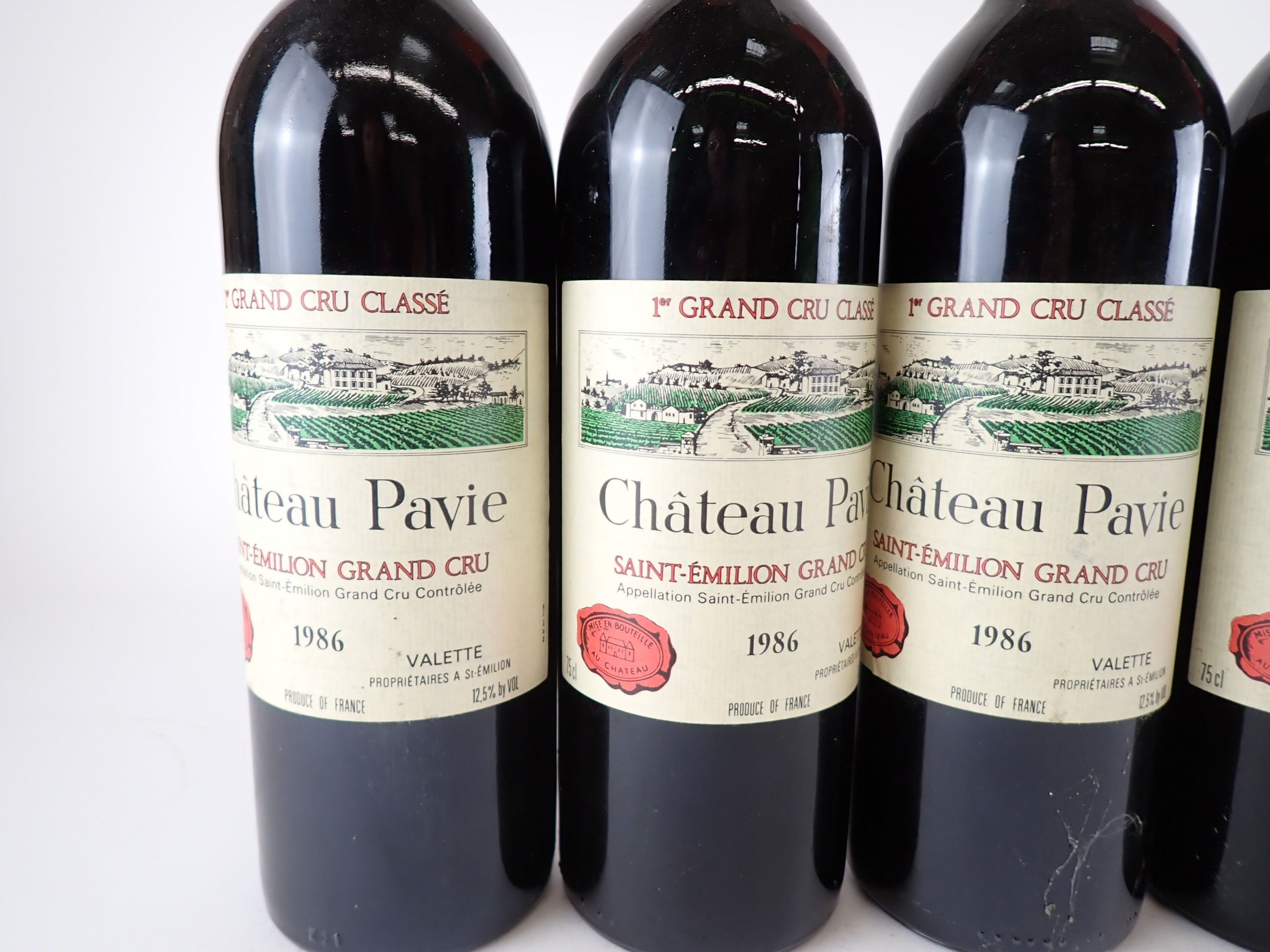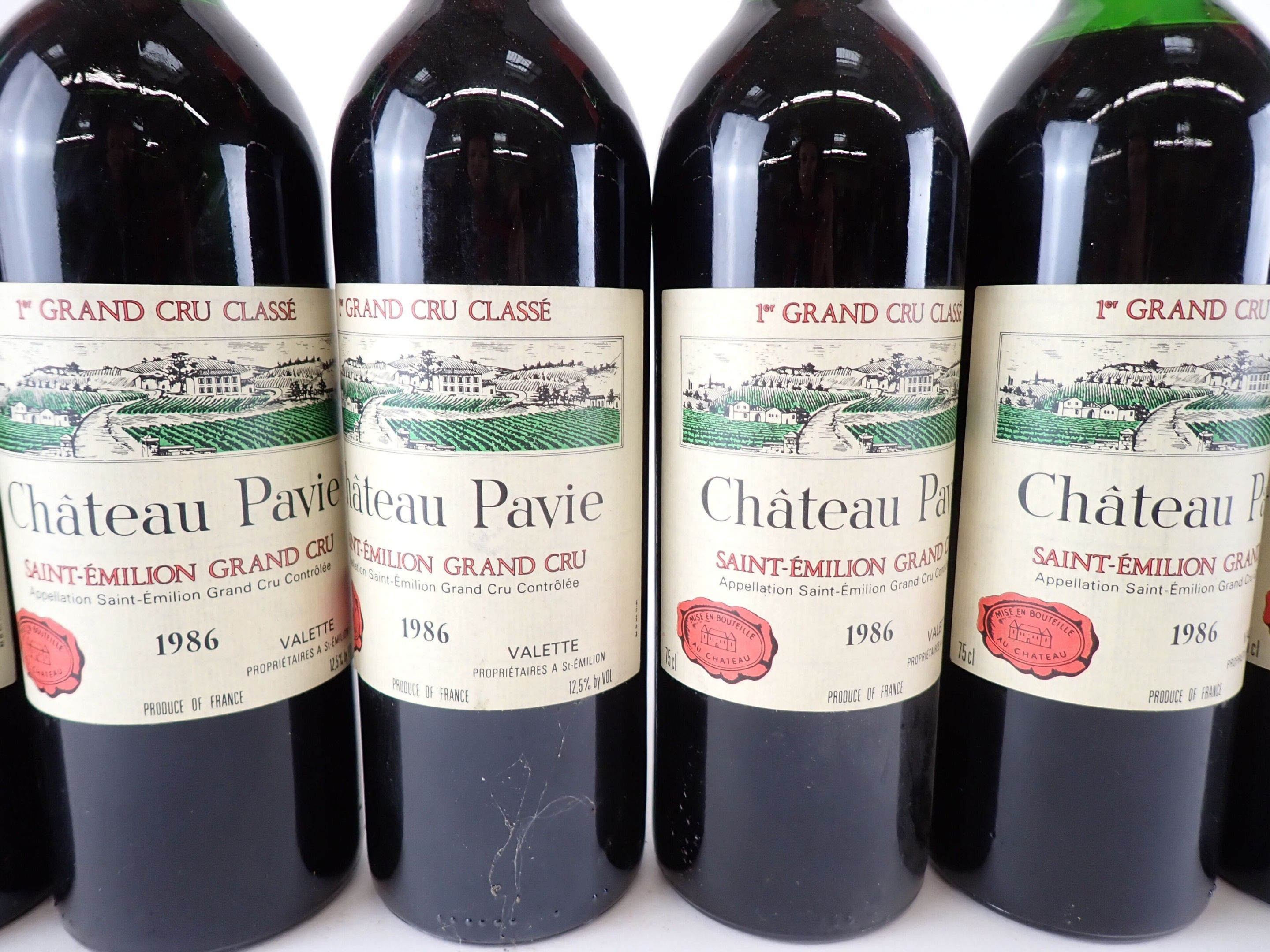 BORDEAUX - 6 bottles, Saint-Emilion Grand Cru, Château Pavie, 1er Grand Cru Classé 'A' 1986. Corks very slightly engaged. 1 BG, 1BG (-), 3 TLB and 1 HE (-). Caps slightly curved with traces. Two labels with slight marks.