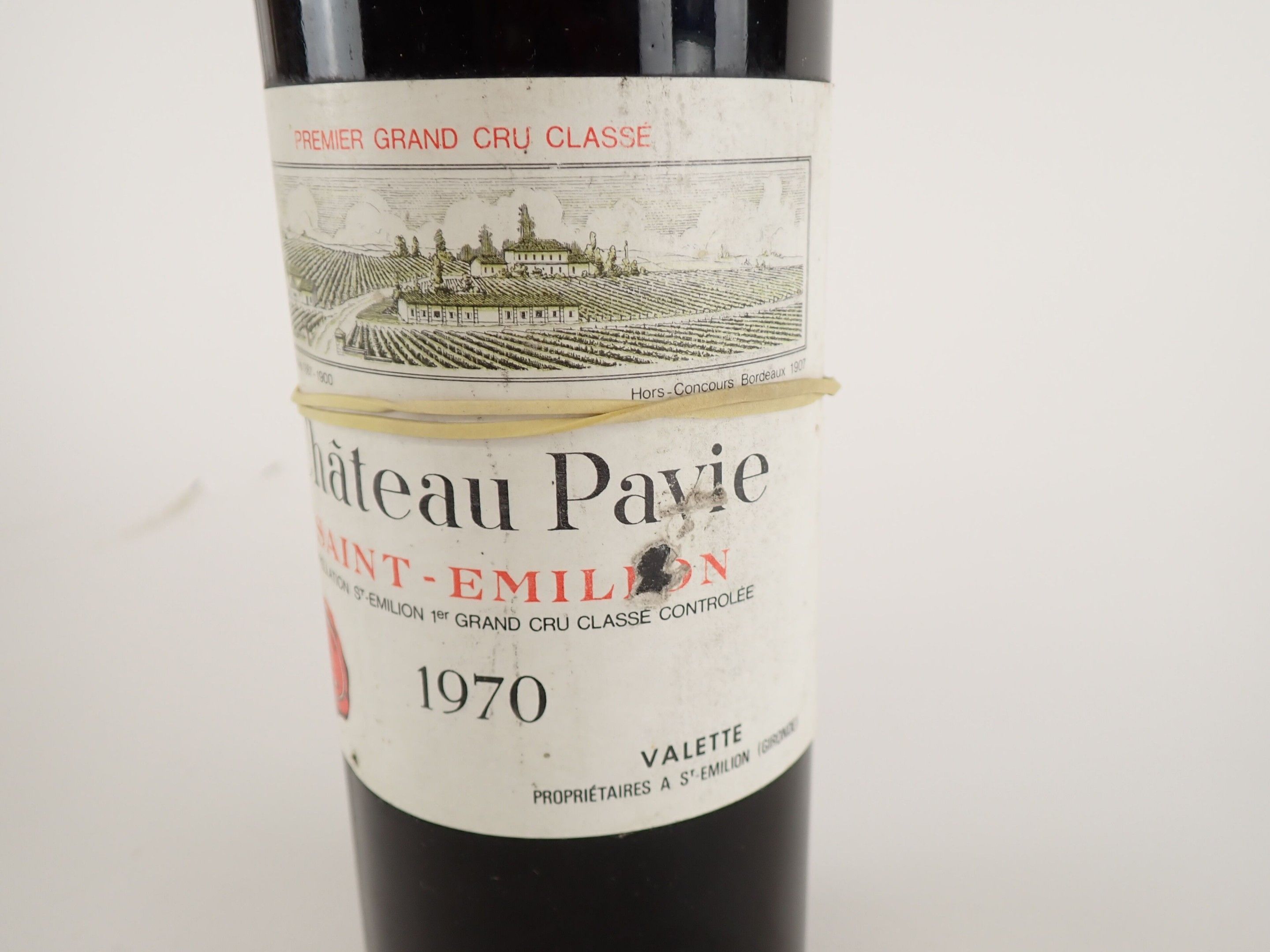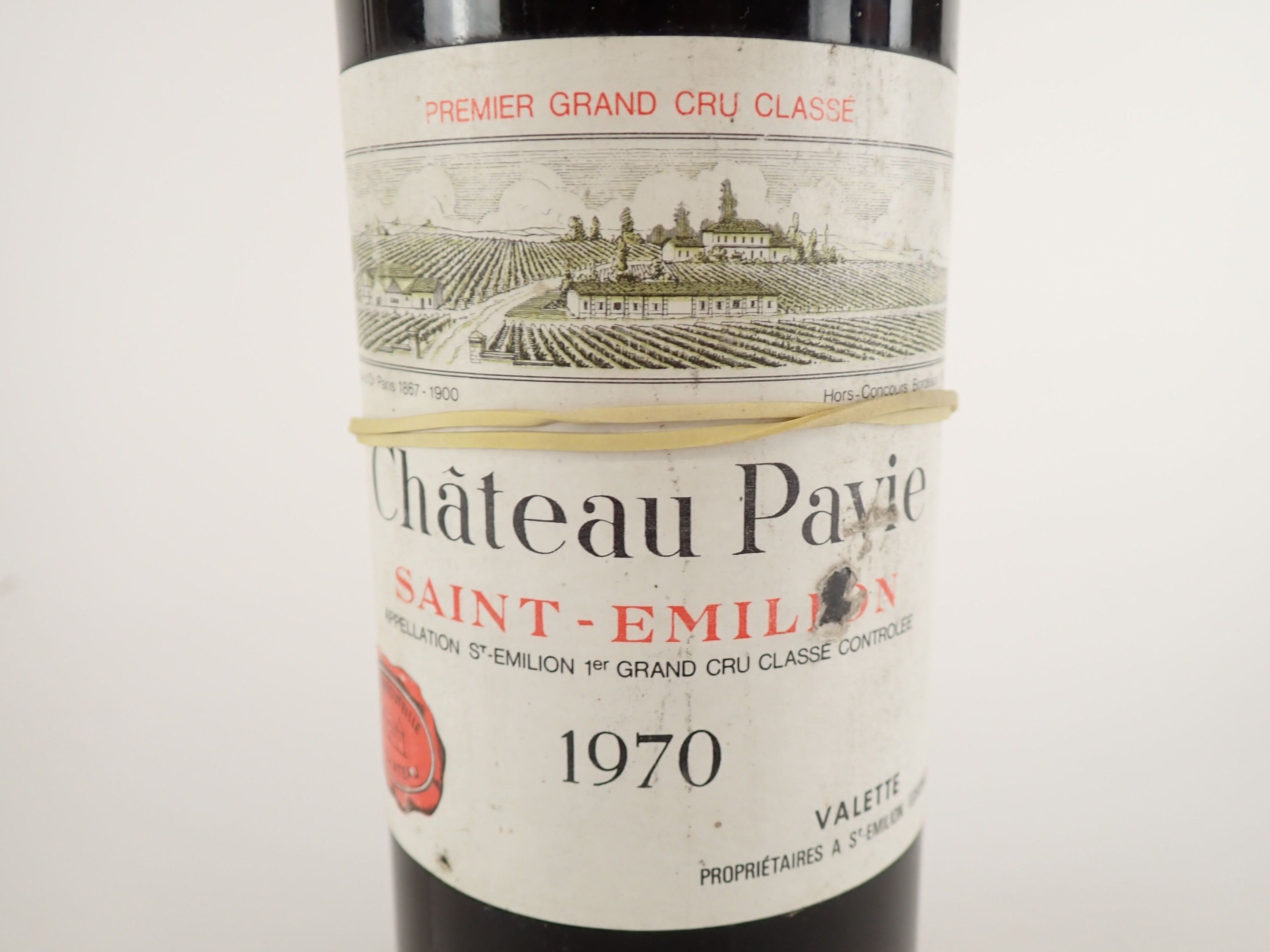 BORDEAUX - 1 bottle, Saint-Emilion Grand Cru, Château Pavie, 1er Grand Cru Classé 'A', 1970. TLB. Label slightly soiled with a small tear and almost completely peeled off.