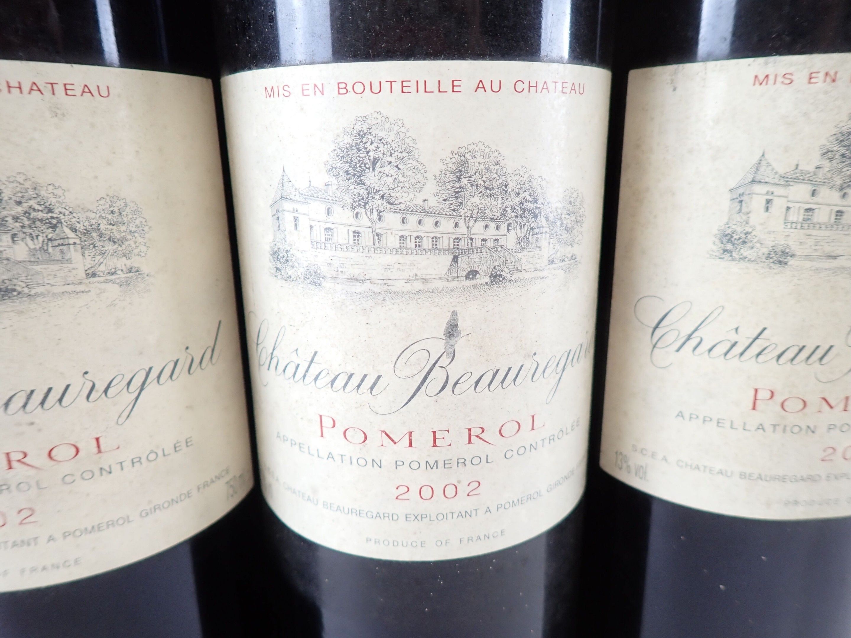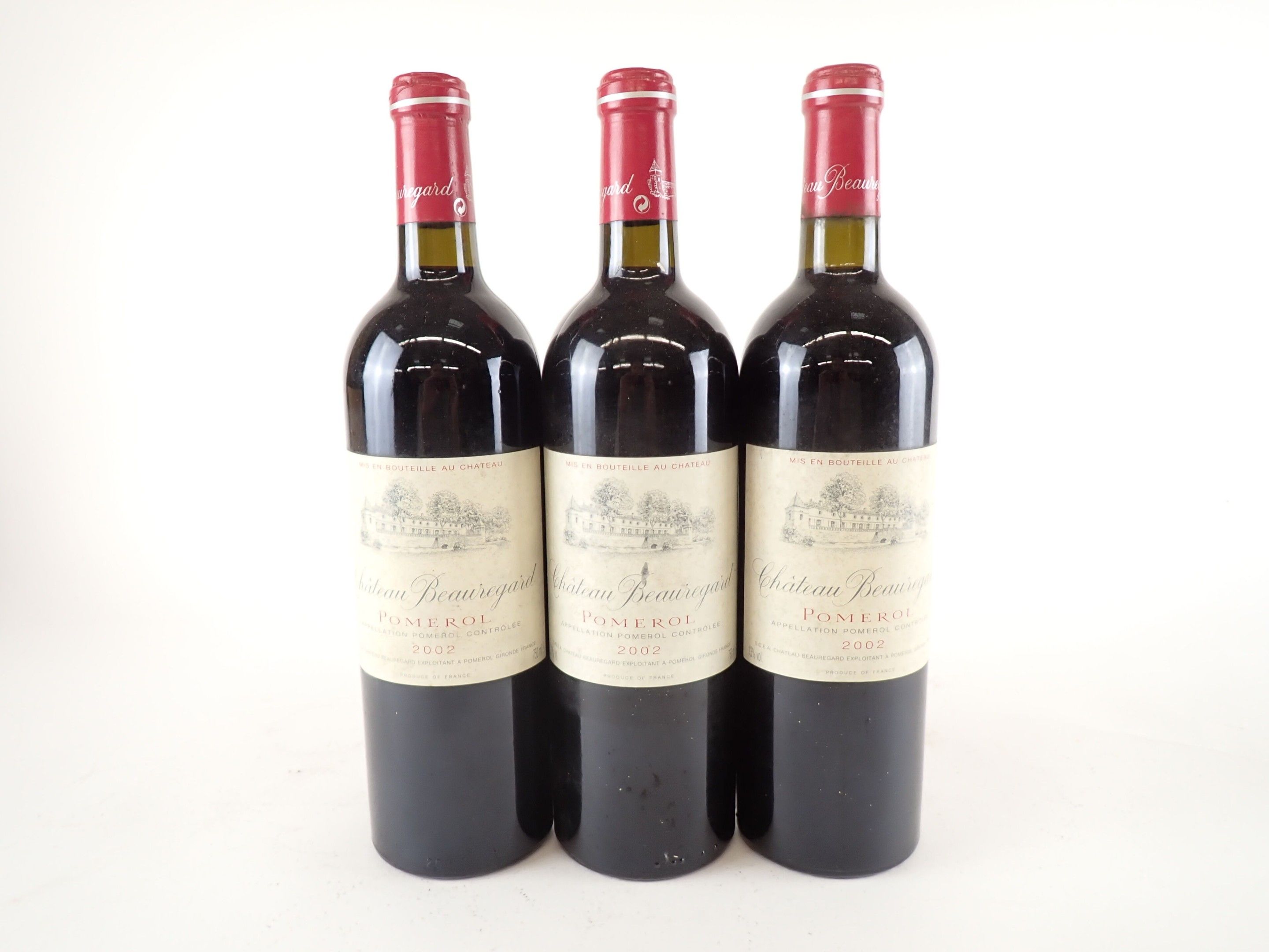 BORDEAUX - 3 bottles, Pomerol, Château Beauregard, 2002. 2 BG (+) and 1 BG. Faded, slightly dirty labels, one with a small scratch.