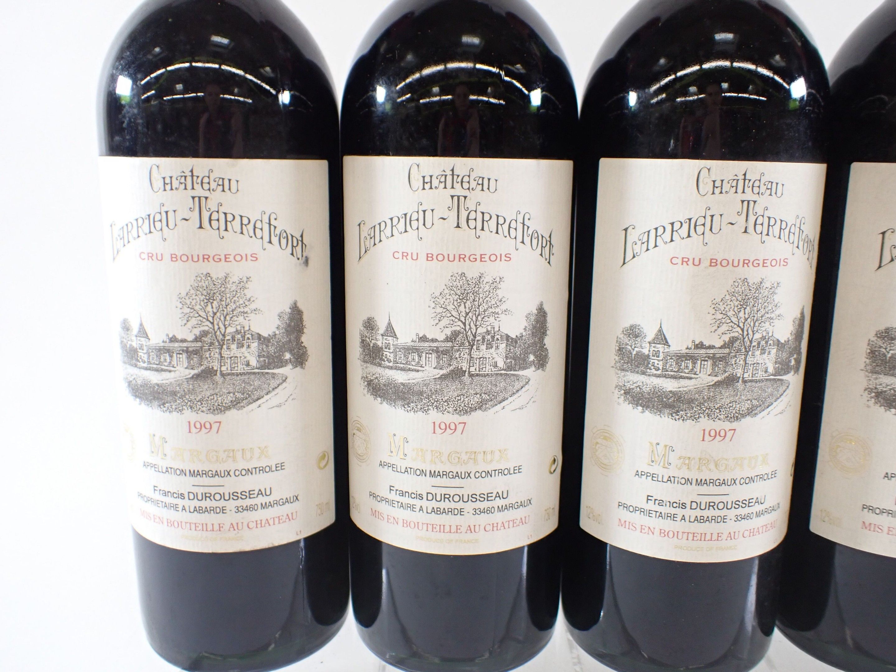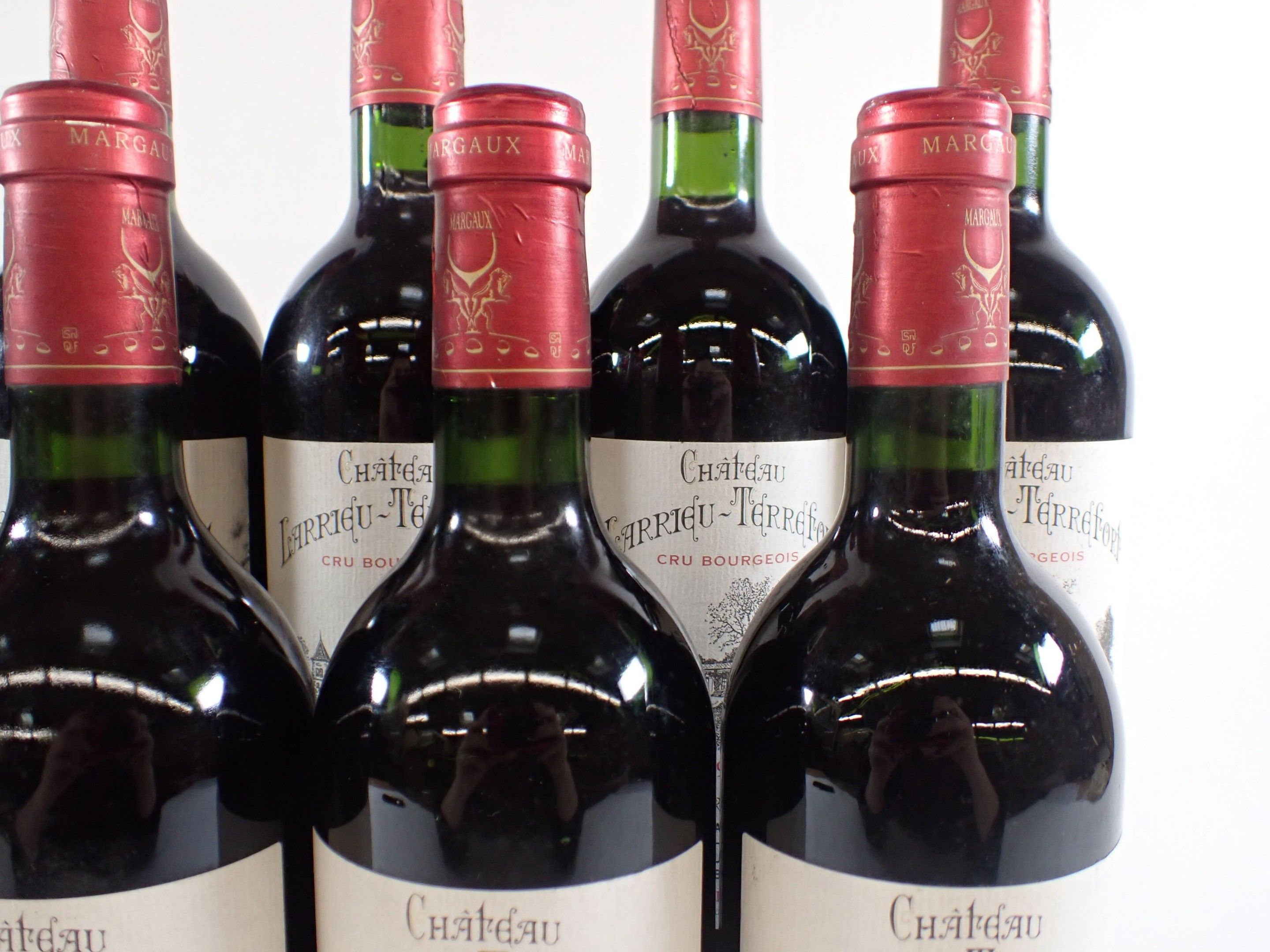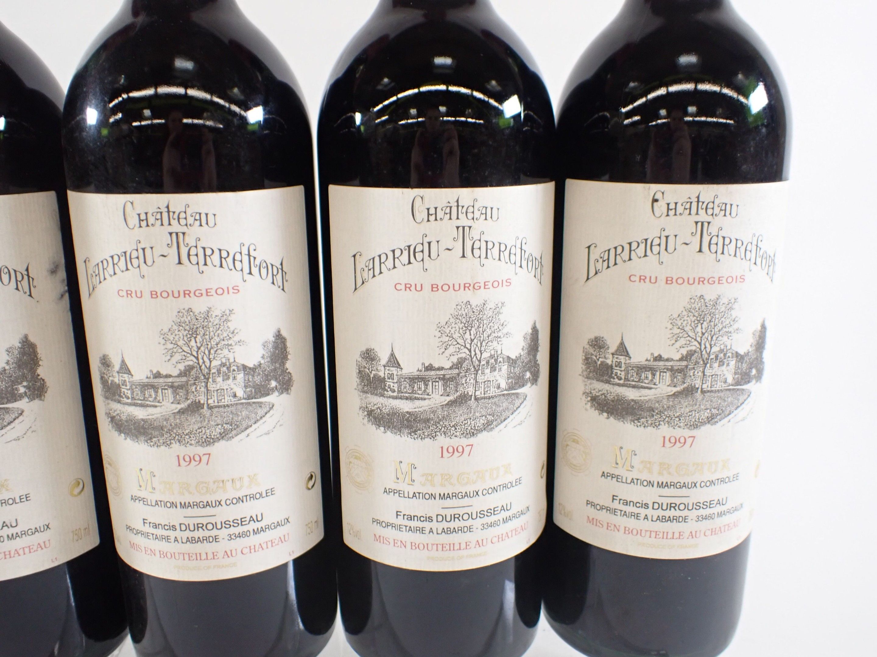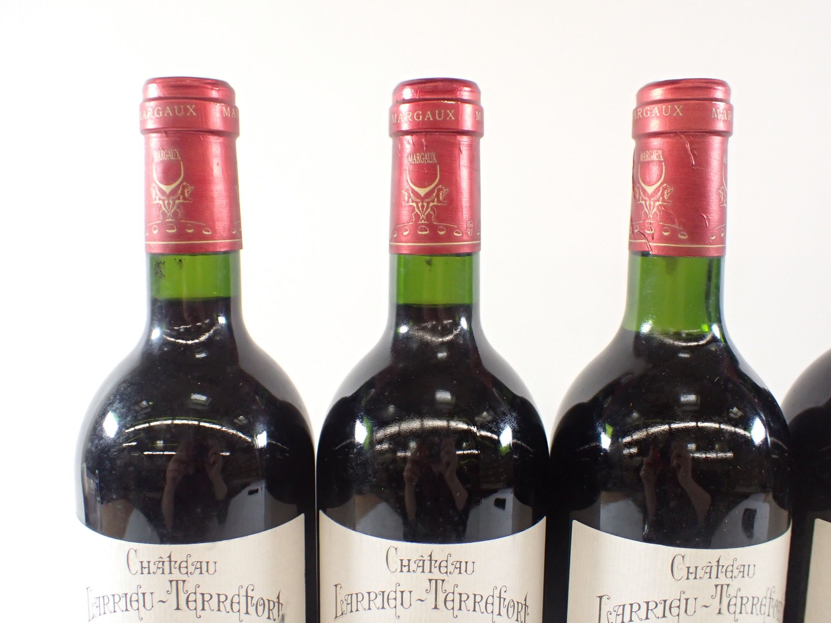 BORDEAUX - 11 bottles, Margaux, Château Larrieu-Terrefort, Cru Bourgeois, 1997. 1 BG. Caps slightly bent. Labels with a few light marks, three of which are also slightly damaged.