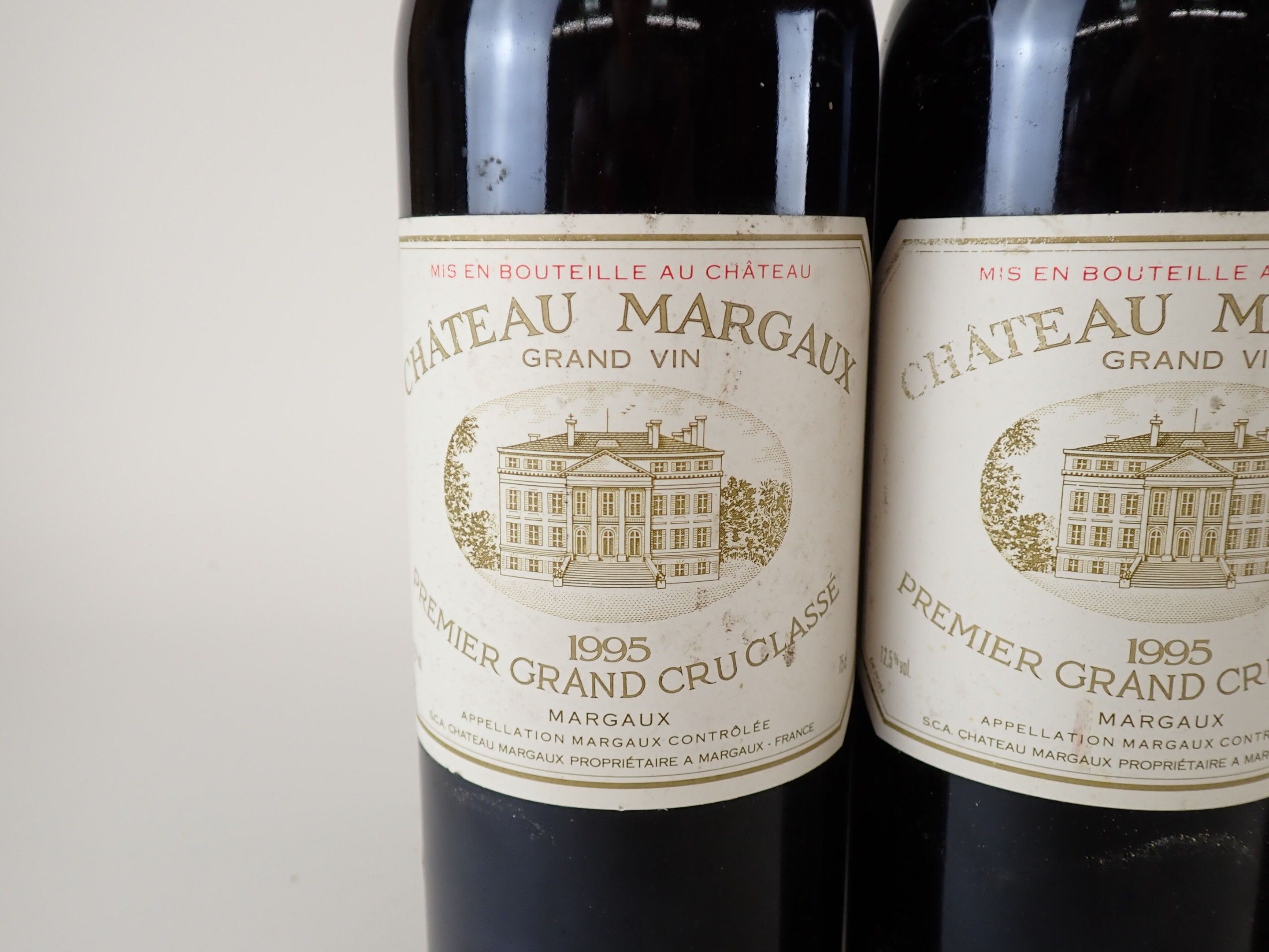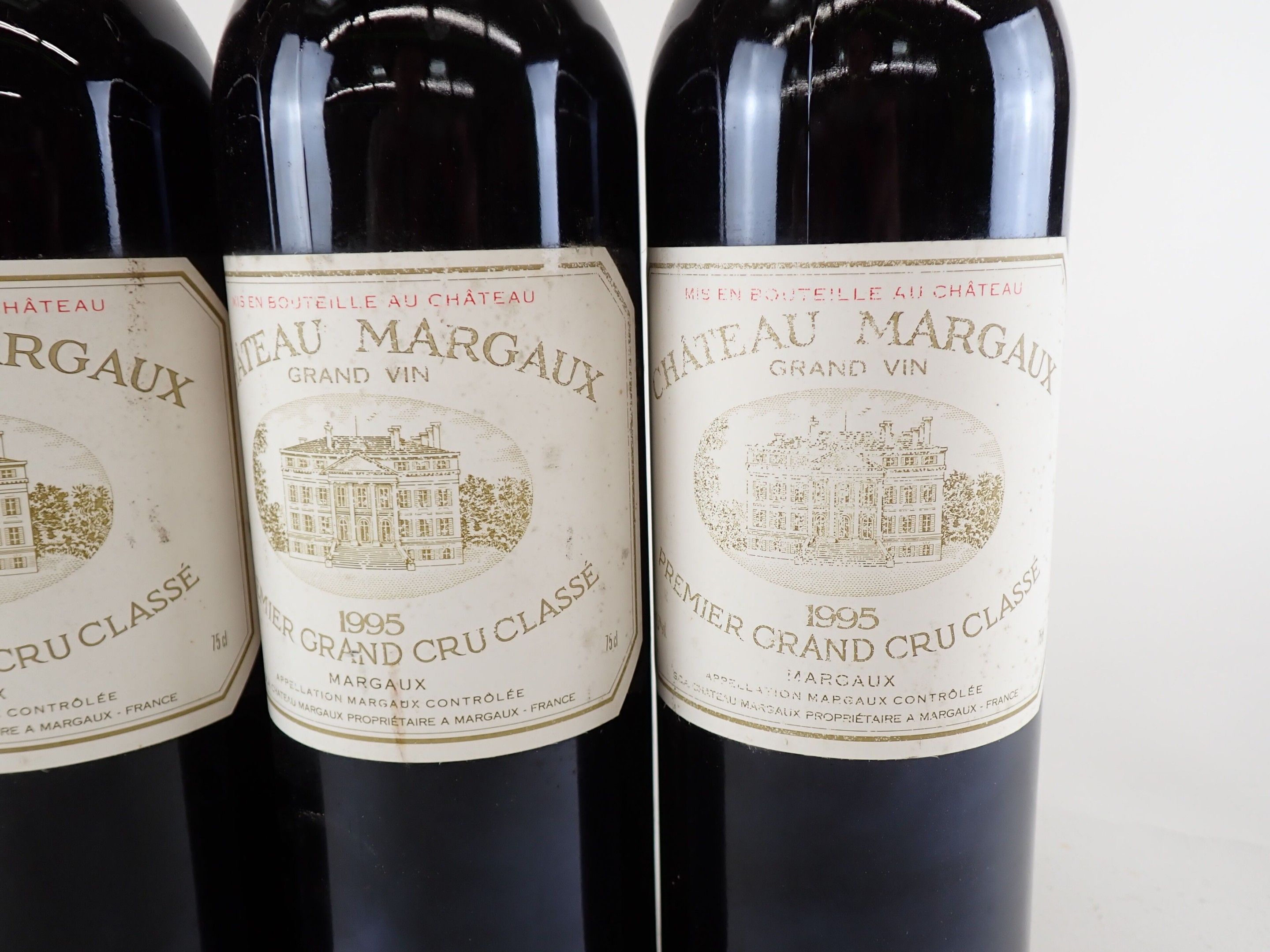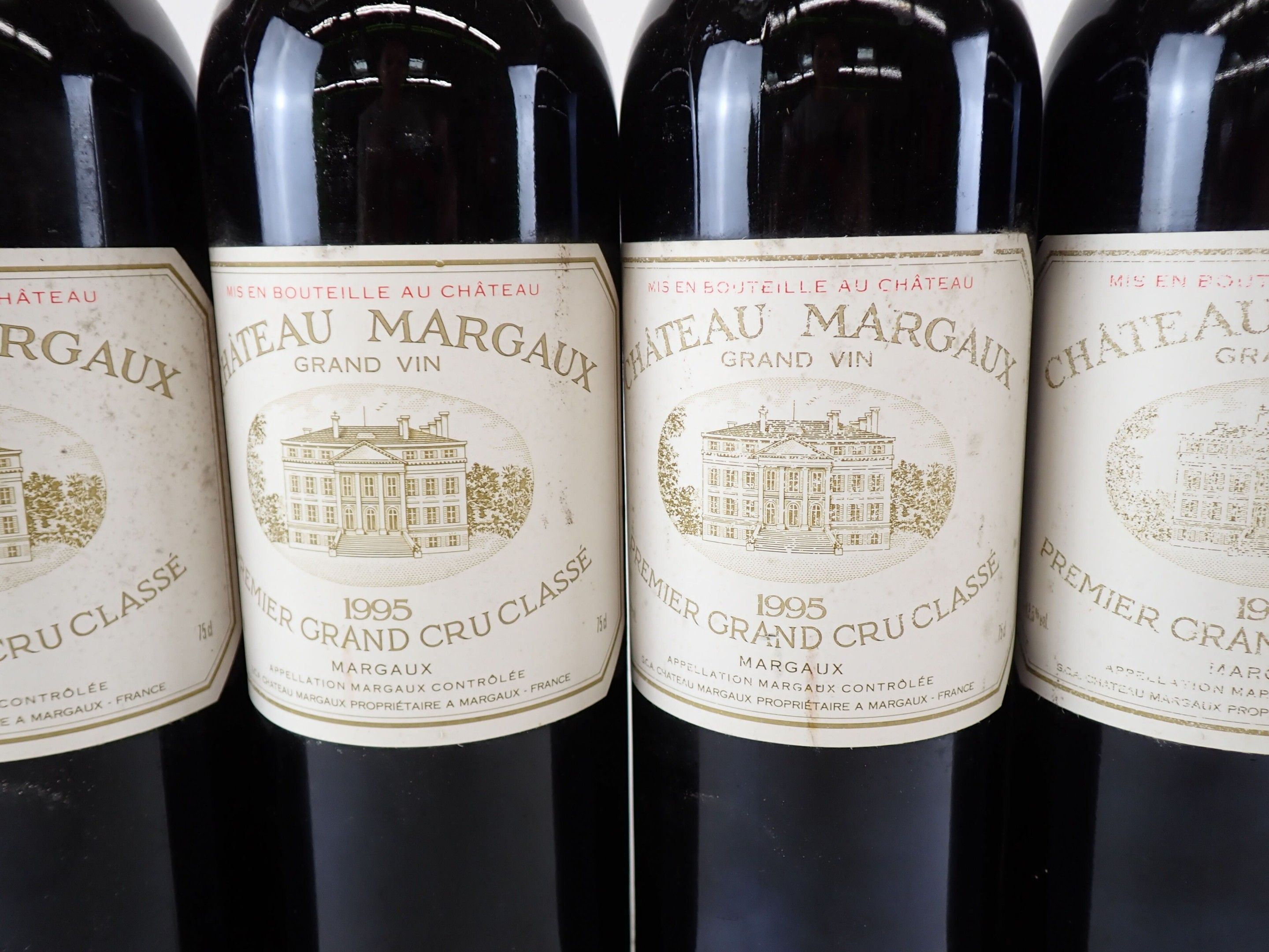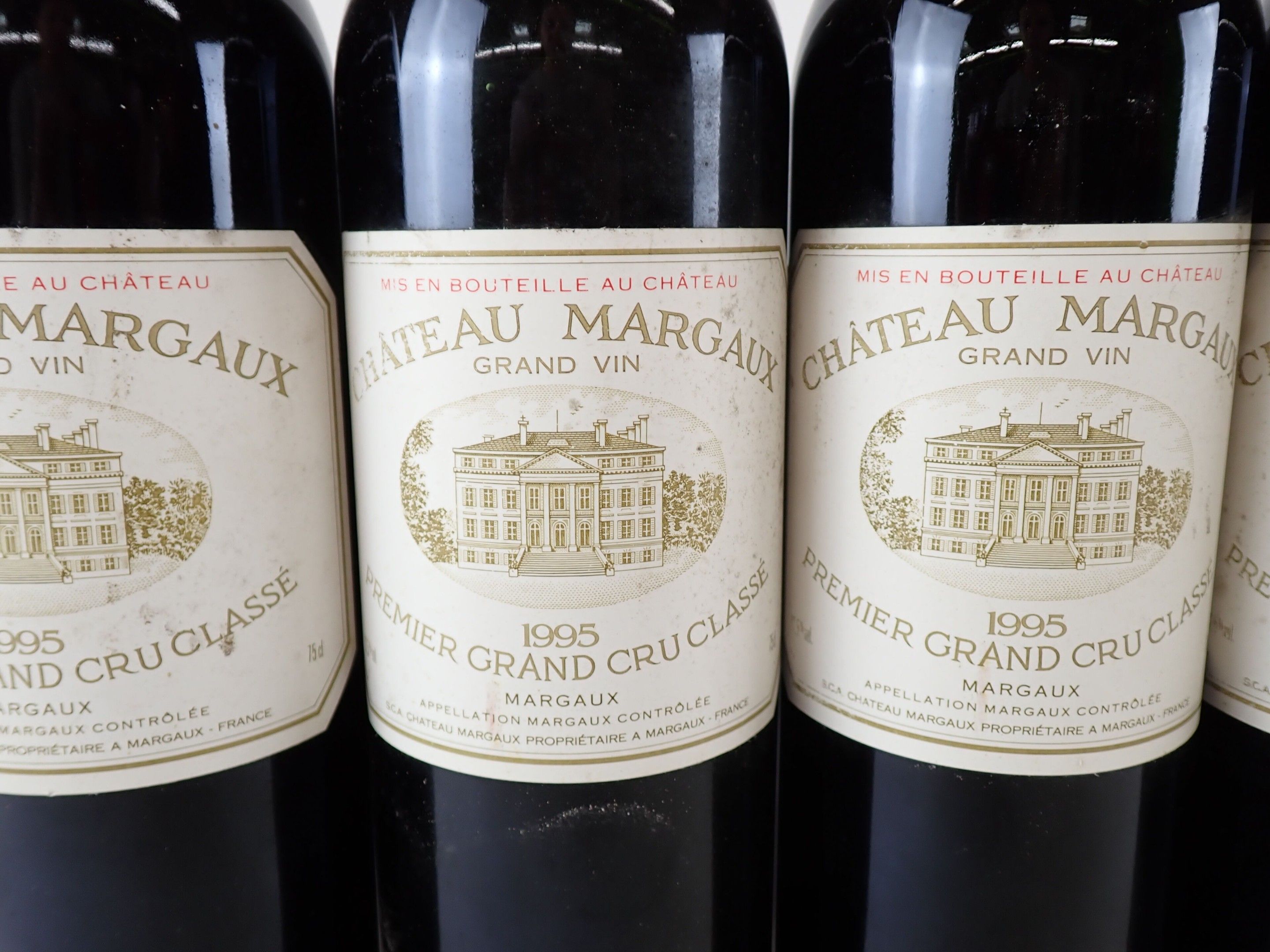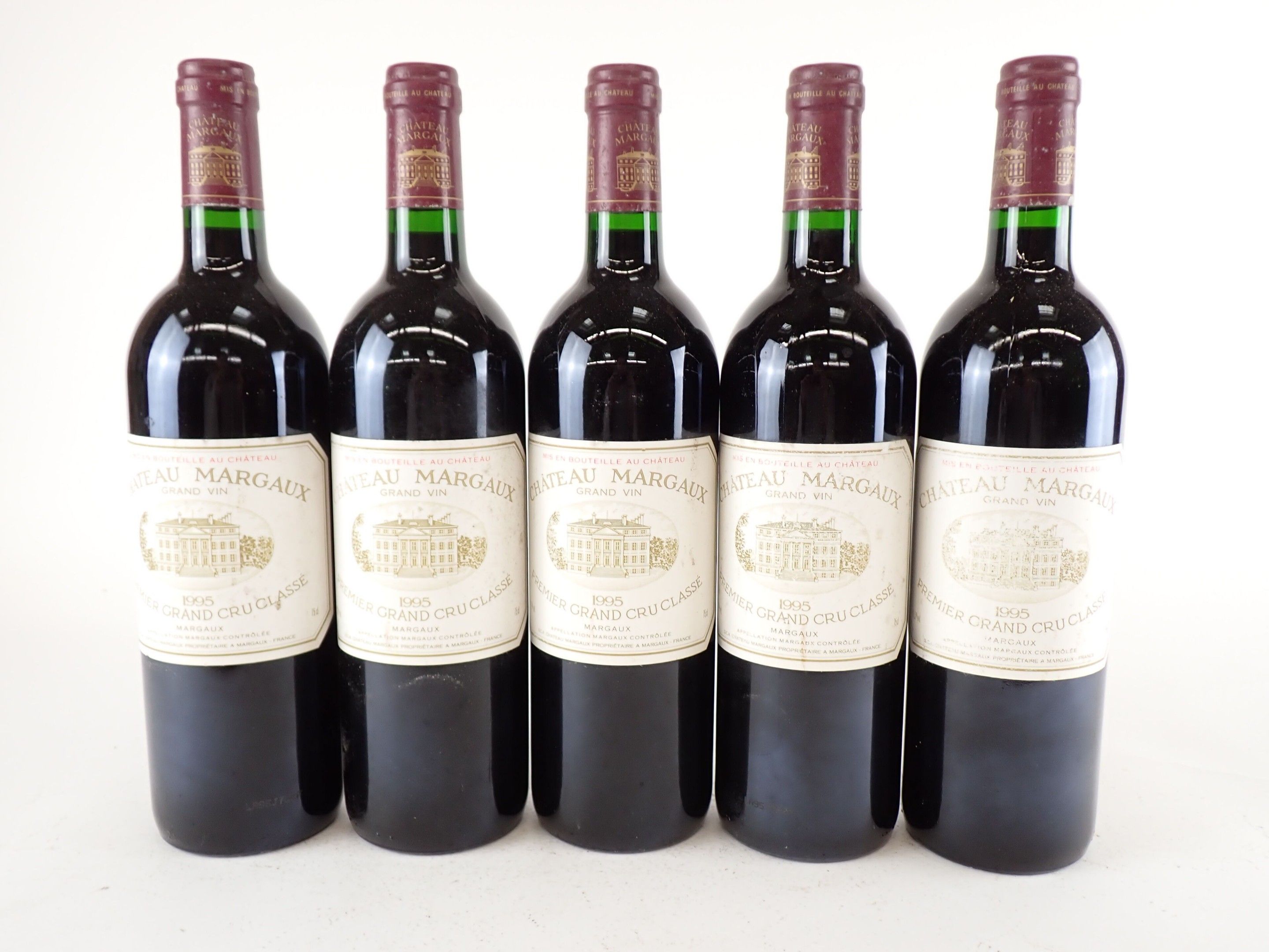 BORDEAUX - 5 bottles, Margaux, Château Margaux, 1er Grand Cru Classé, 1995. Caps slightly dirty and damaged at the bottom of the skirt. Slightly dirty labels.