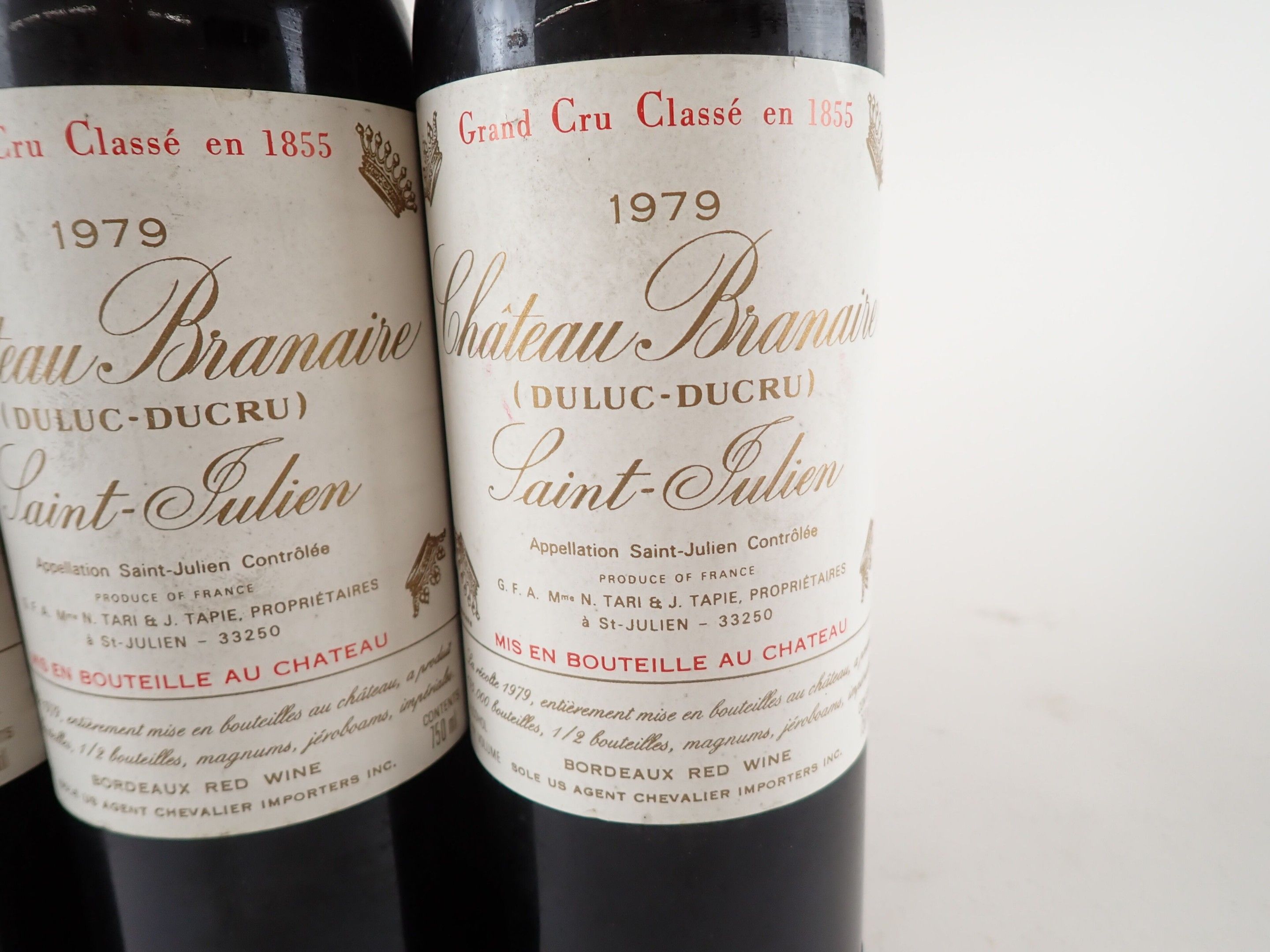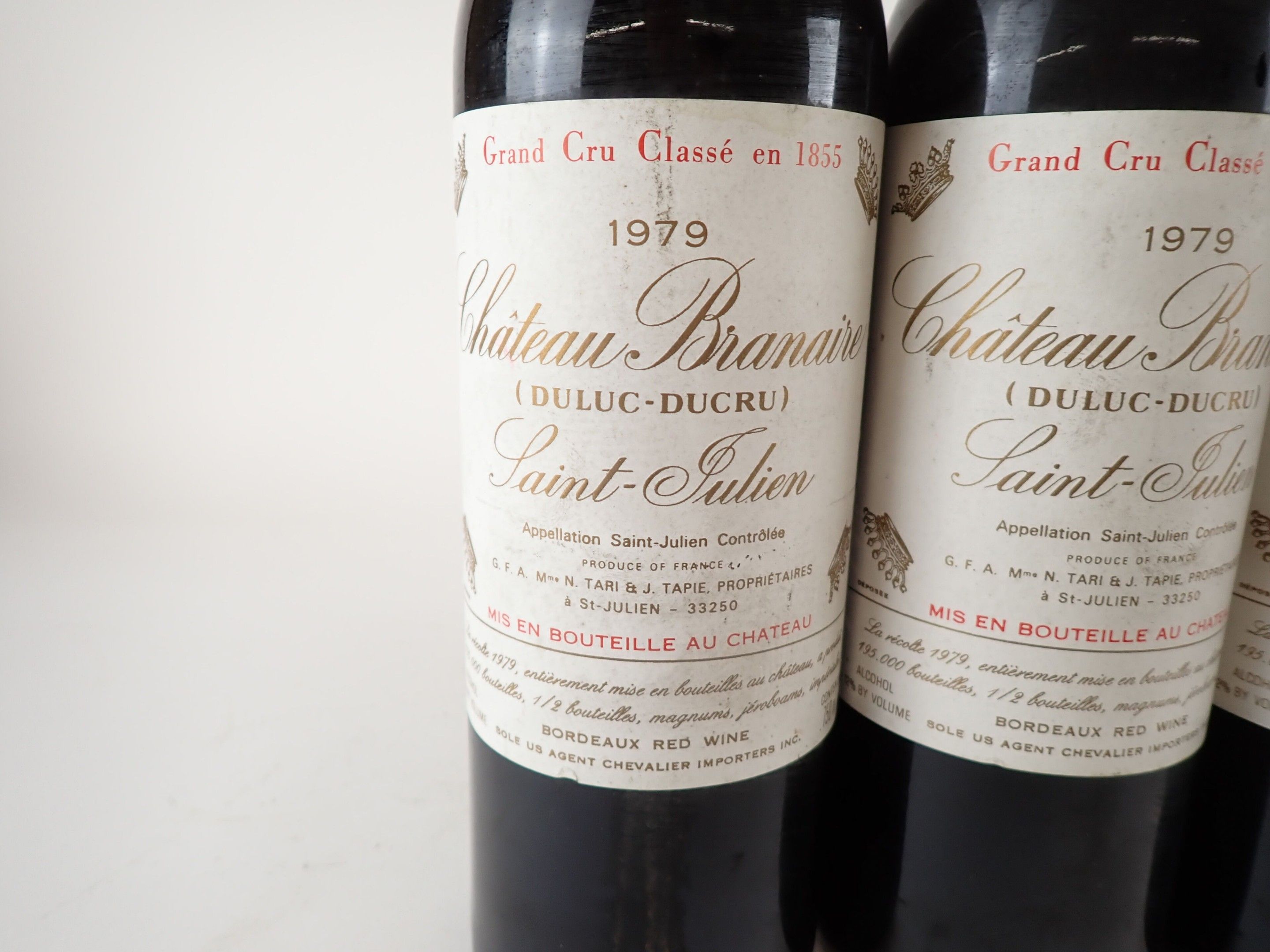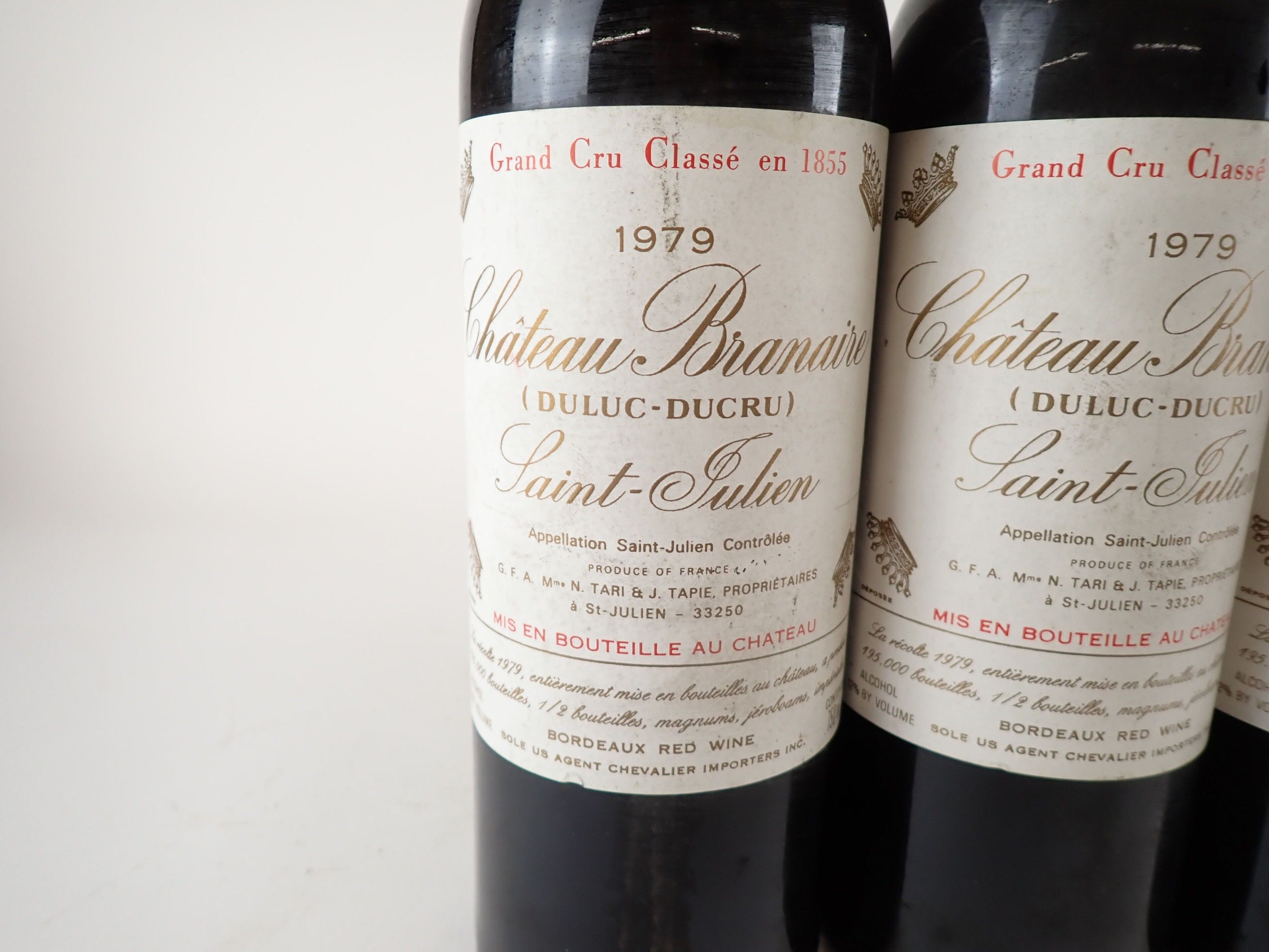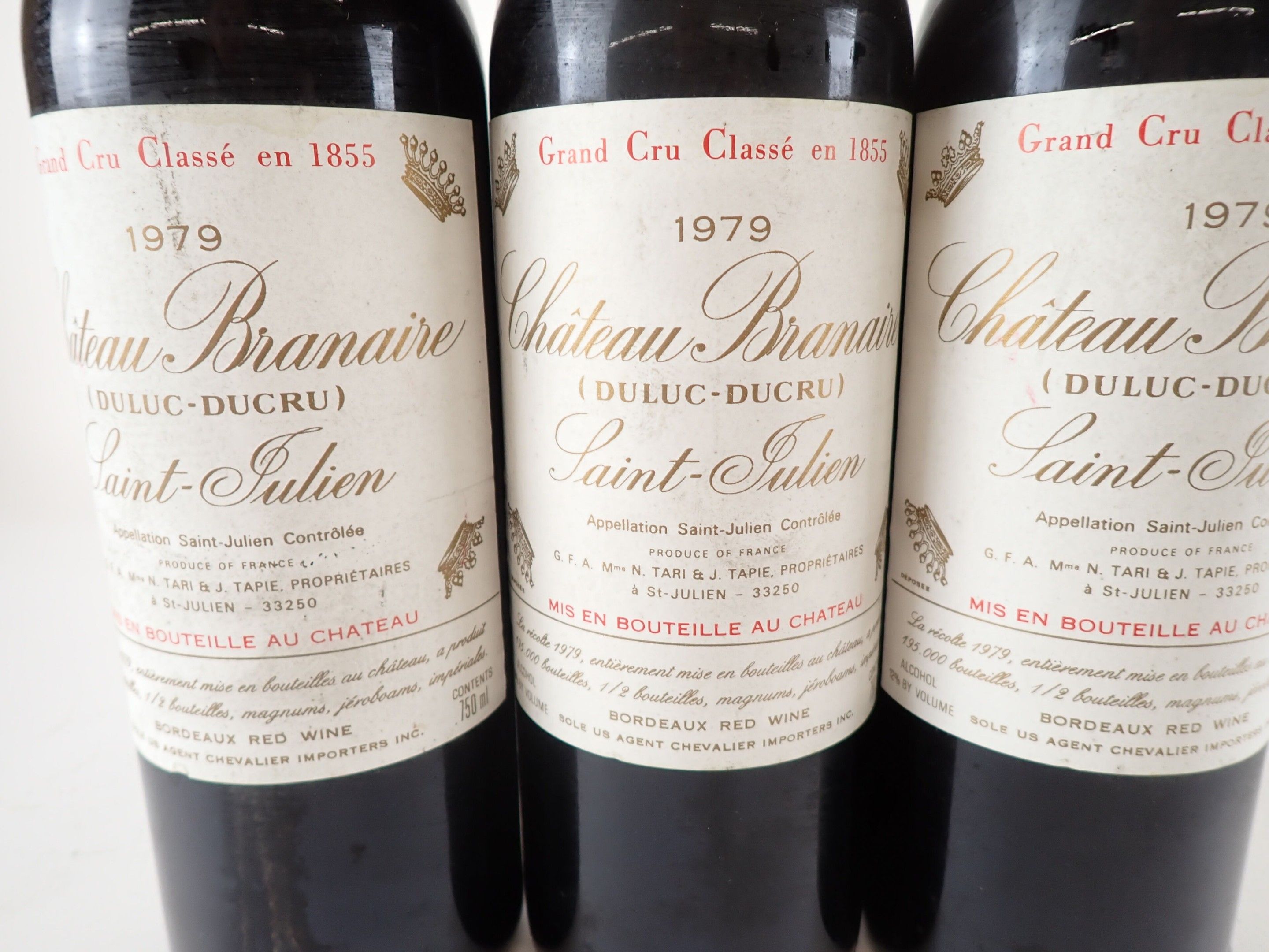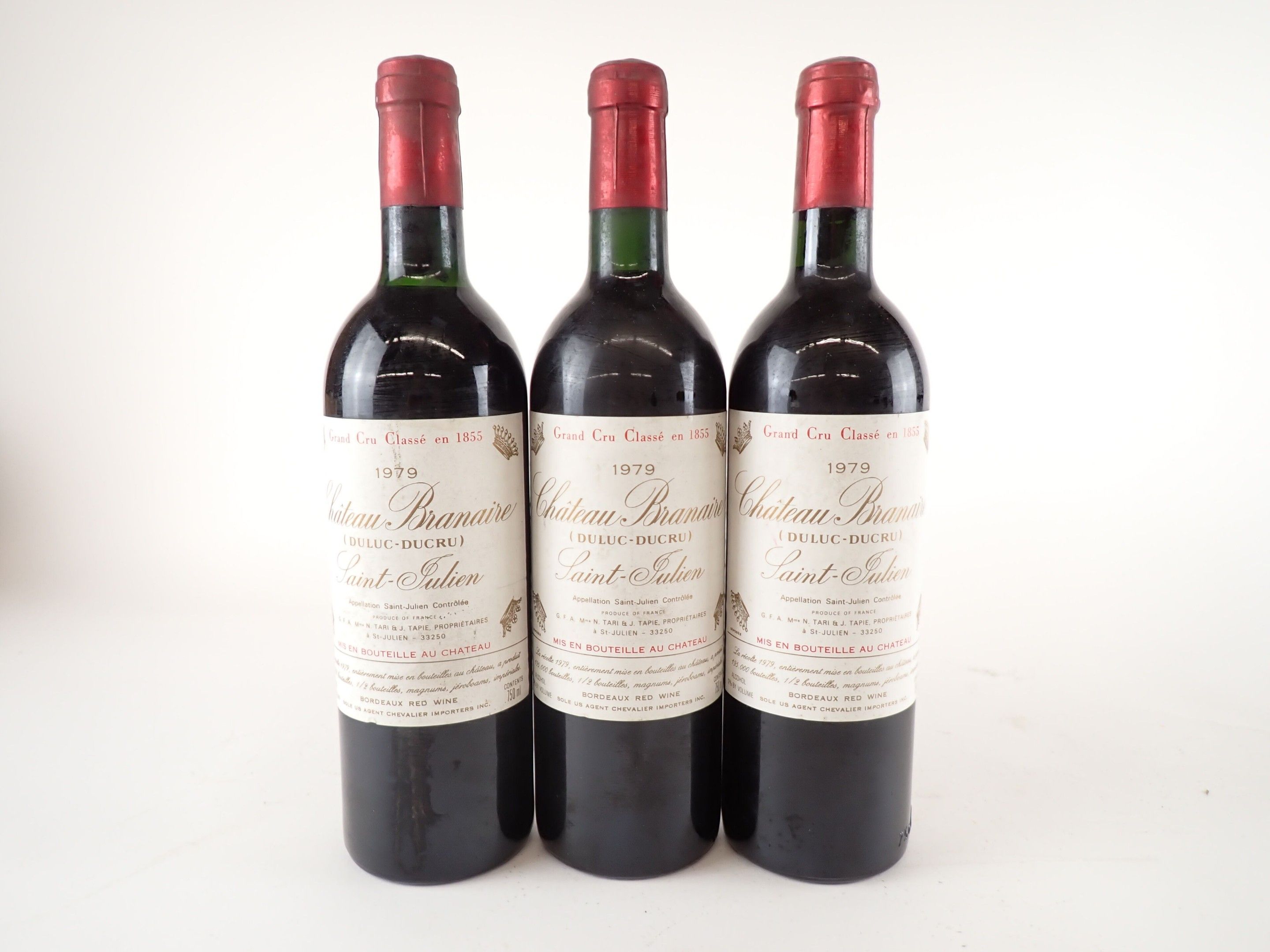 BORDEAUX - 3 bottles, Saint-Julien, Château Branaire Duluc Ducru, 4th Grand Cru Classé, 1979. 1 BG, 1 TLB and 1 HE (+). Slightly dirty capsules, two of which are domed. Slightly dirty labels.