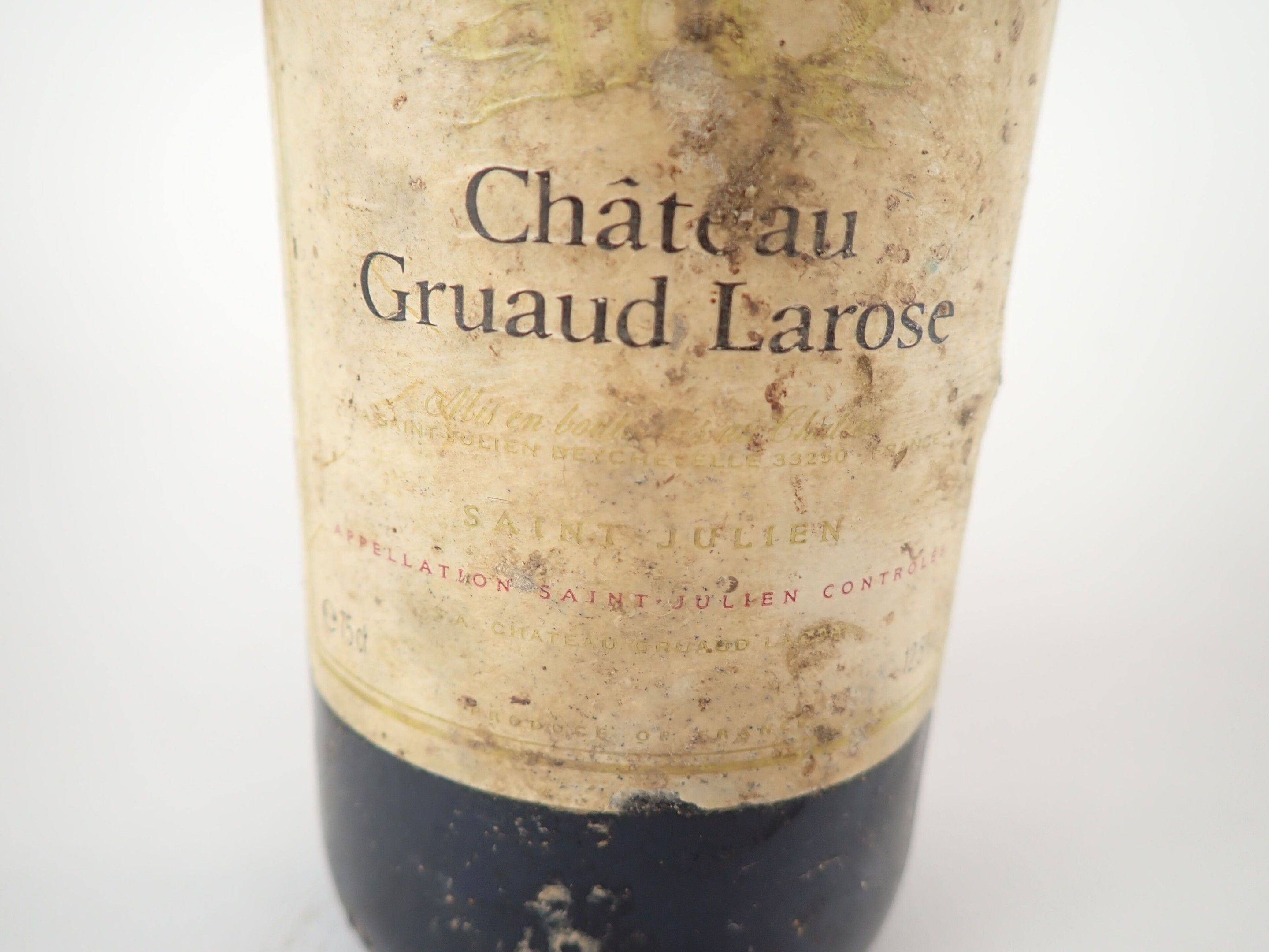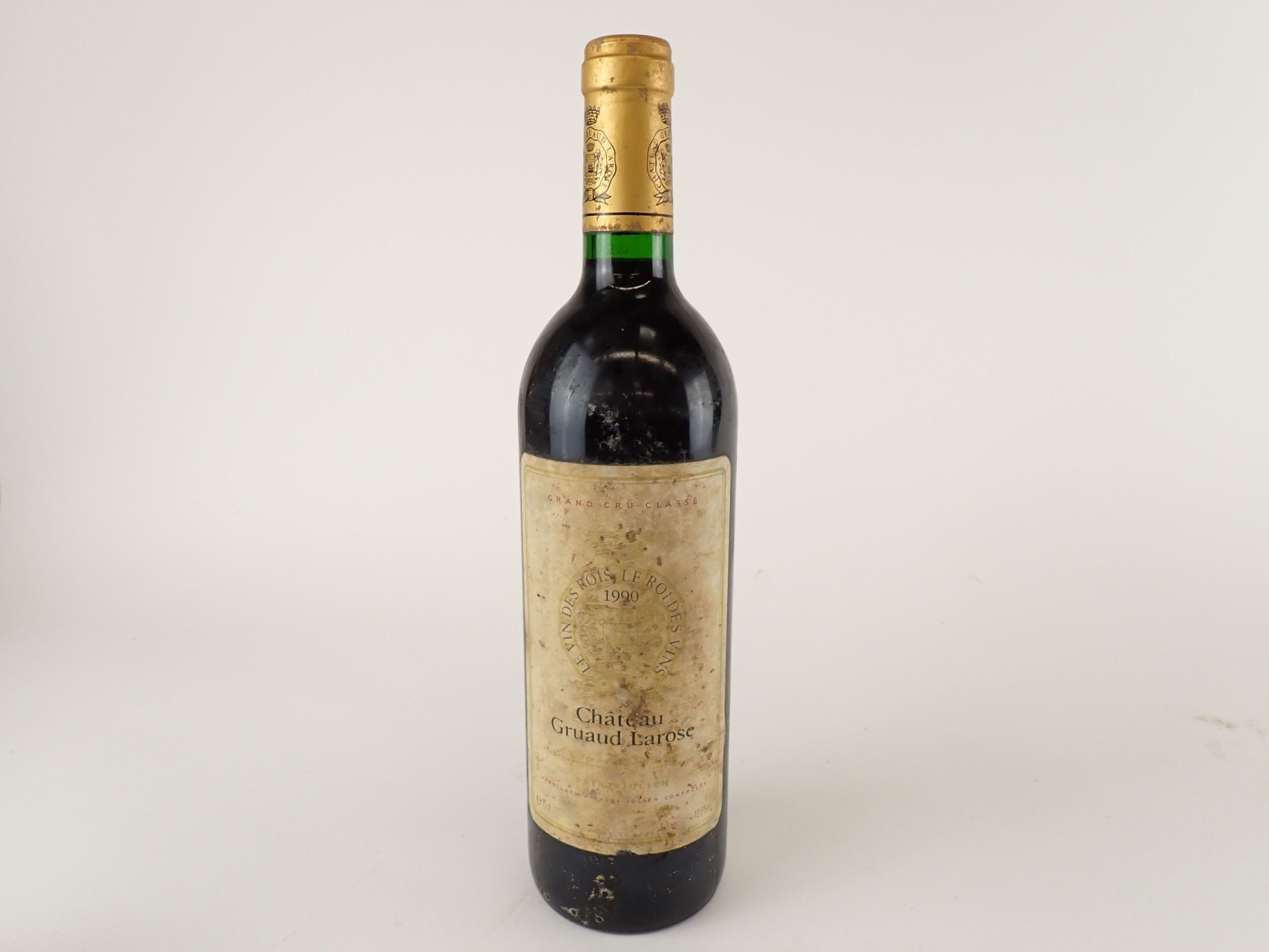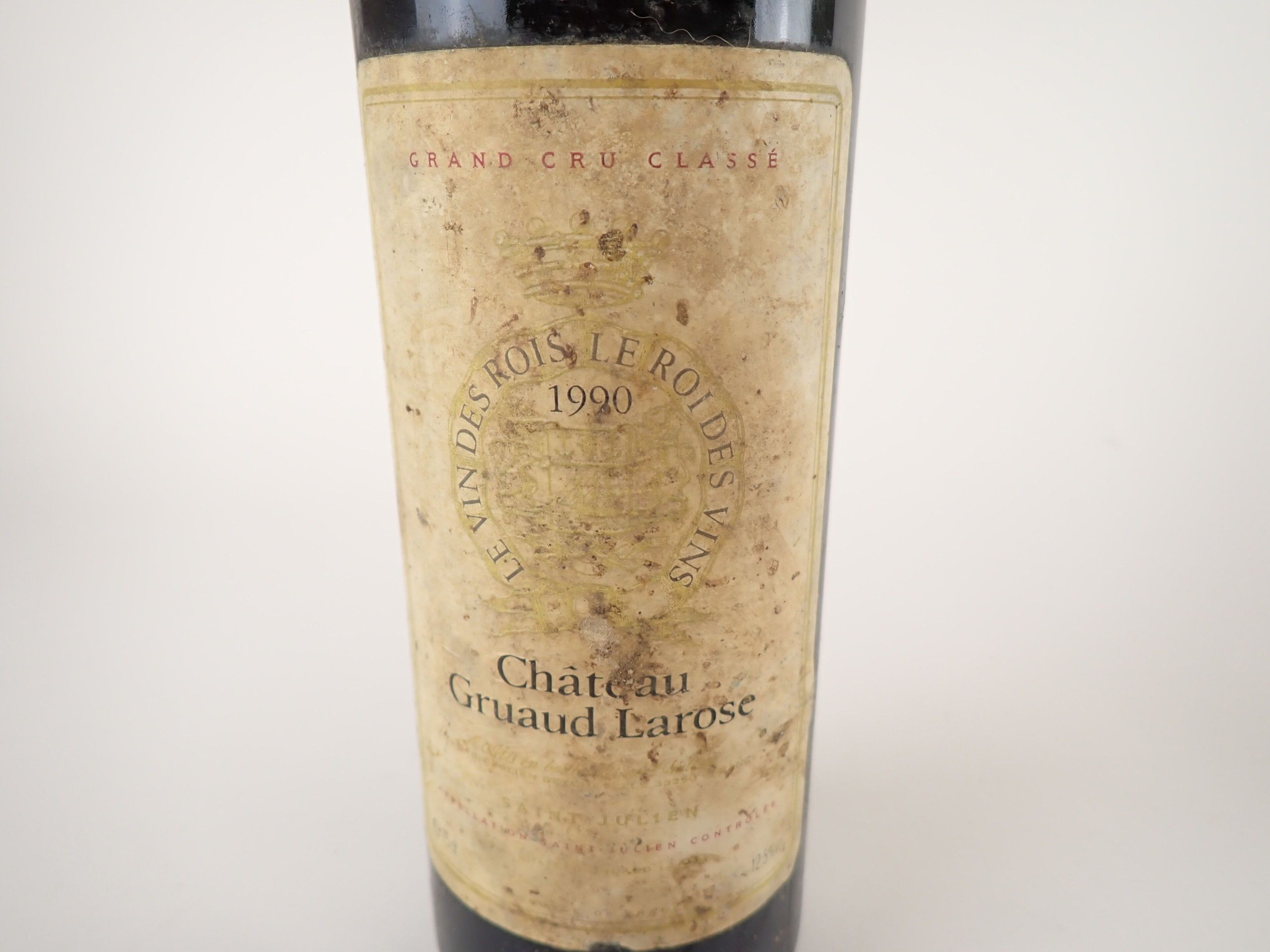 BORDEAUX - 1 bottle, Saint-Julien, Château Gruaud Larose, 2nd Grand Cru Classé, 1990. Slightly dirty capsule. Dirty label with a small tear at the lower edge.