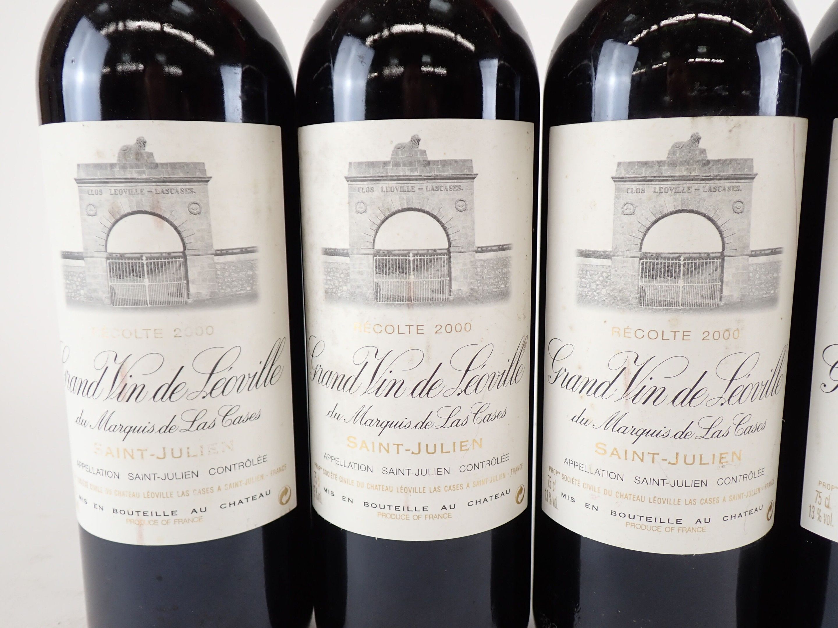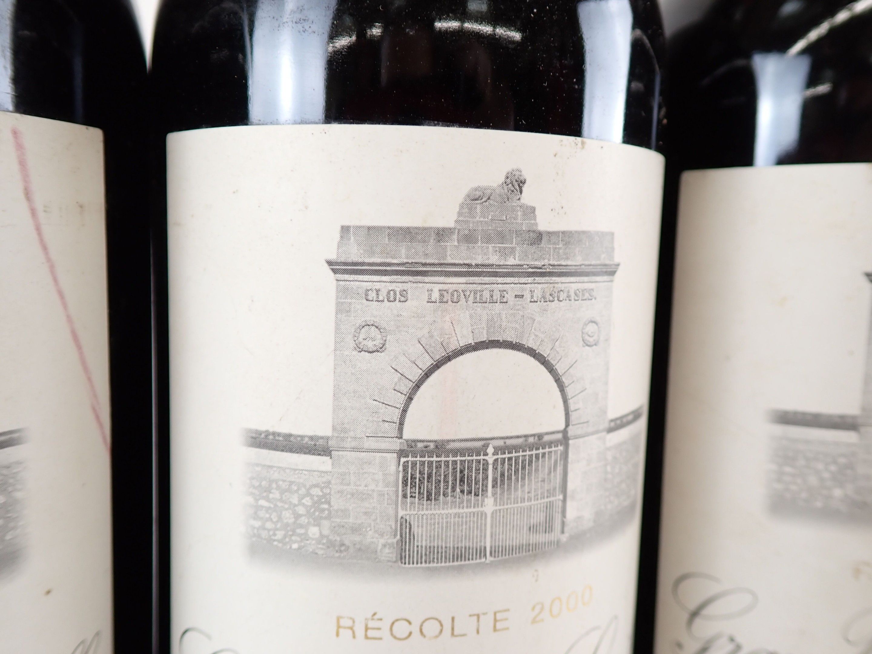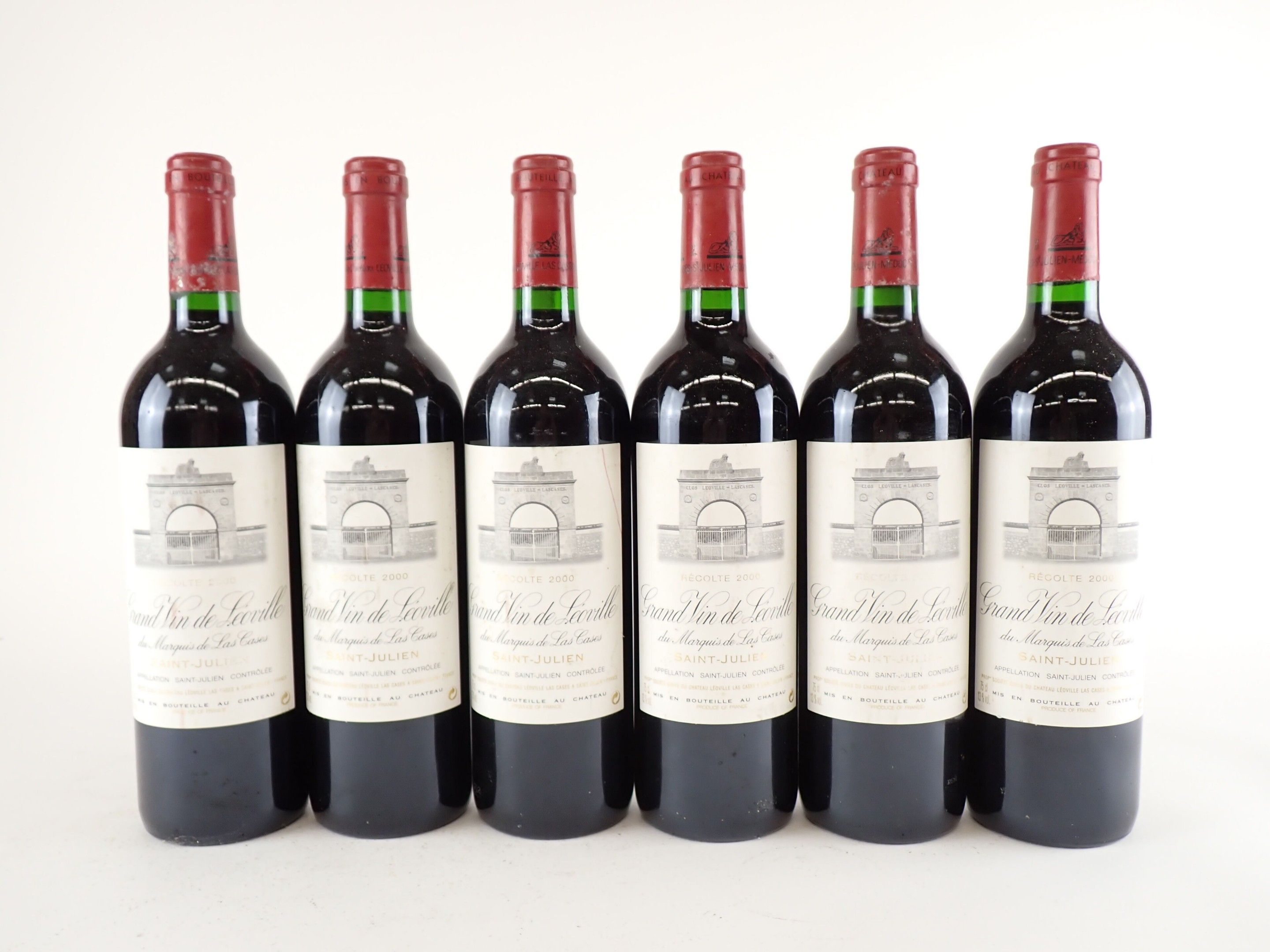 BORDEAUX - 6 bottles, Saint-Julien, Château Léoville-Las-Cases, 2nd Grand Cru Classé, 2000. Caps slightly dirty and damaged, one of which is also slightly curved. Slightly dirty labels.