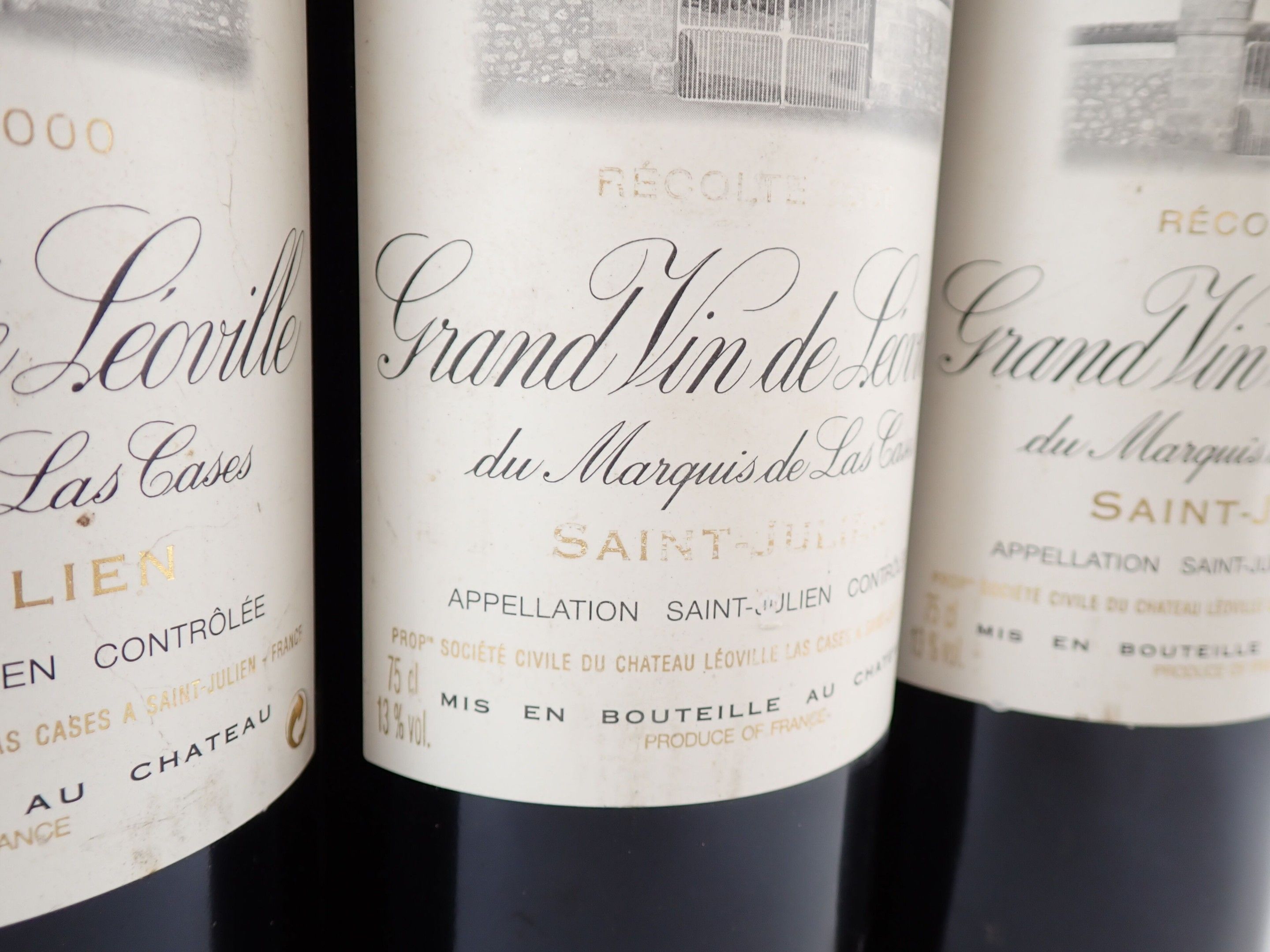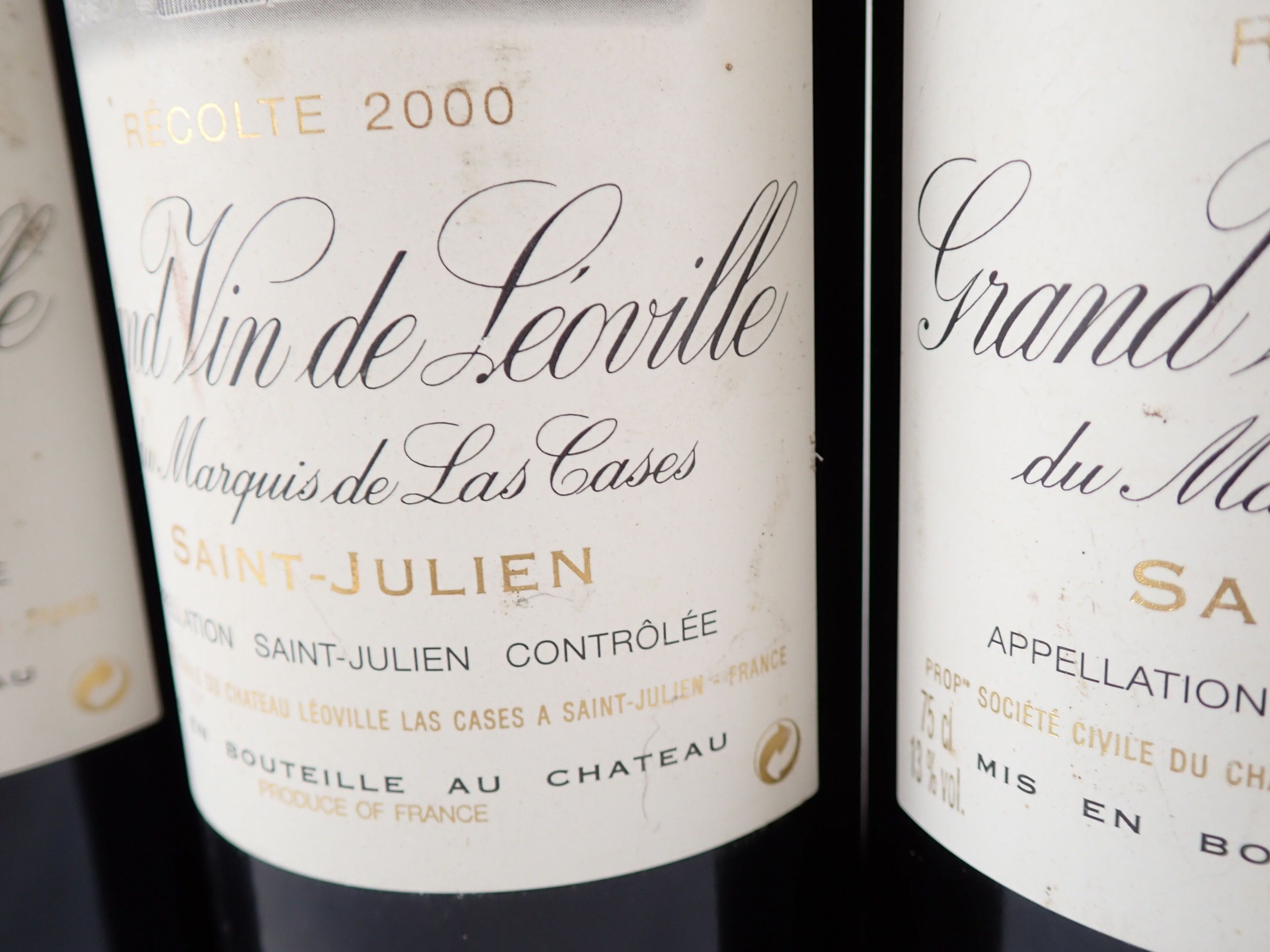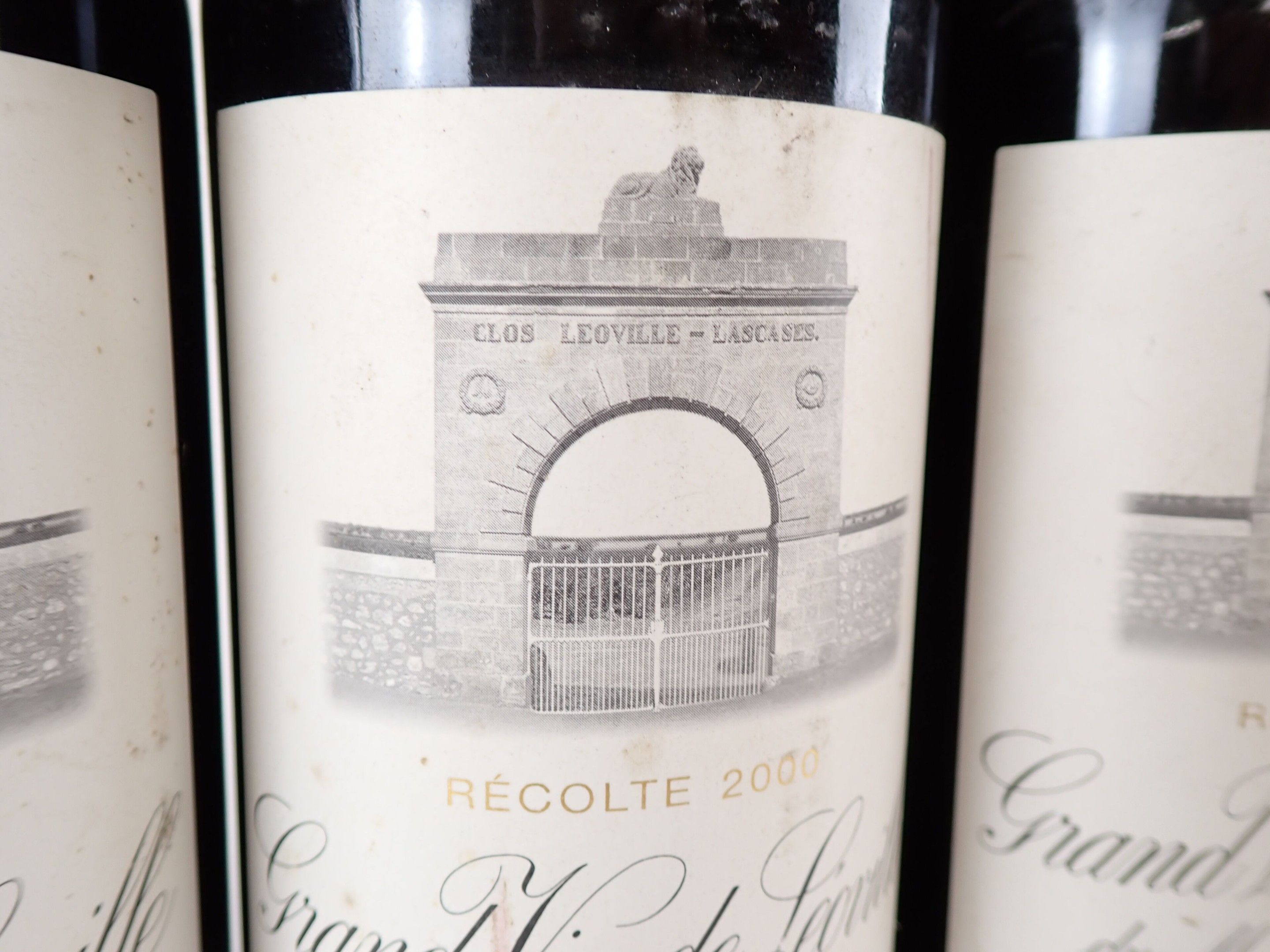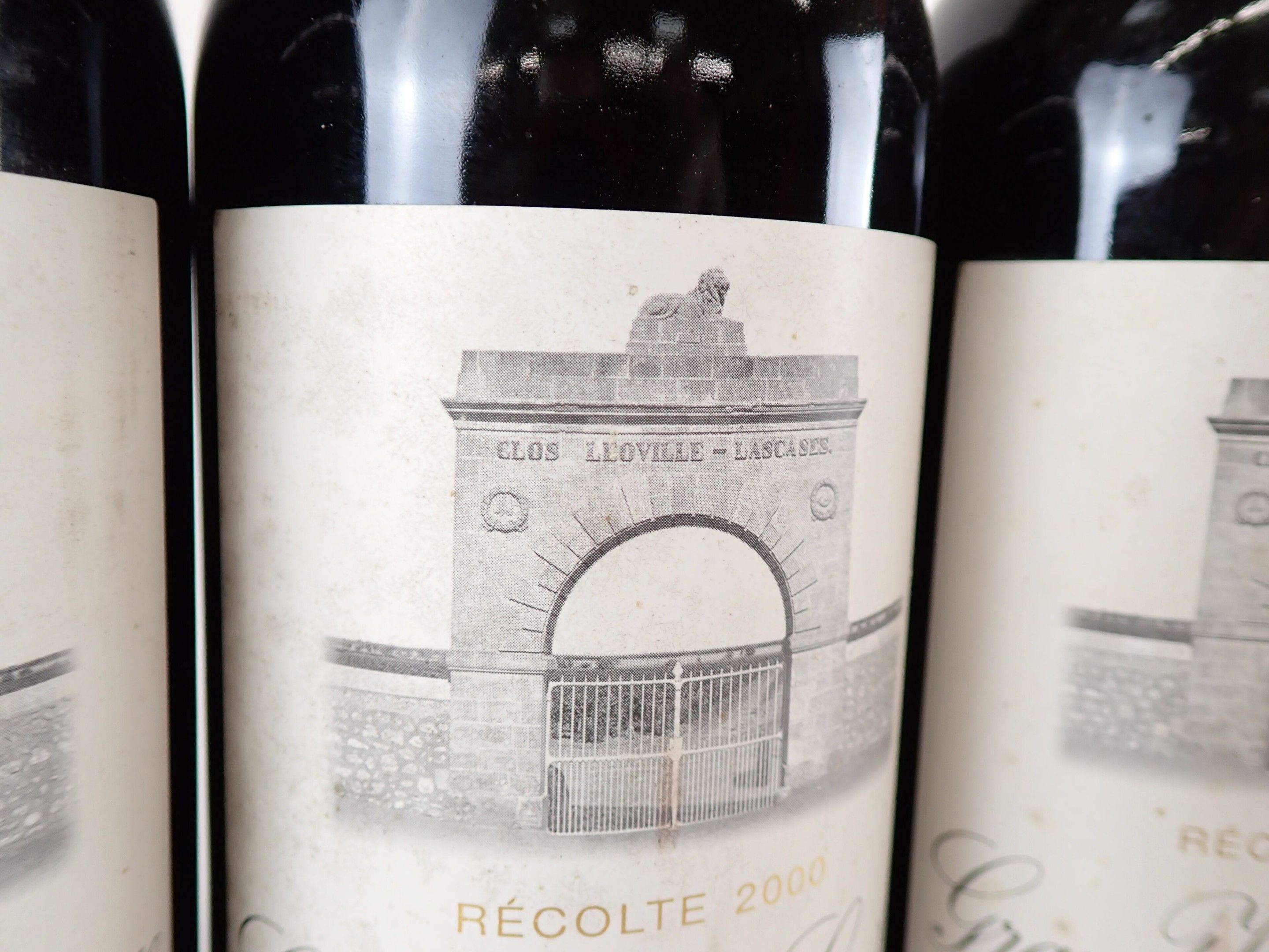 BORDEAUX - 6 bottles, Saint-Julien, Château Léoville-Las-Cases, 2nd Grand Cru Classé, 2000. Caps slightly dirty and damaged, one of which is also slightly curved. Slightly dirty labels.