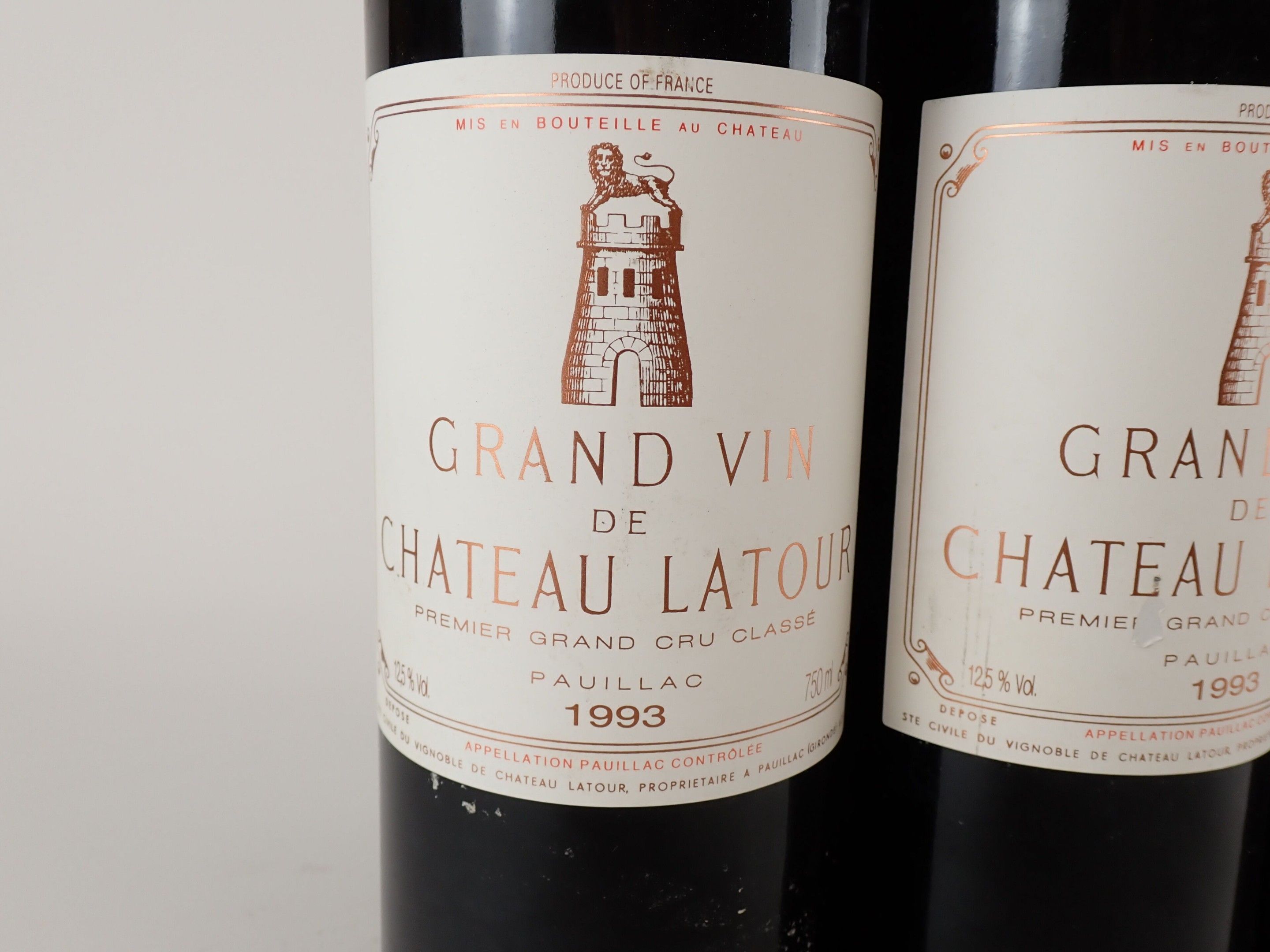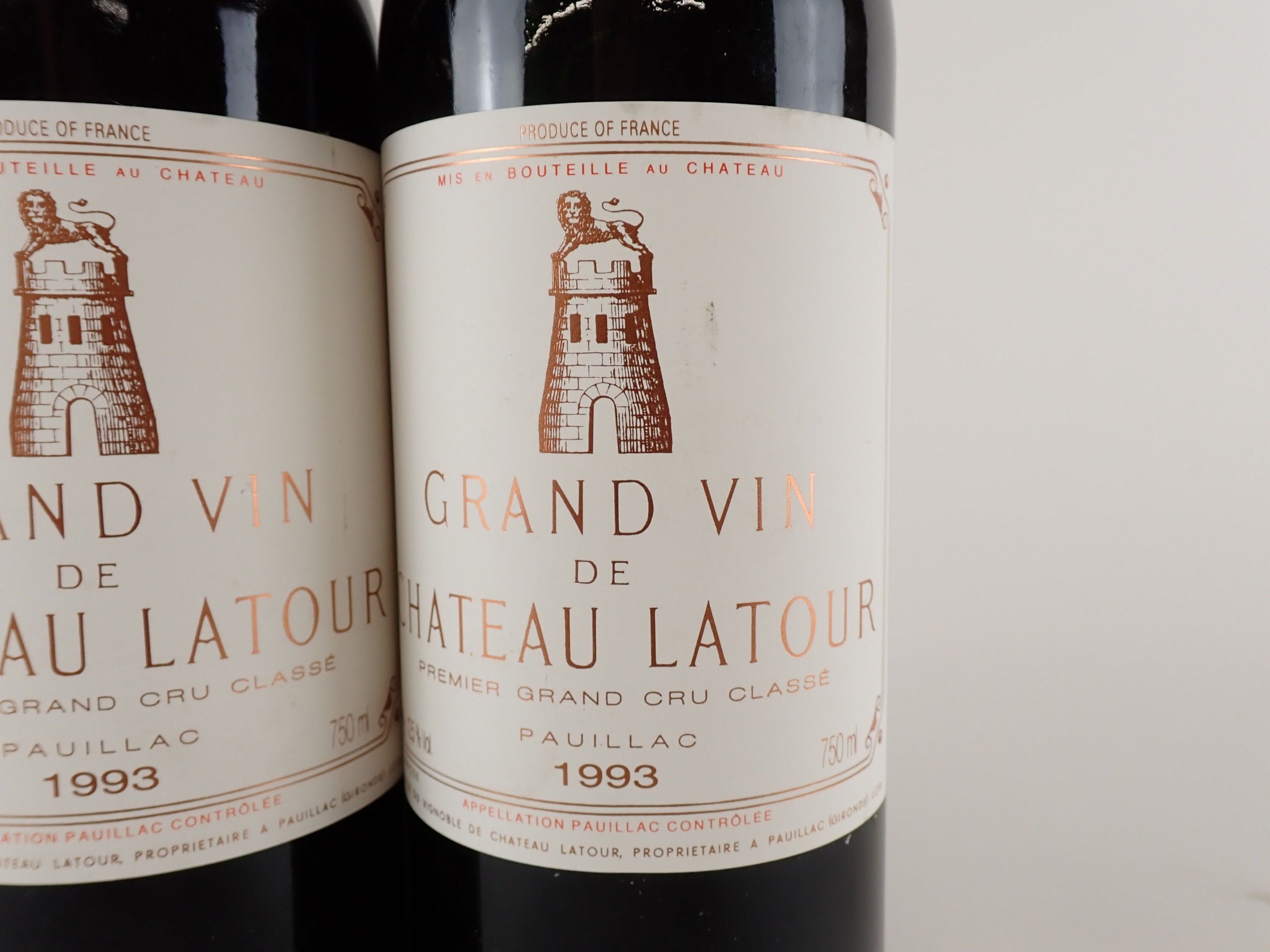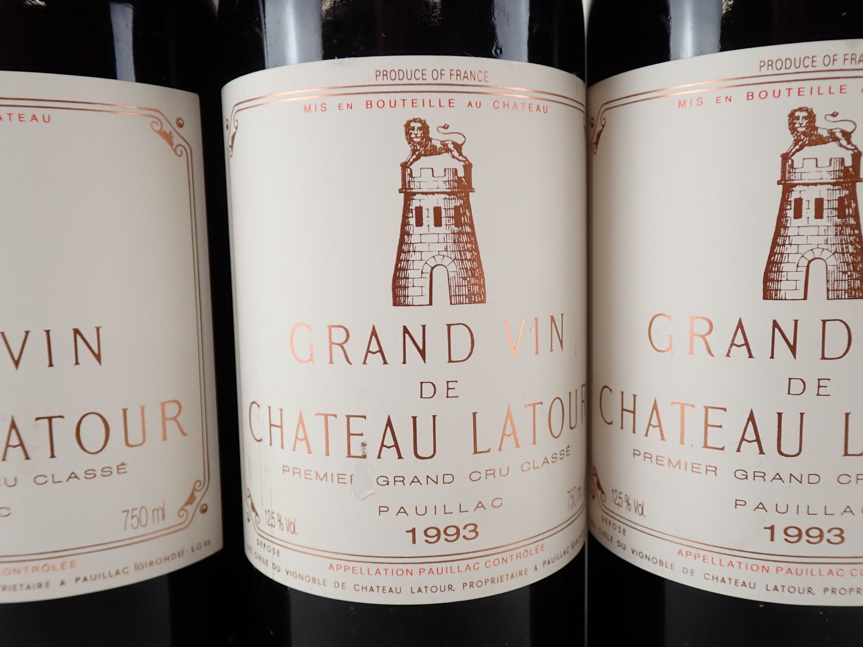 BORDEAUX - 3 bottles, Pauillac, Château Latour, 1er Grand Cru Classé, 1993. Two slightly curved capsules.