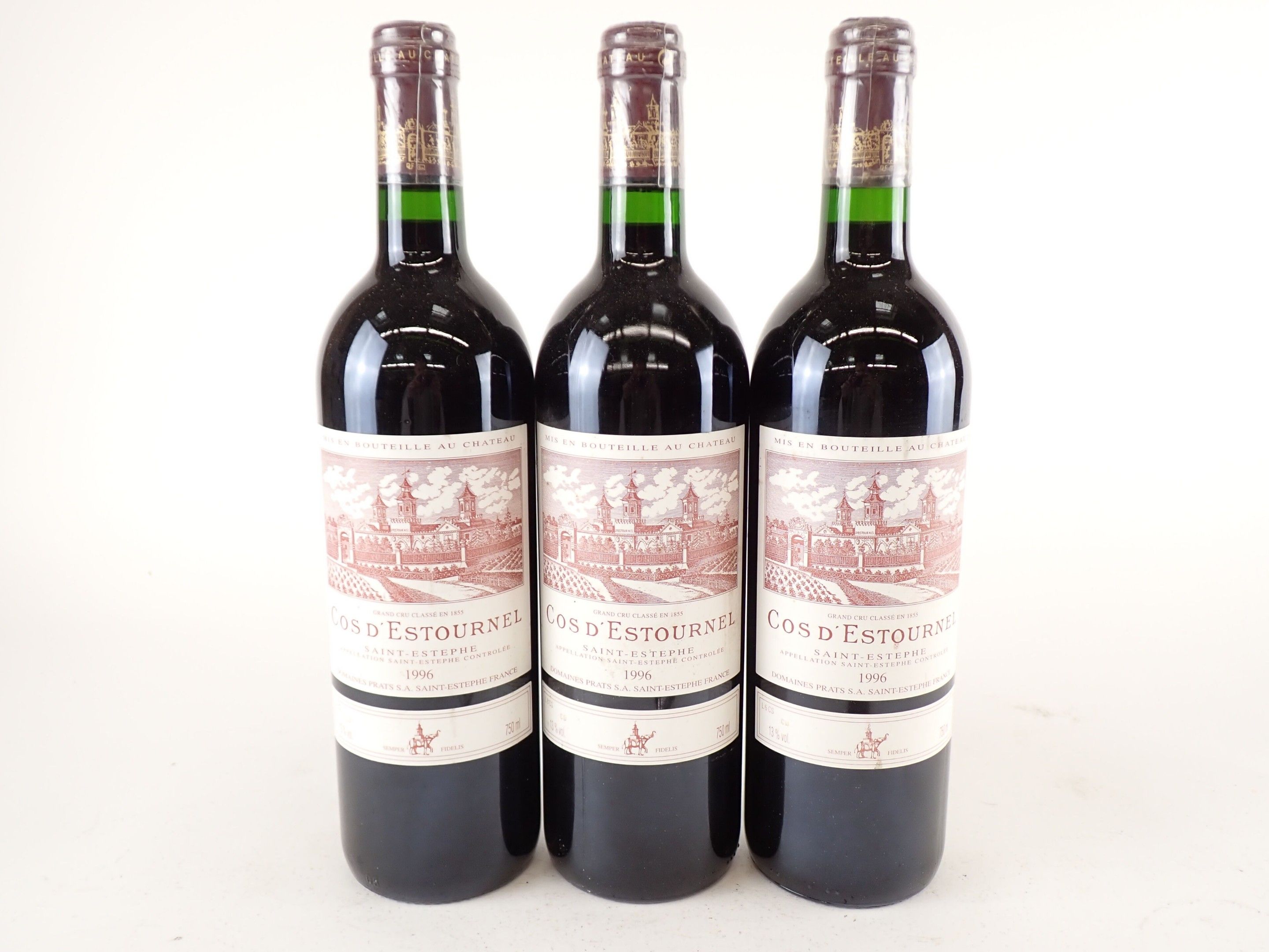 BORDEAUX - 3 bottles, Saint-Estèphe, Cos d'Estournel, 2nd Grand Cru Classé, 1996. Labels with a few slight marks.
