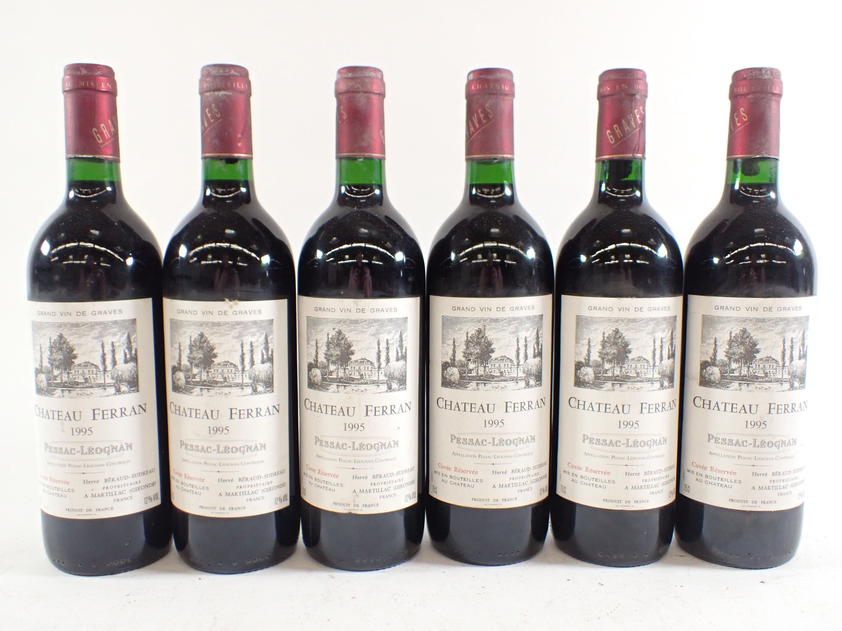 BORDEAUX - 6 bottles, Pessac-Léognan, Château Ferran, 1995. Caps slightly dirty to dirty. Labels with traces.