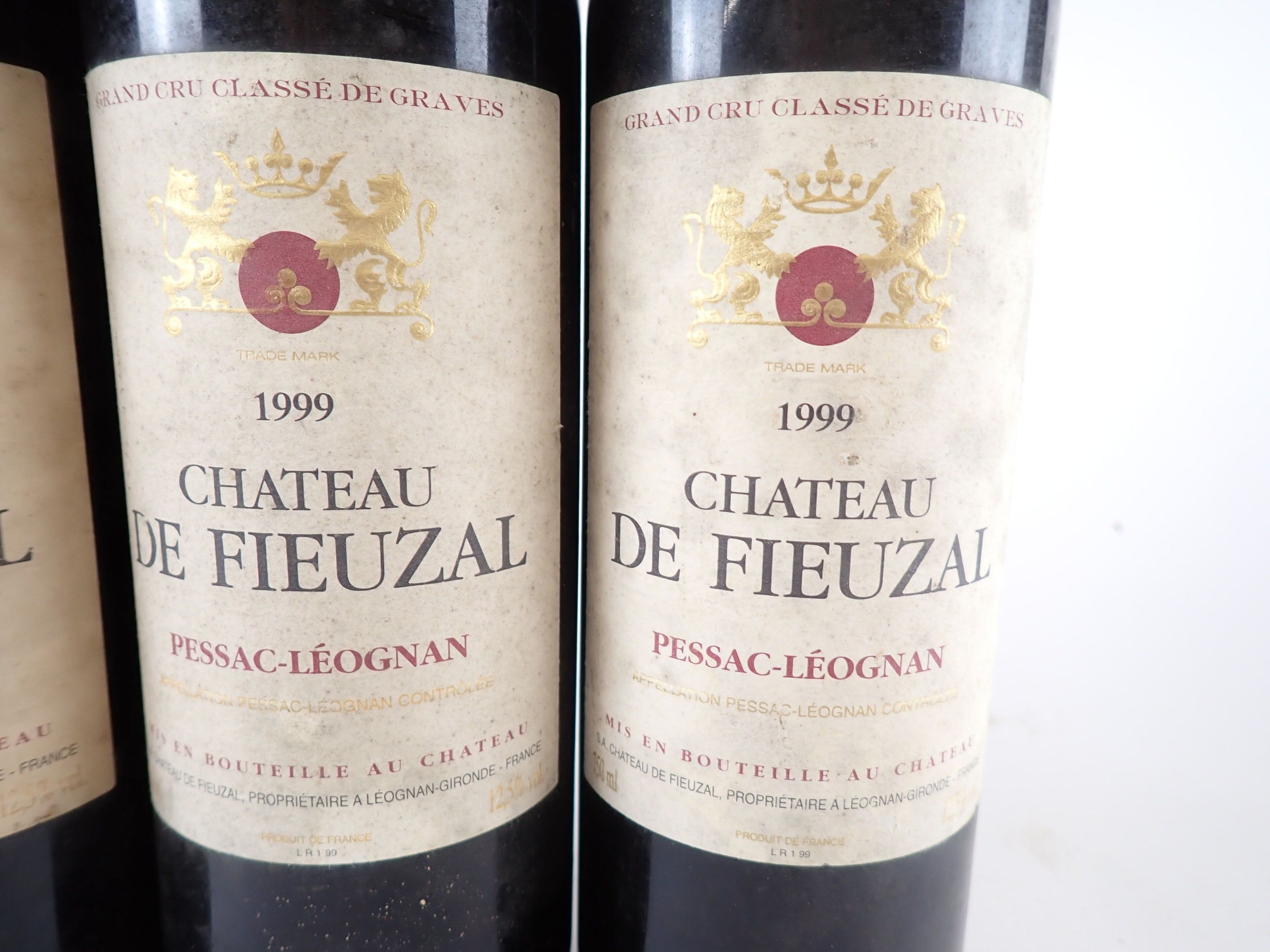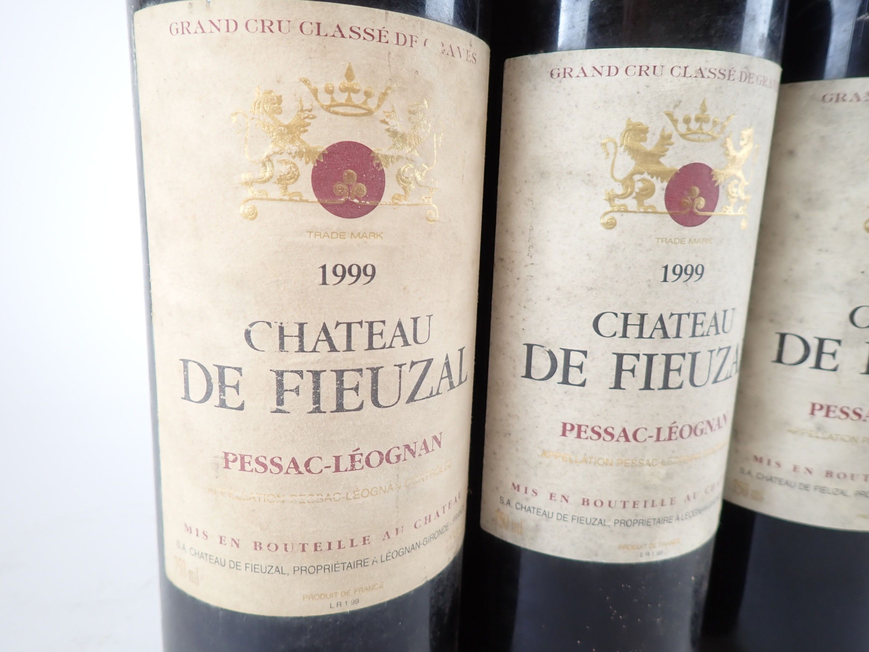 BORDEAUX - 3 bottles, Pessac-Léognan, Château de Fieuzal, Grand Cru Classé, 1999. Dirty labels with traces of damp.