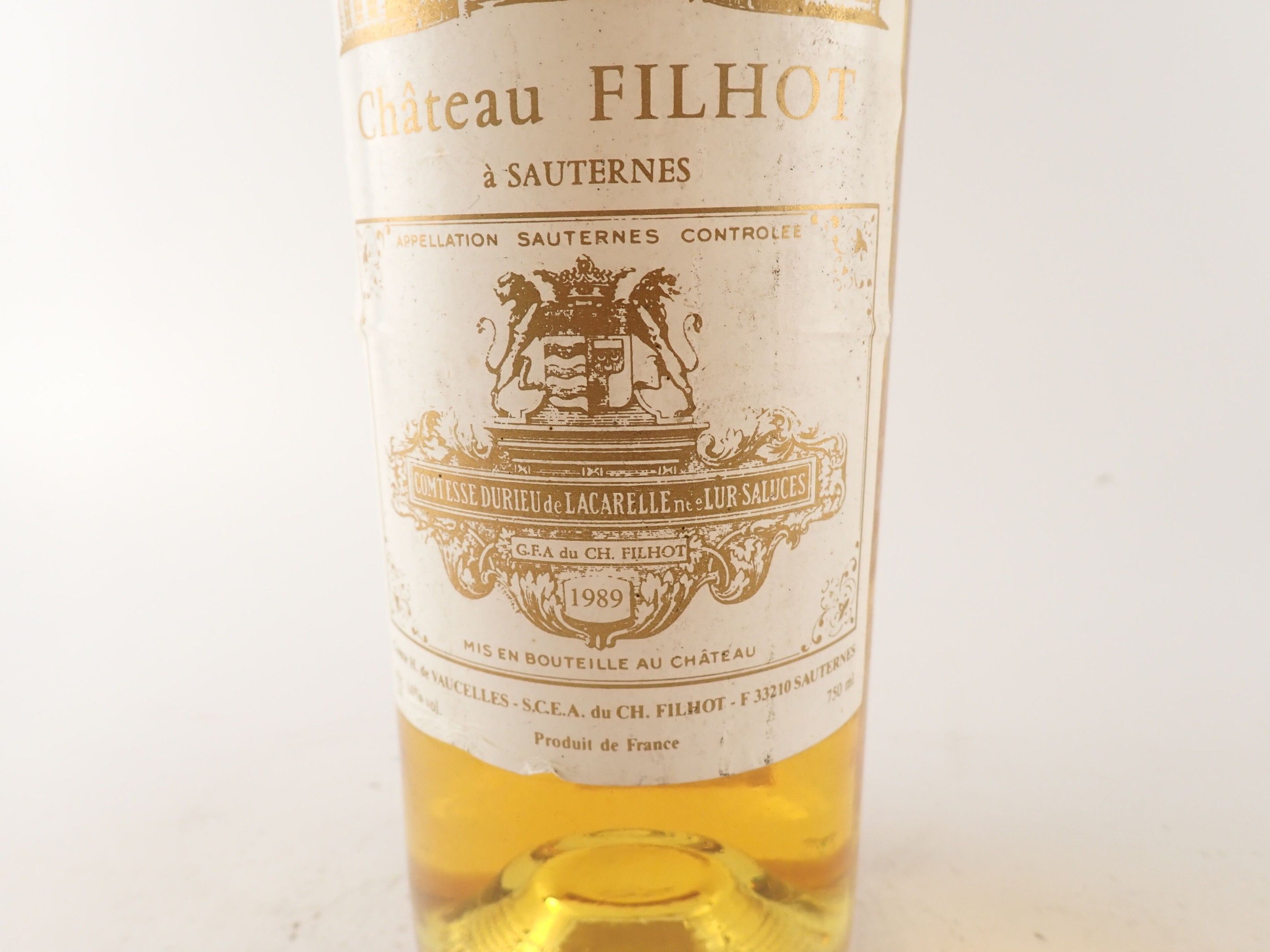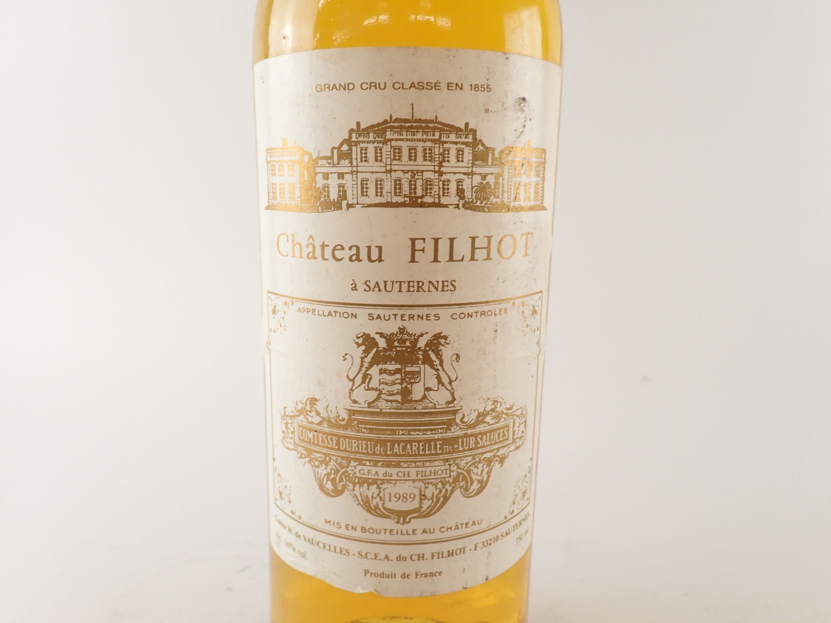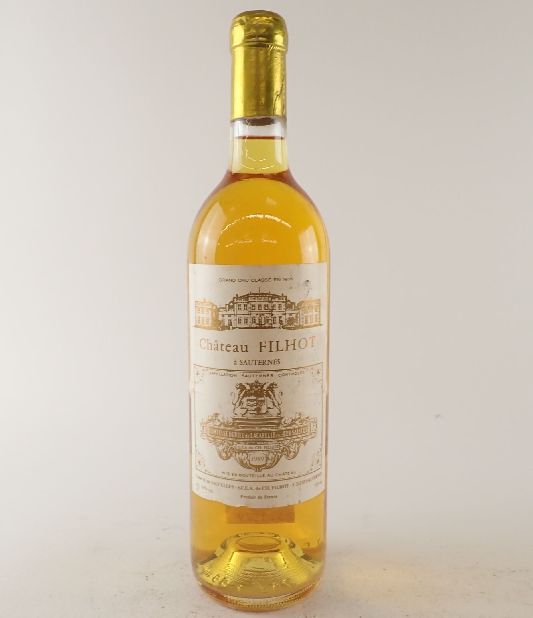 BORDEAUX - 1 bottle, Sauternes, Château Filhot, 2nd Grand Cru Classé, 1989. Capsule very slightly bent. Label slightly dirty and damaged.