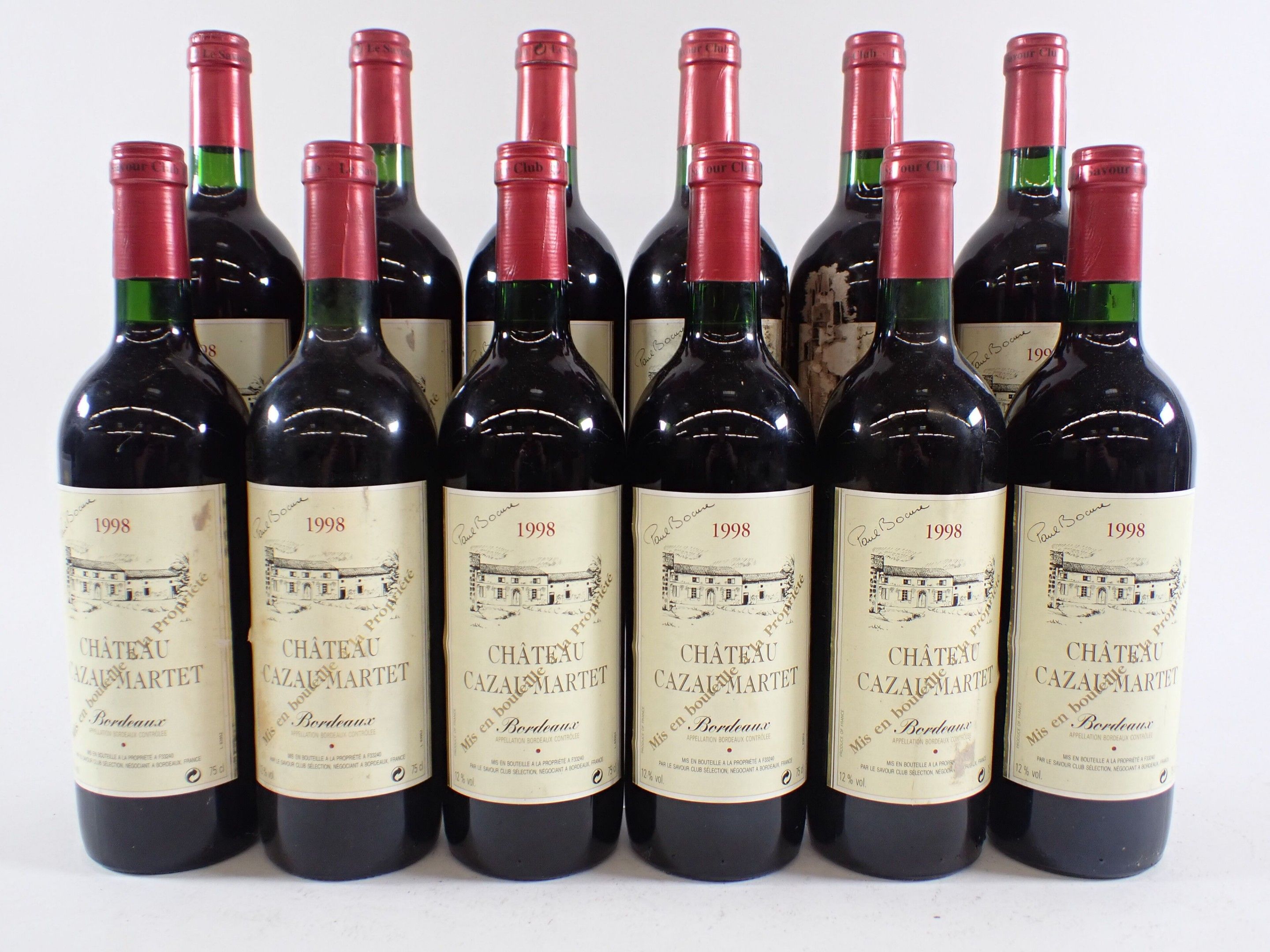 BORDEAUX - 12 bottles, Bordeaux, Château Cazau Martet, Cuvée recommended by Paul Bocuse, 1998. As is.