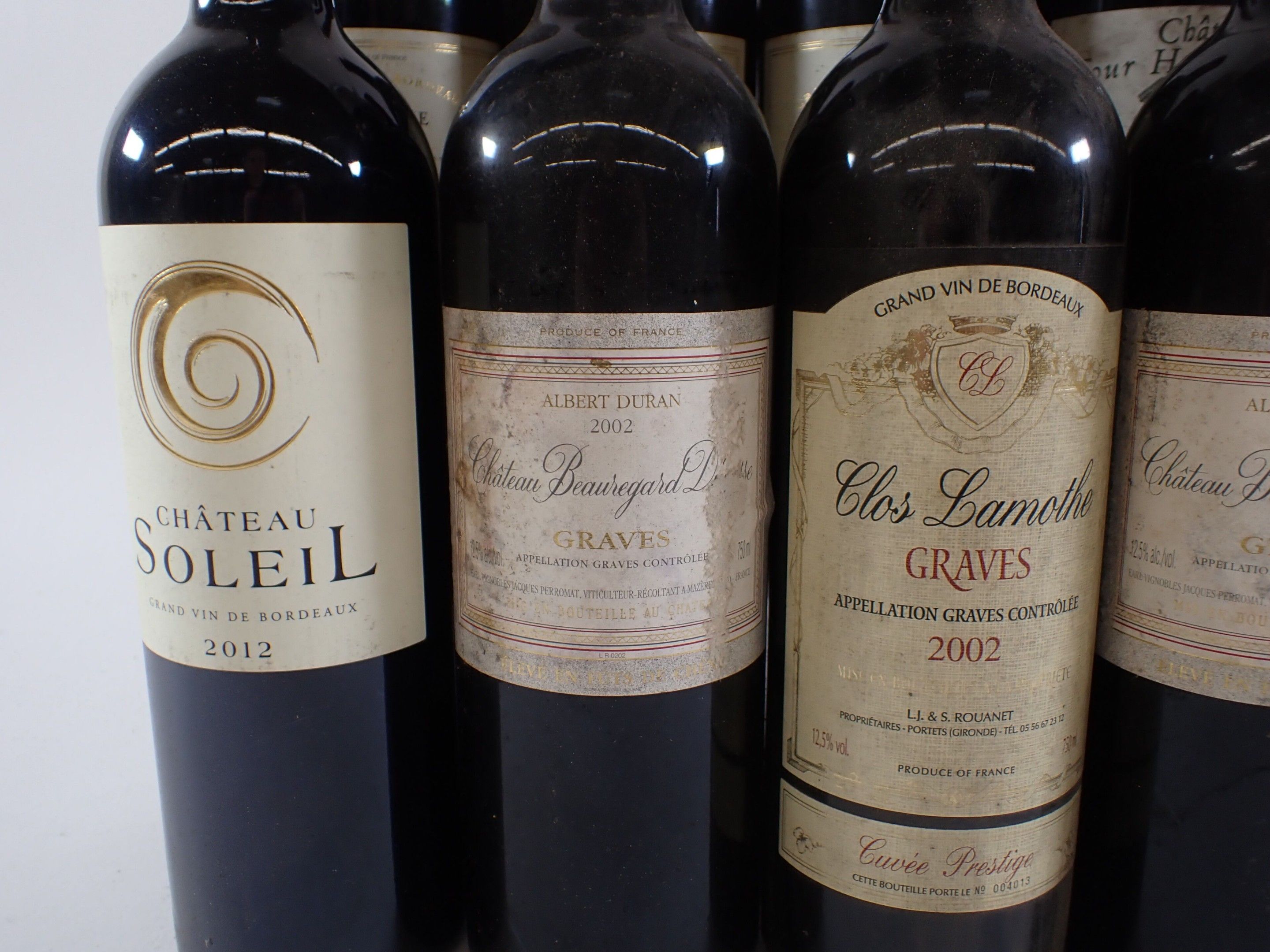 3 bottles, Graves, Château Beauregard Ducasse, 2002 (including one supposedly from this vintage). As is.