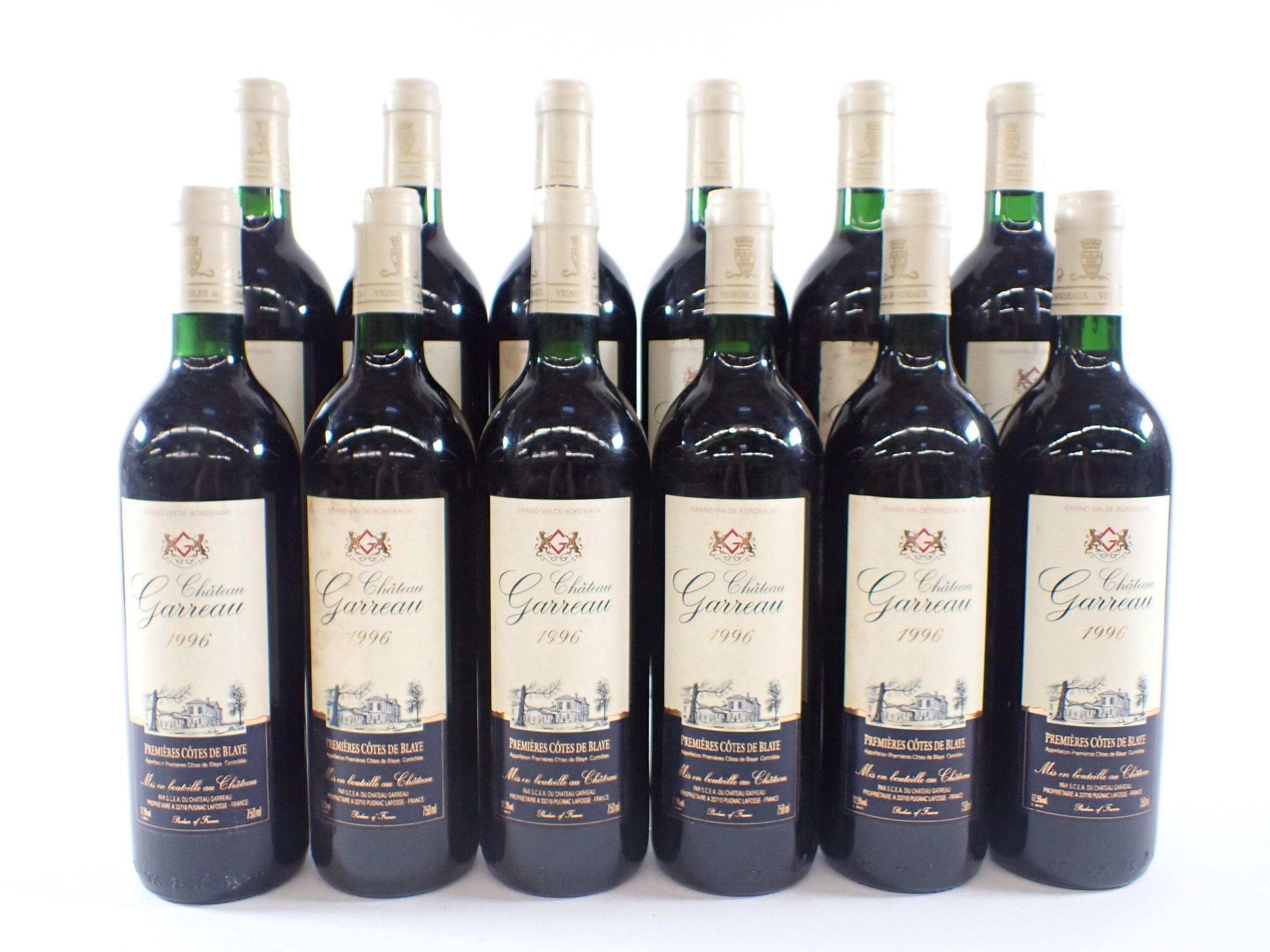 BORDEAUX - 12 bottles, Premières Côtes de Blaye, Château Garreau, 1996. As is.
