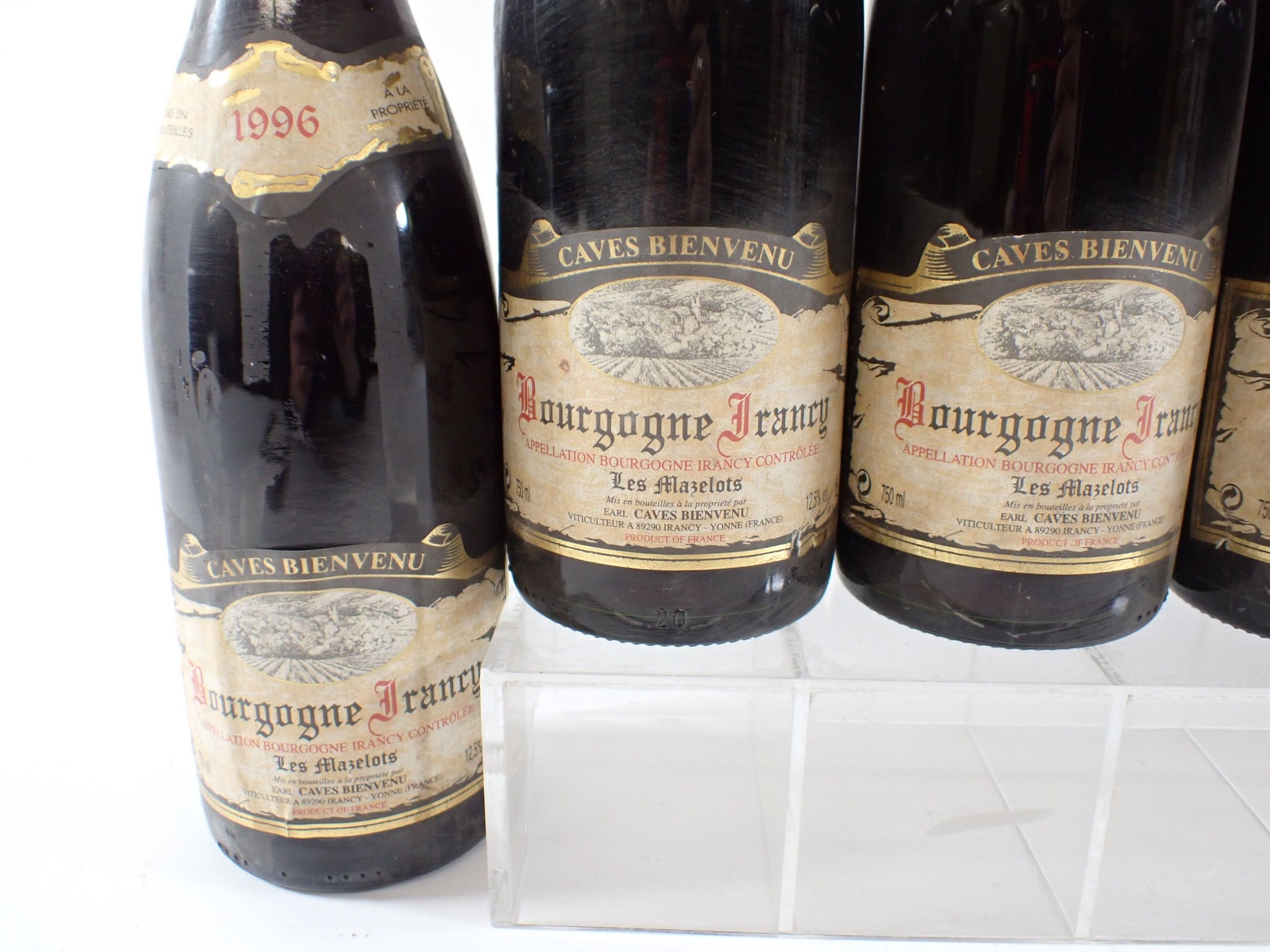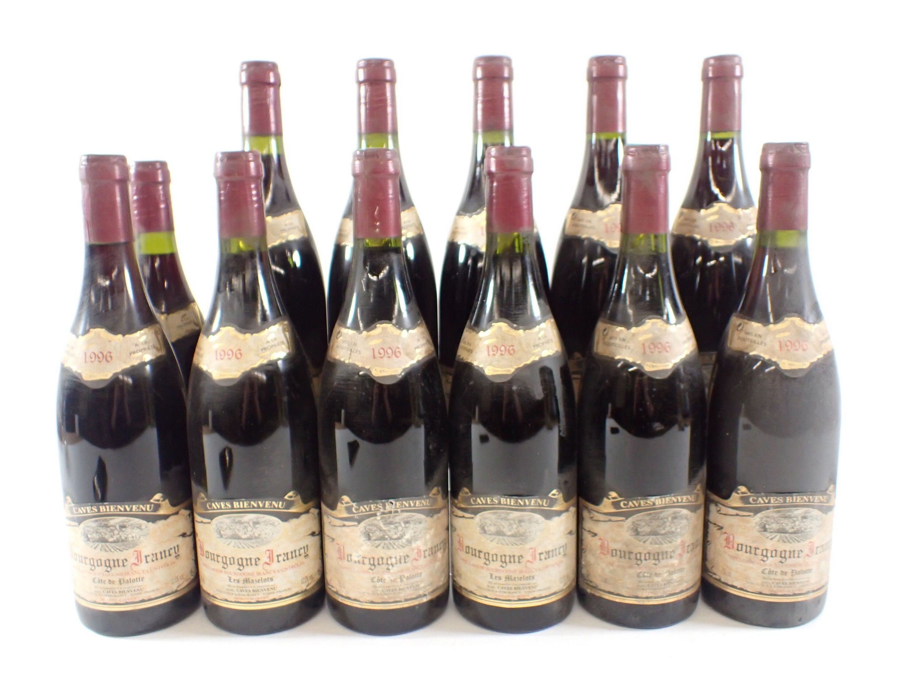 BOURGOGNE - 12 bottles, Bourgogne Irancy, Caves Bienvenu, Les Mazelots, 1996. Caps slightly dirty to dirty. Collars and labels slightly dirty to dirty with some peeling.