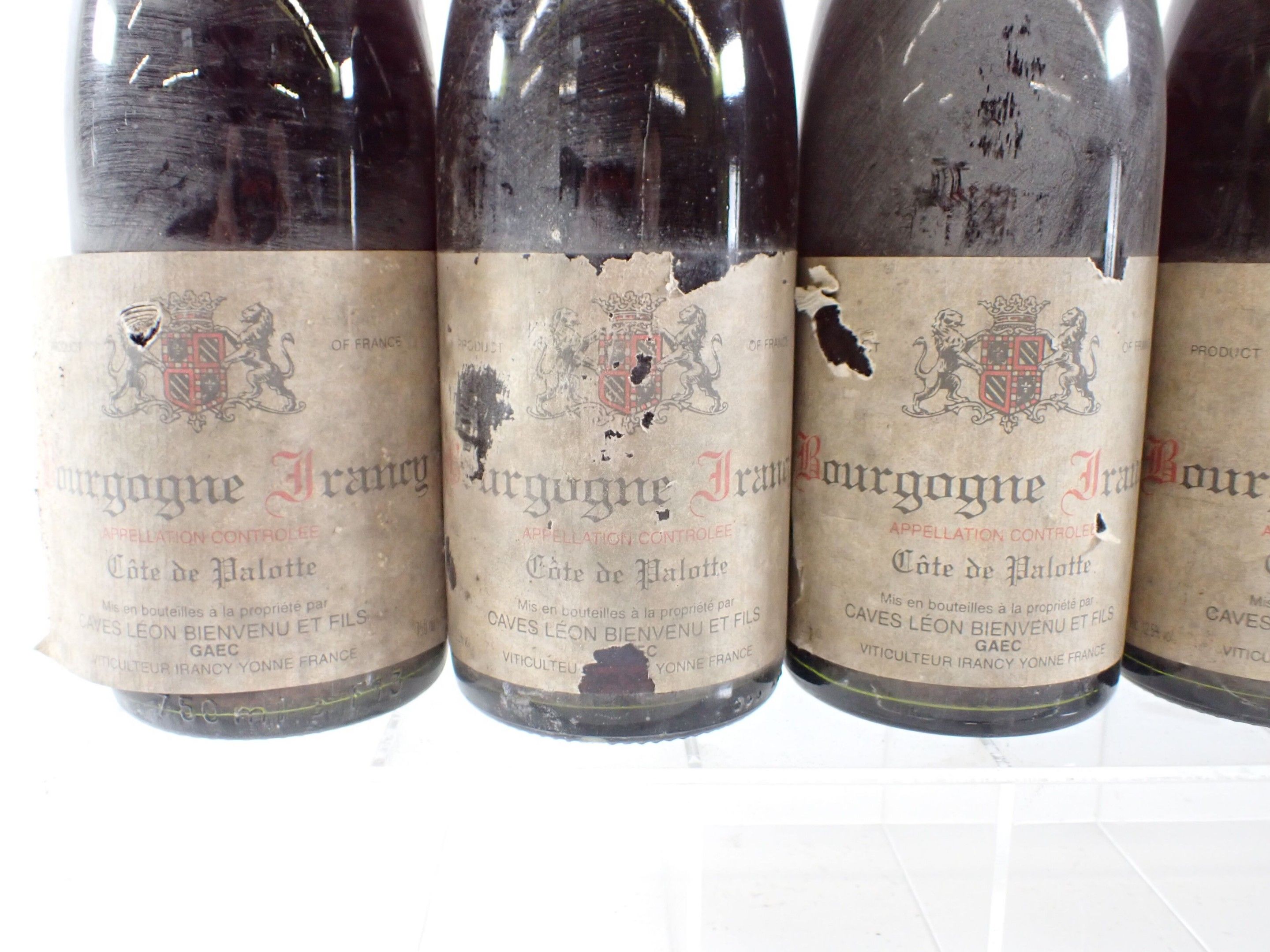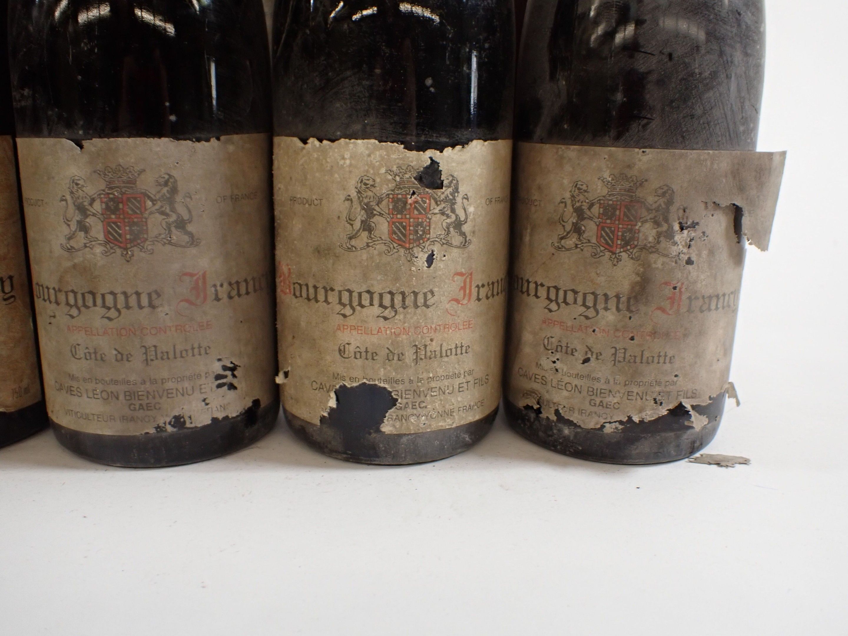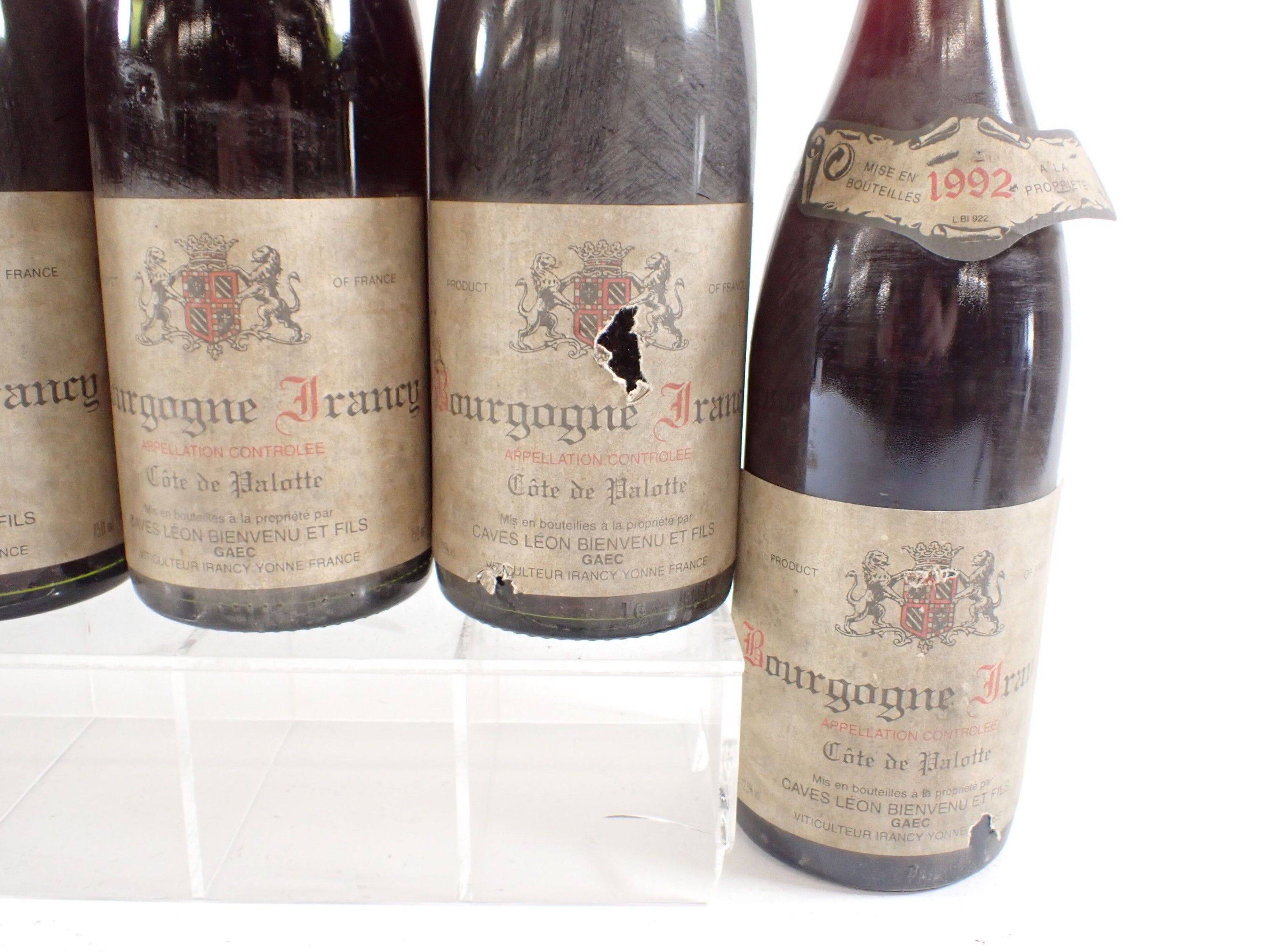 BOURGOGNE - 12 bottles, Bourgogne Irancy, Caves Léon Bienvenu et fils, Côte de Palotte, 1992. Dirty capsules. Collars and labels dirty, degraded and partially detached in some cases.