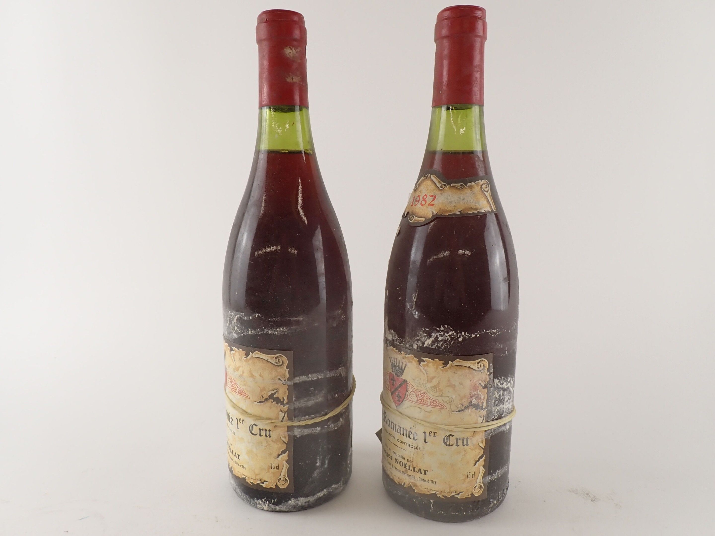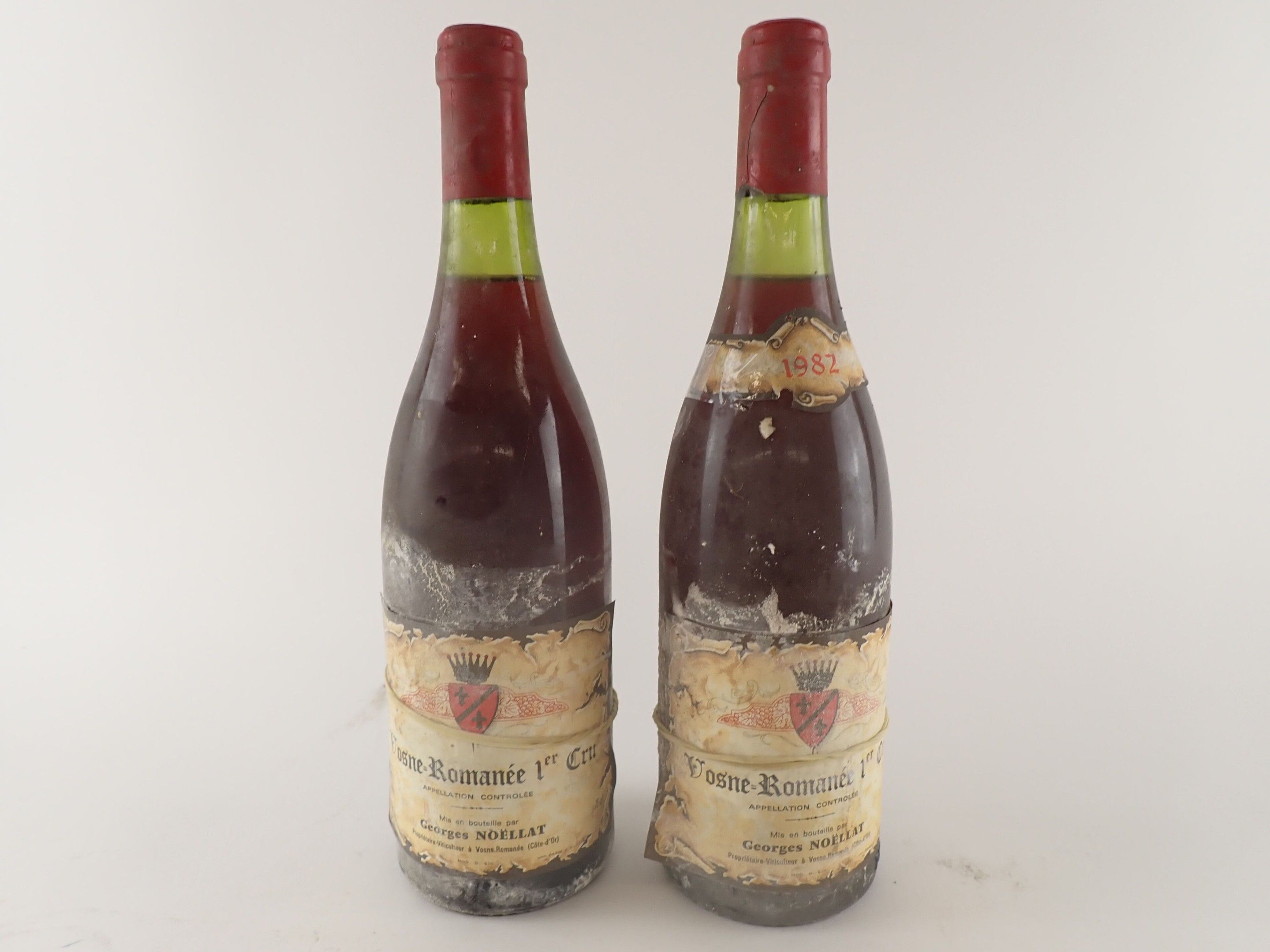 BOURGOGNE - 2 bottles, Vosne-Romanée 1er Cru, Charles Noëllat, 1982 and ? vintage (1). Caps slightly dirty to dirty. One collar is slightly dirty and partially detached; the other is missing. Labels dirty and almost entirely detached.