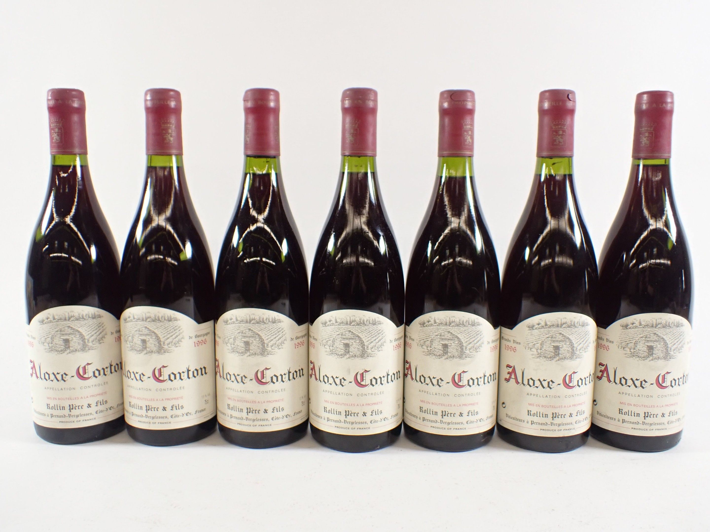 BOURGOGNE - 7 bottles, Aloxe-Corton, Rollin père et fils, 1996. Slight marks on the capsules and labels.