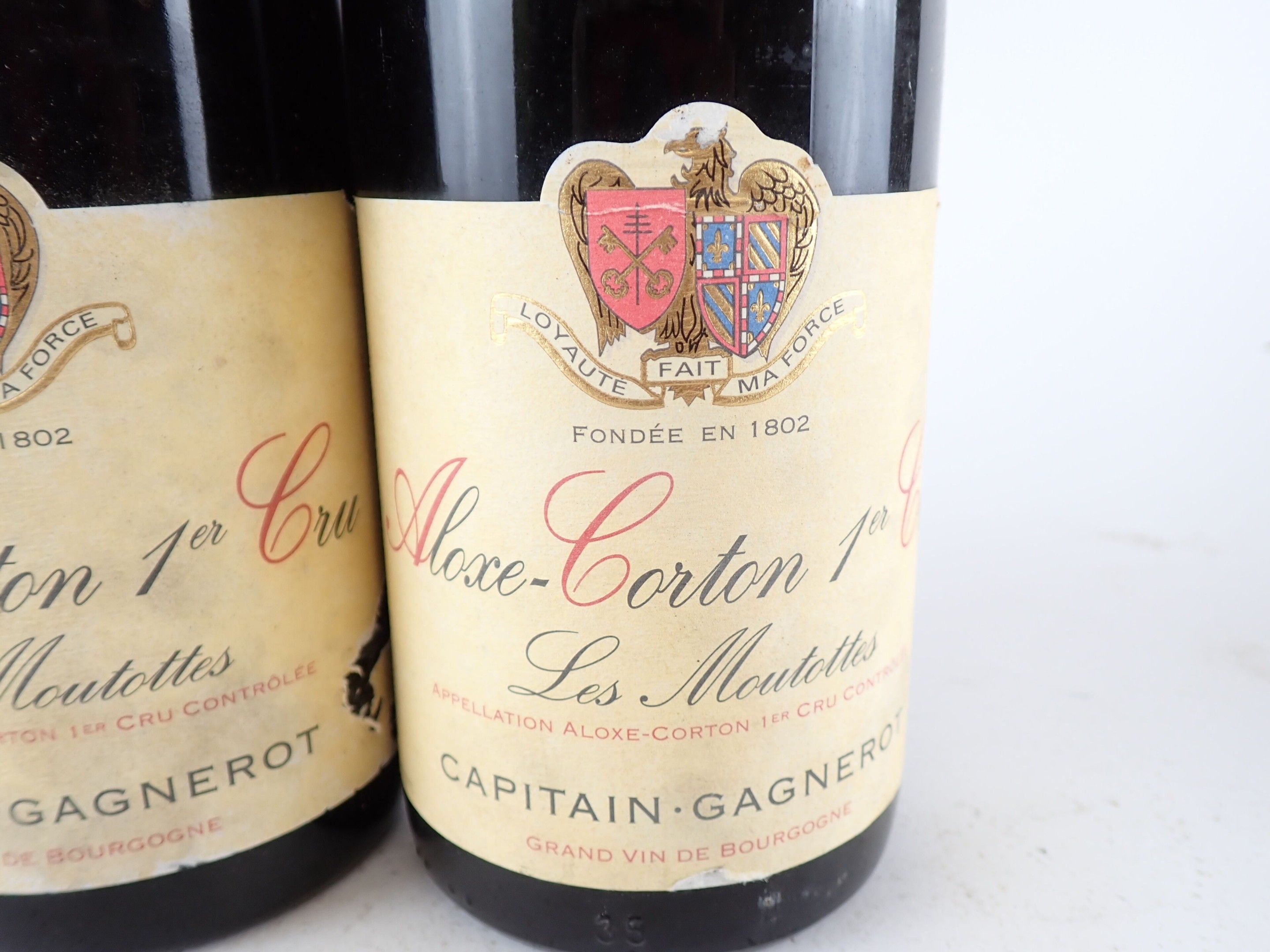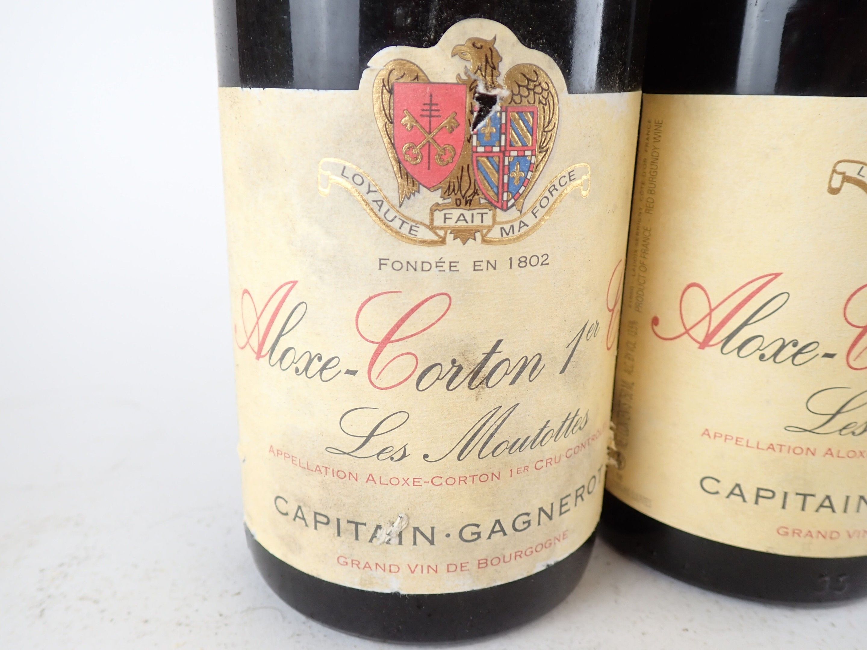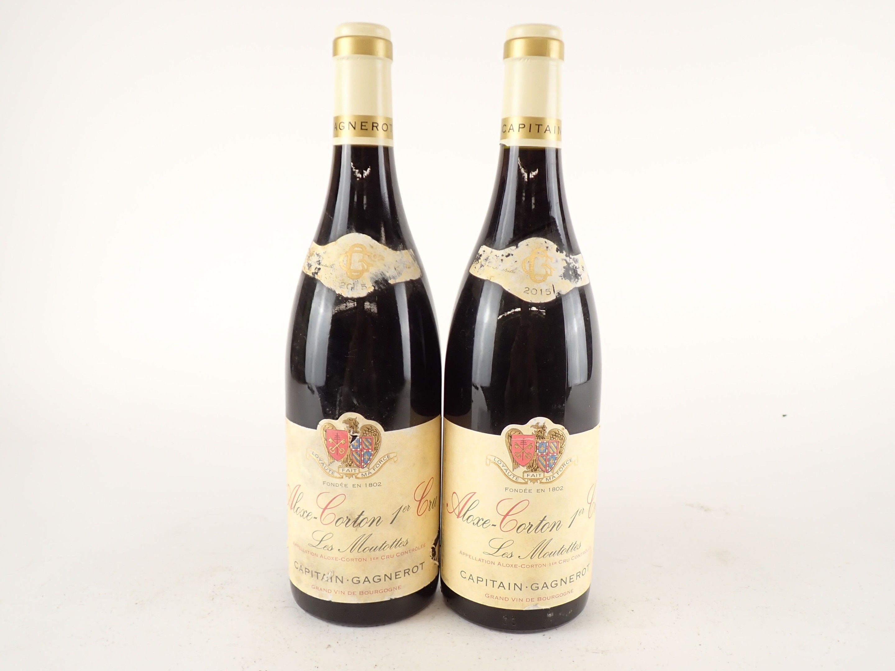 BOURGOGNE - 2 bottles, Aloxe-Corton 1er Cru 'Les Moutottes', Capitaine Gagnerot, 2015. Deteriorated and slightly dirty rims. Labels with traces of damp, one of which is also damaged.