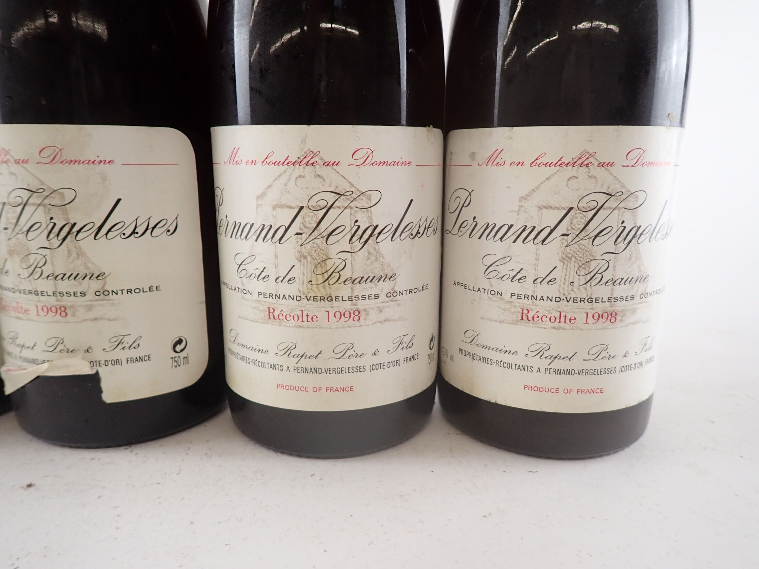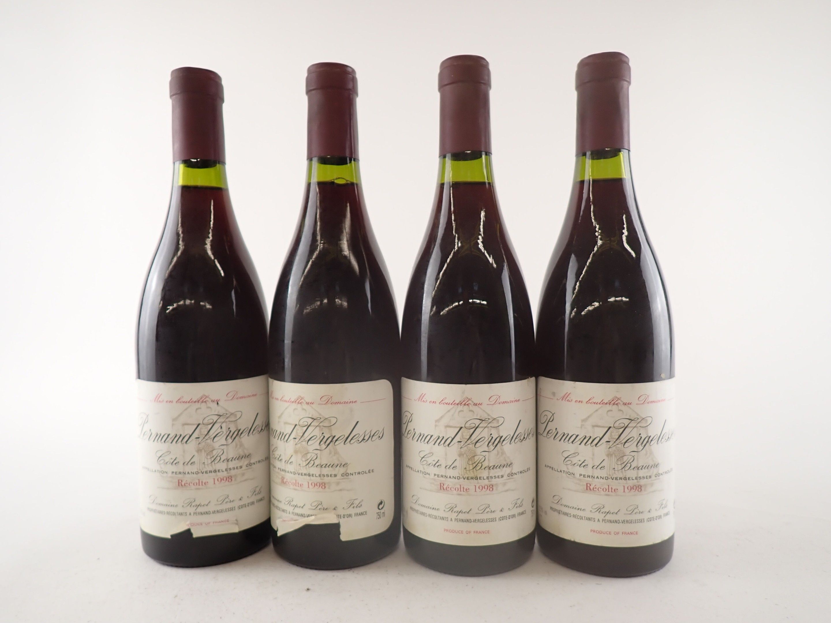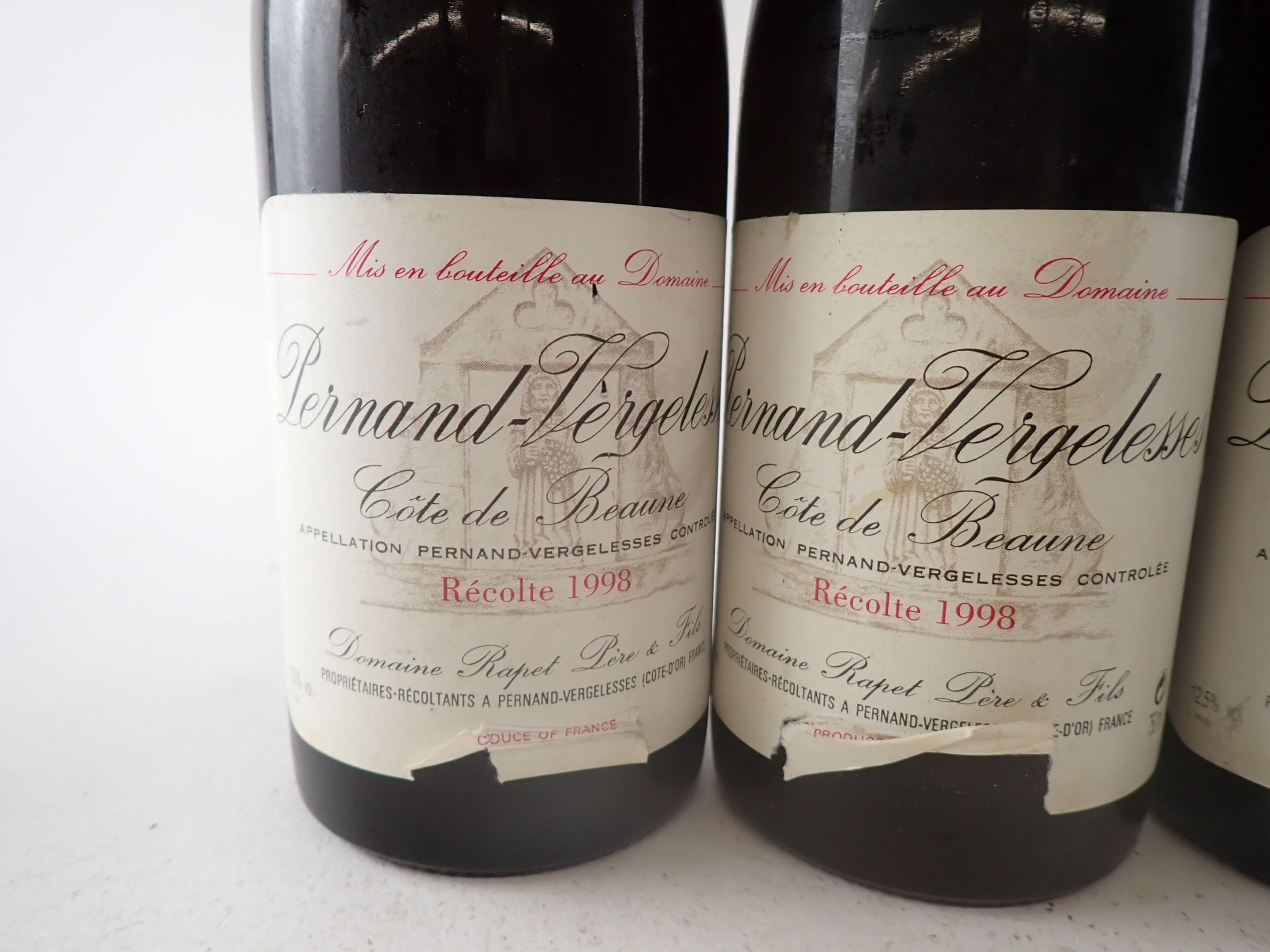 BOURGOGNE - 4 bottles, Pernand-Vergelesses, Domaine Rapet père et fils, 1998. Caps with traces and slightly curved. Labels with marks, two of which also have tears.
