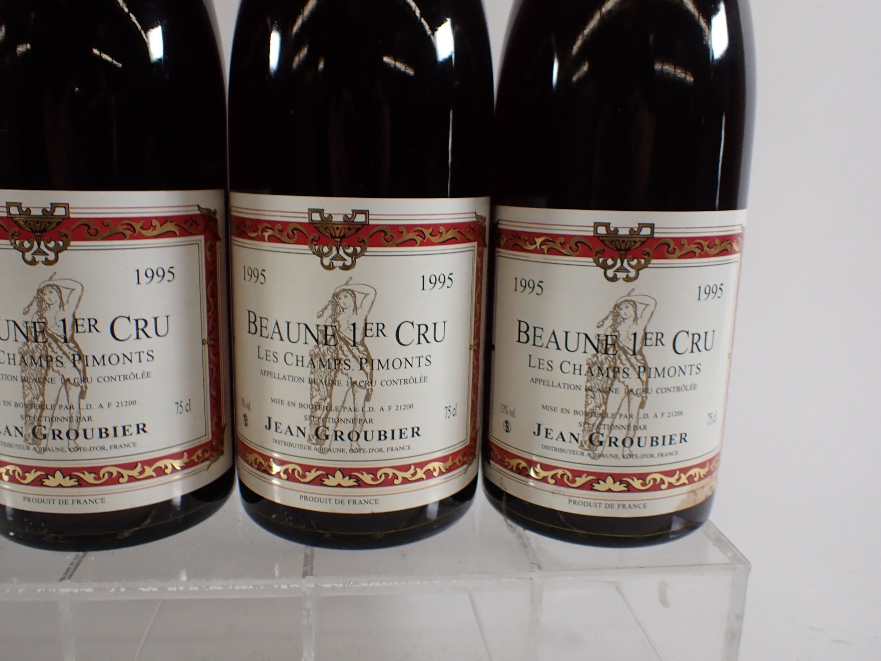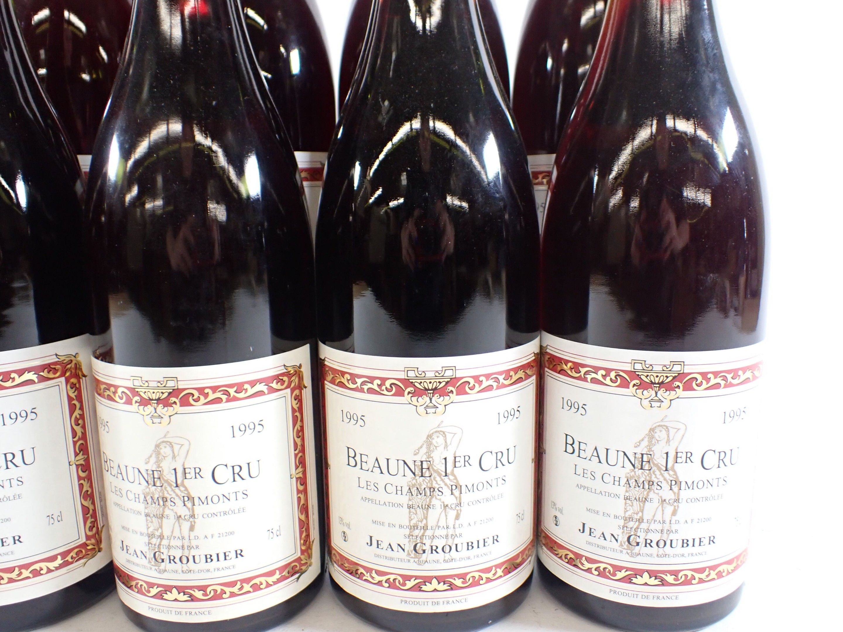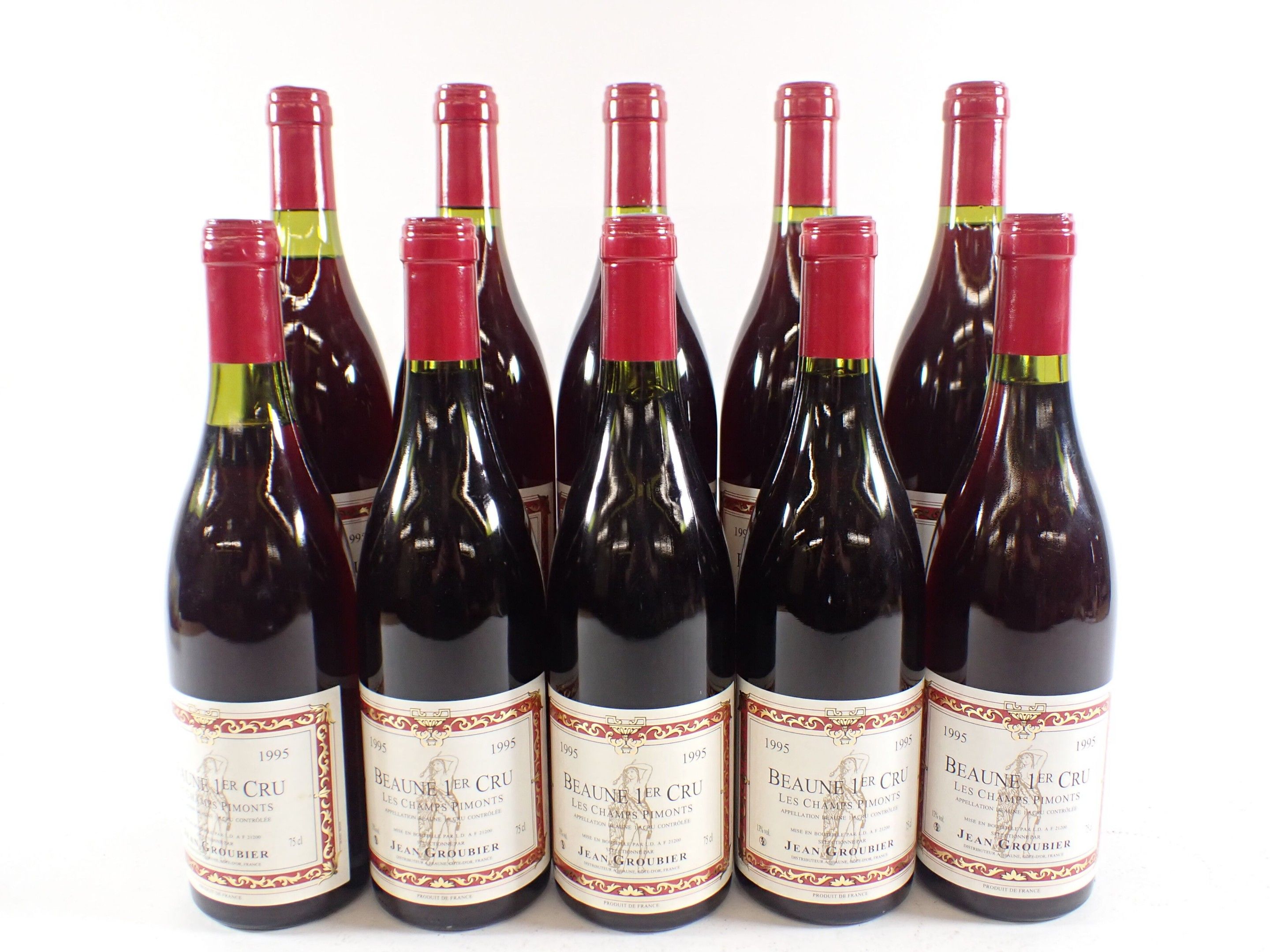 BOURGOGNE - 10 bottles, Beaune 1er Cru 'Les Champs Pimonts', Jean Groubier, 1995. One level at 2 cm and another at 2.3 cm.
