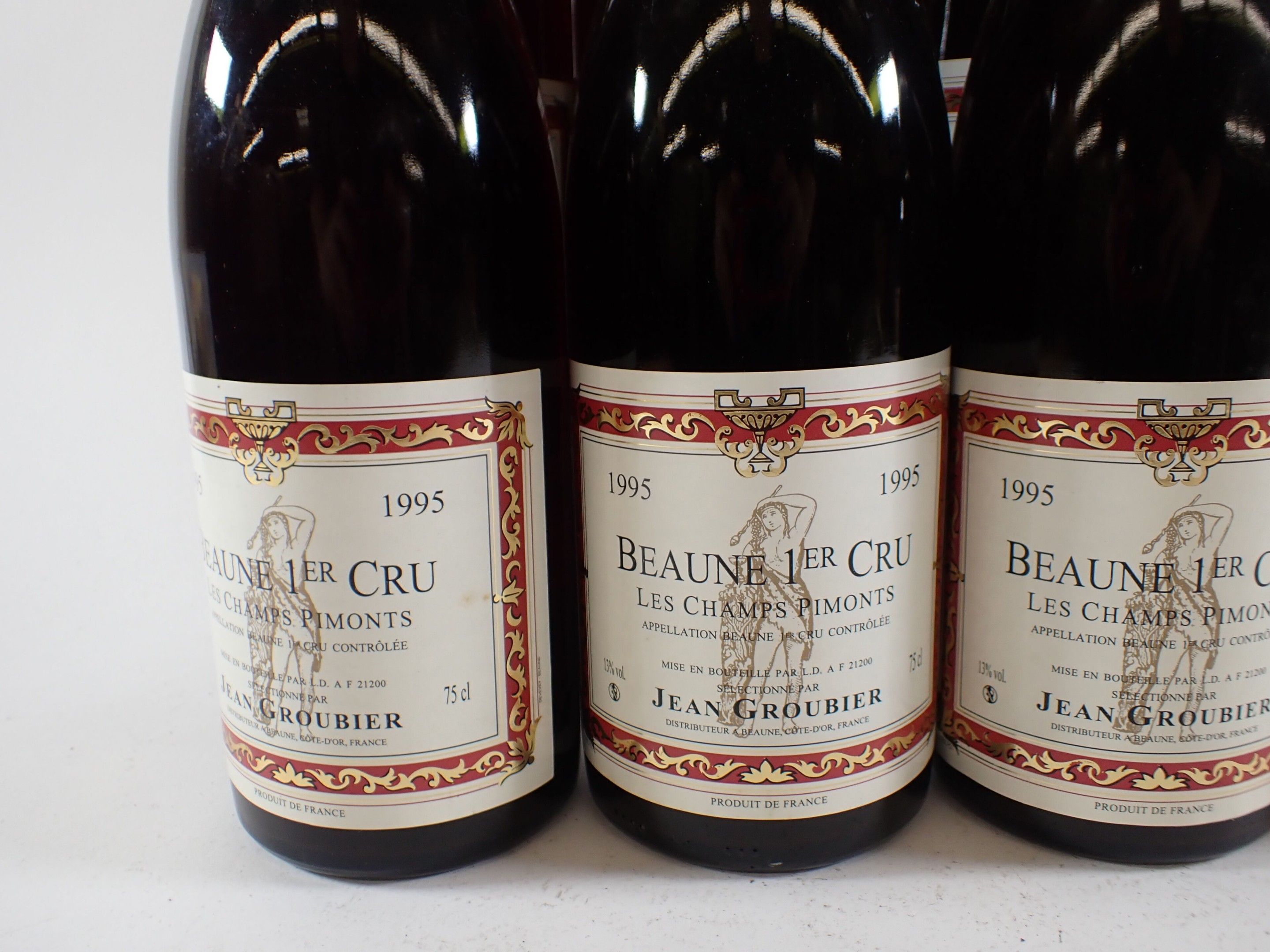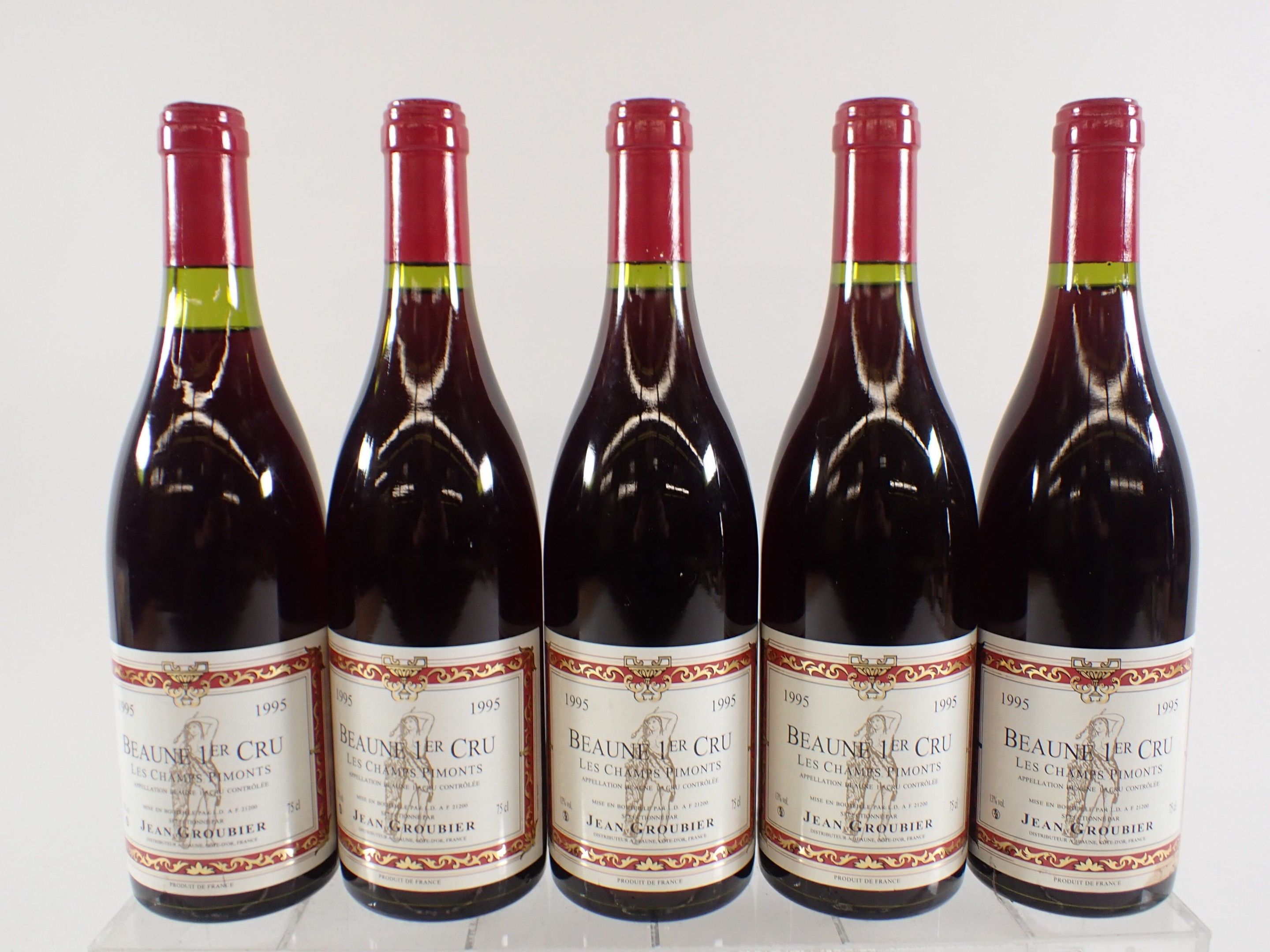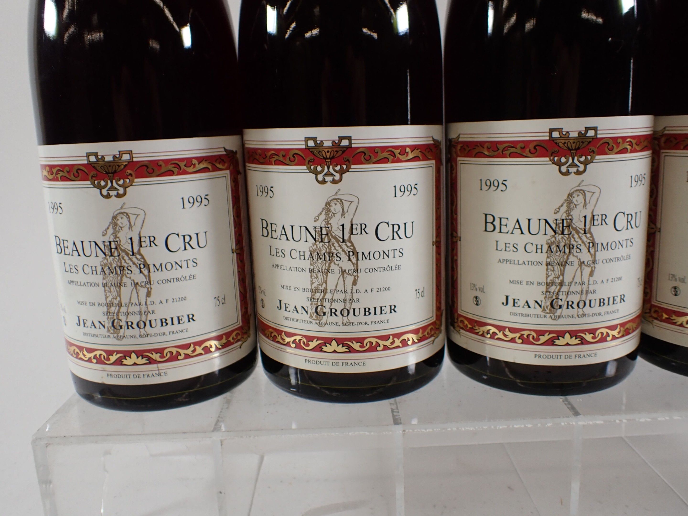 BOURGOGNE - 10 bottles, Beaune 1er Cru 'Les Champs Pimonts', Jean Groubier, 1995. One level at 2 cm and another at 2.3 cm.