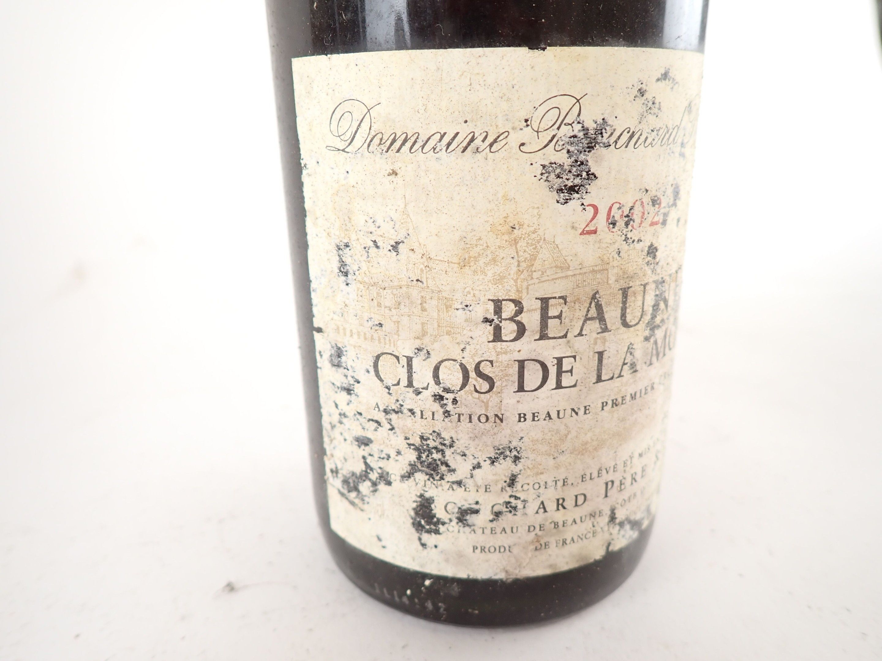 BOURGOGNE - 1 bottle, Beaune 1er Cru 'Clos de la Mousse', Bouchard, 2002. Capsule slightly dirty at the top. Collar, label and back label dirty and degraded to very degraded.