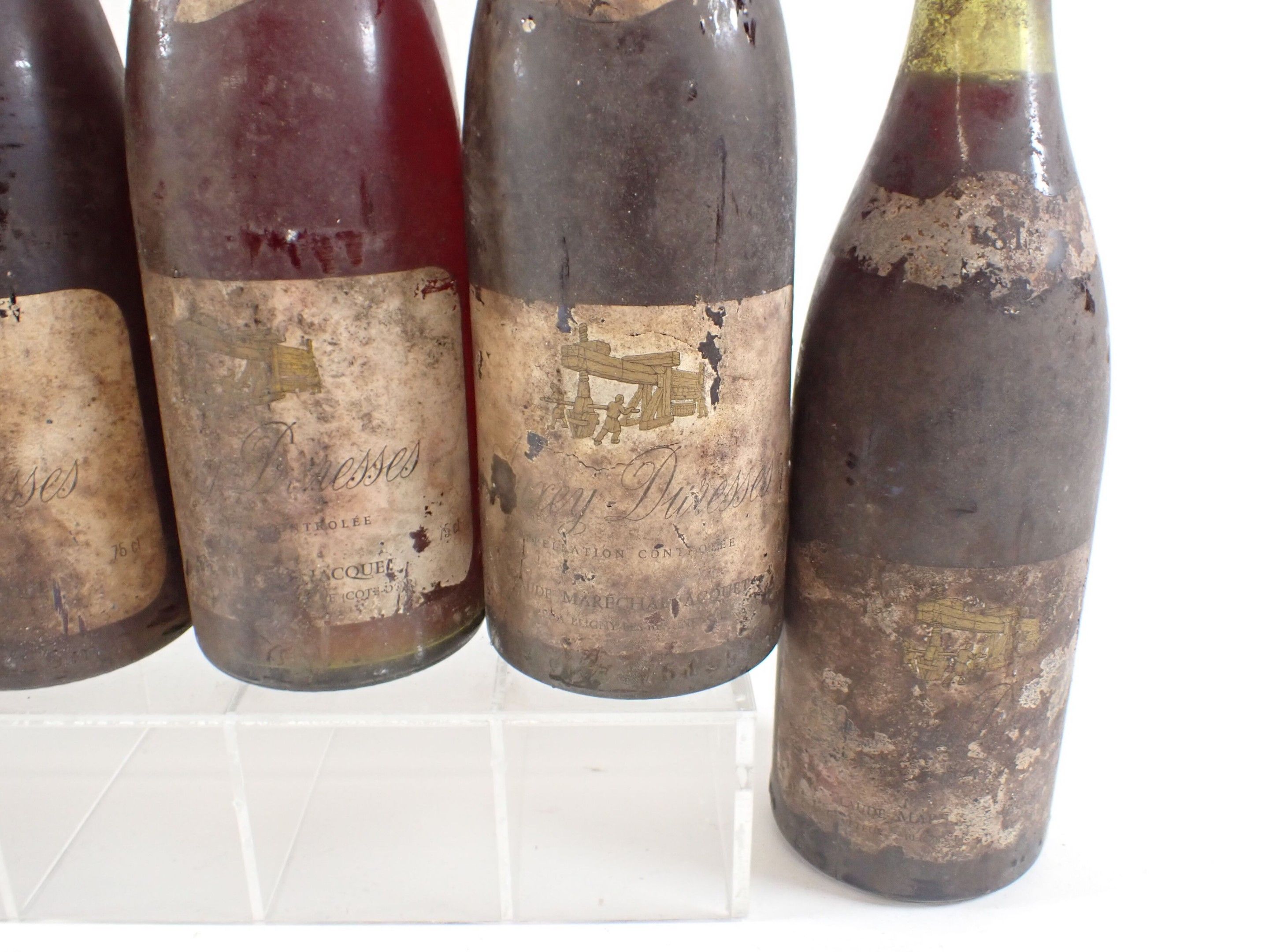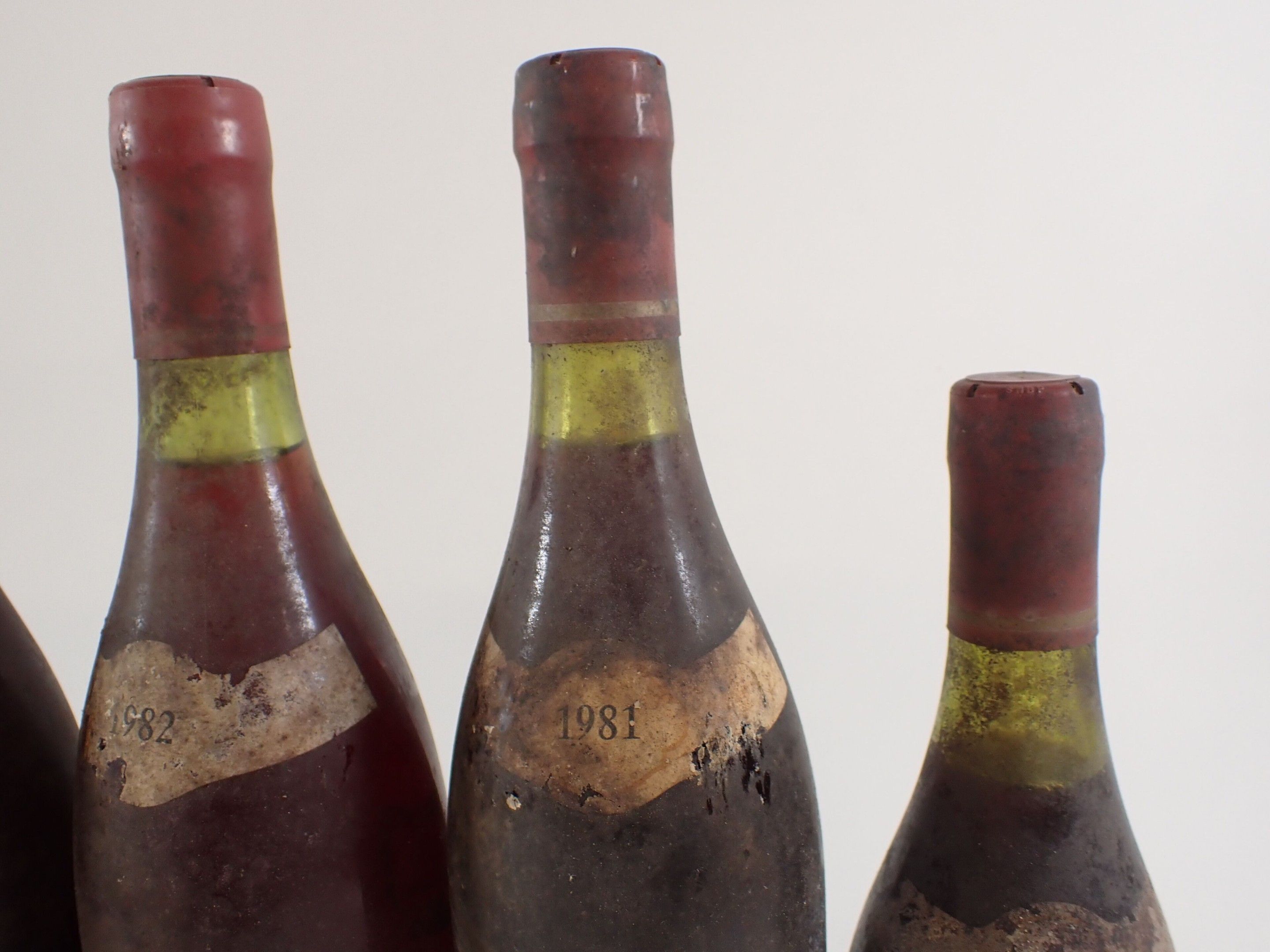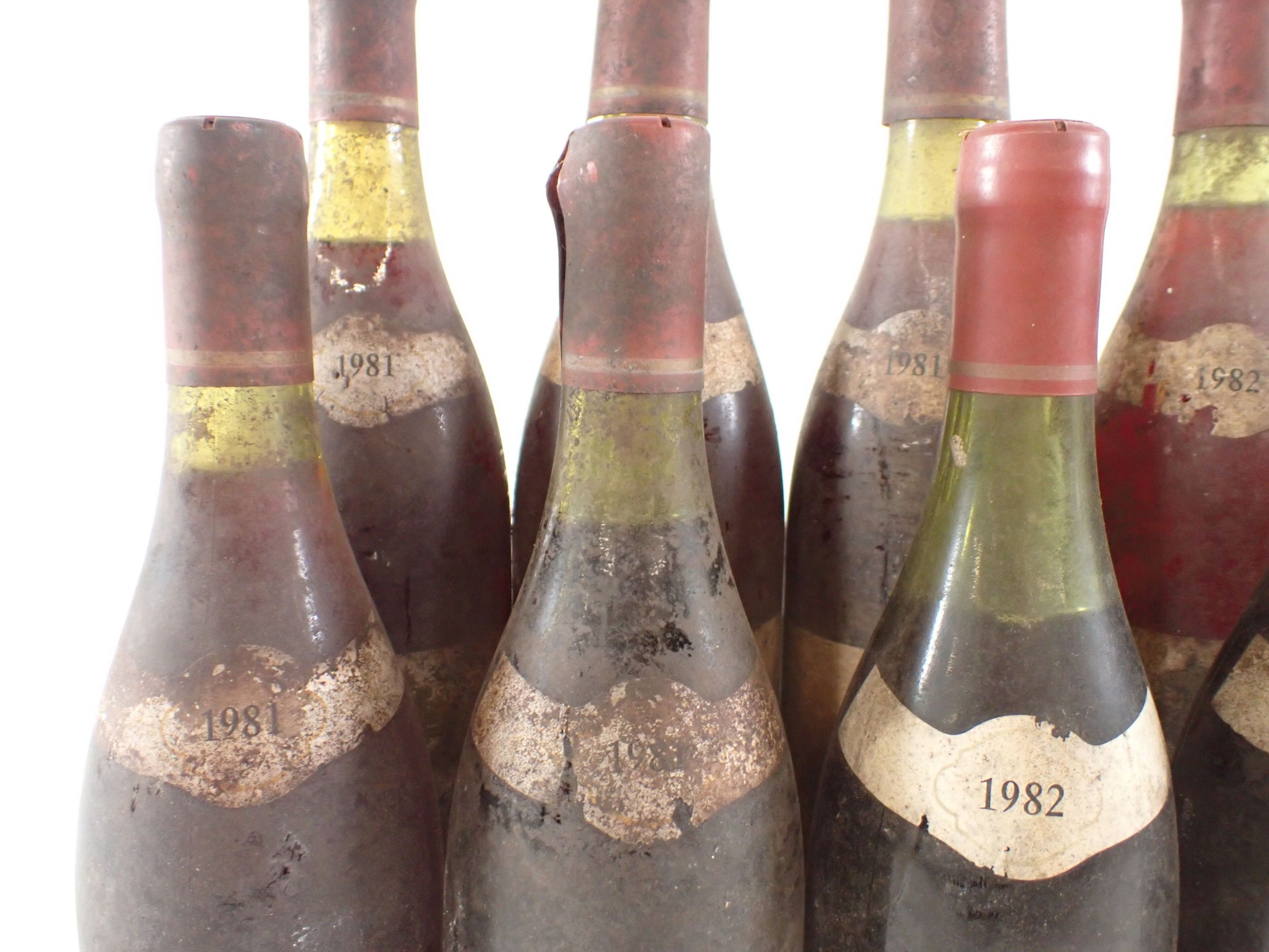 BOURGOGNE - 12 bottles, Auxey-Duresses, Claude Maréchal-Jacquet, 1981 (9 including one supposedly of this vintage) and 1982 (3). Levels above 3.8 cm except for one level at 4.6 cm (1982) and one level at 5.7 cm (1982). Caps, collars and labels very dirty and damaged to very damaged.