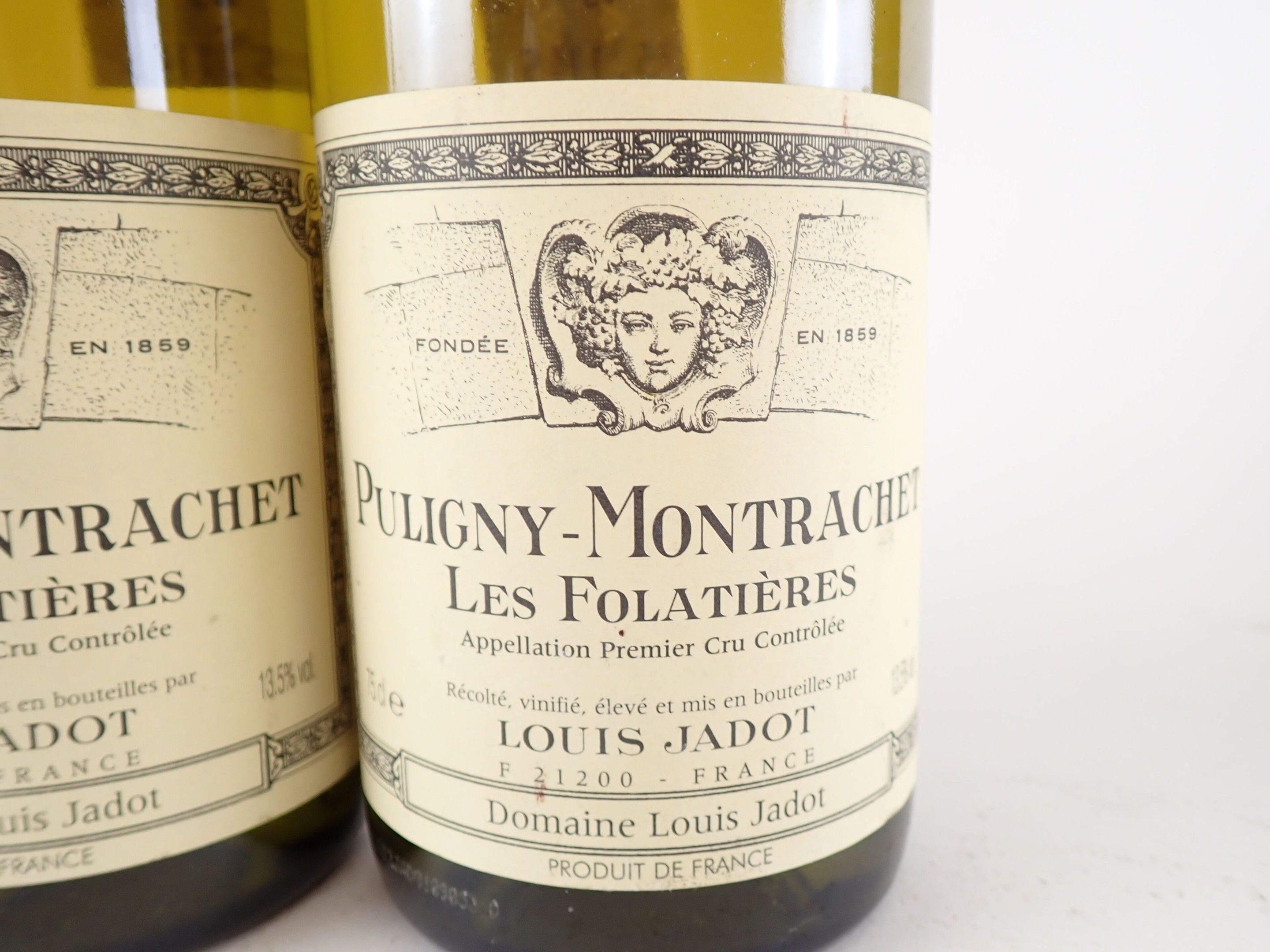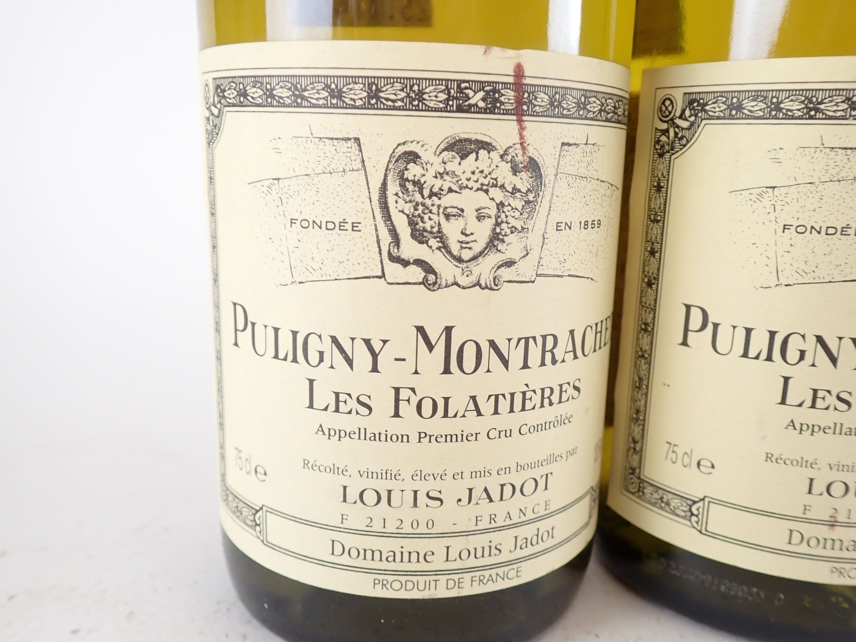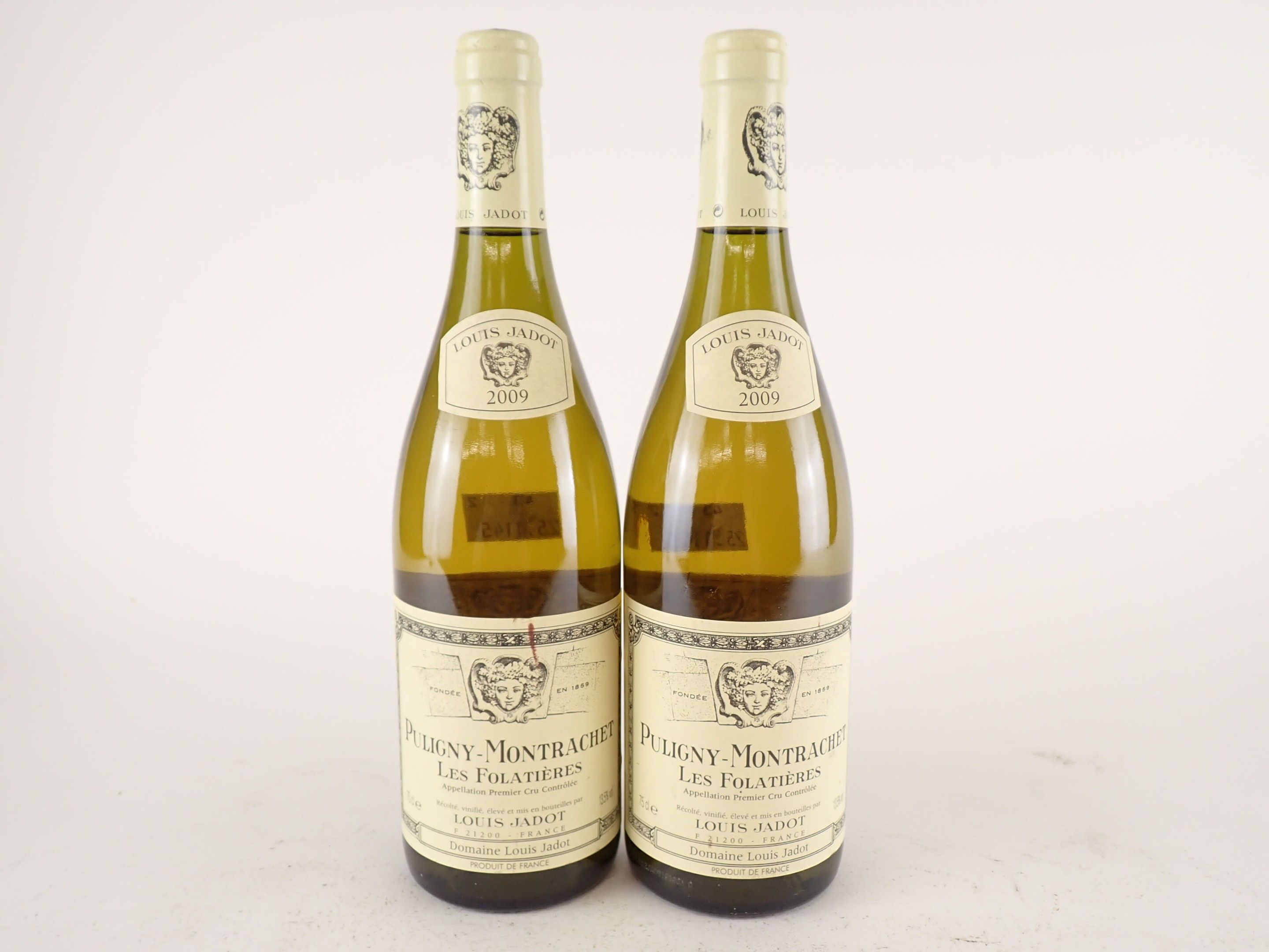BOURGOGNE - 2 bottles, Puligny-Montrachet 'Les Folatières', Domaine Louis Jadot, 2009. One label with a trace. Slightly dirty back label.