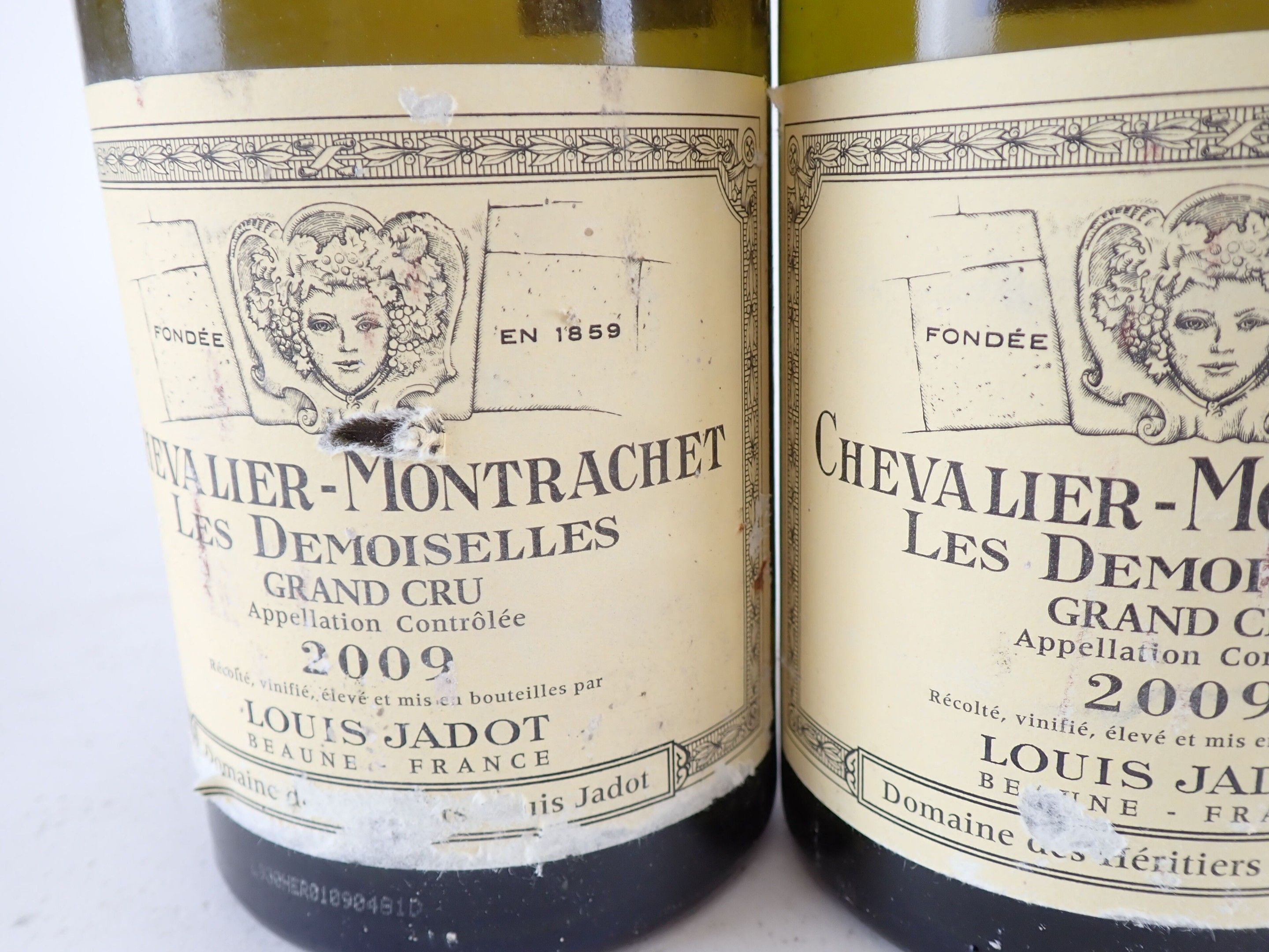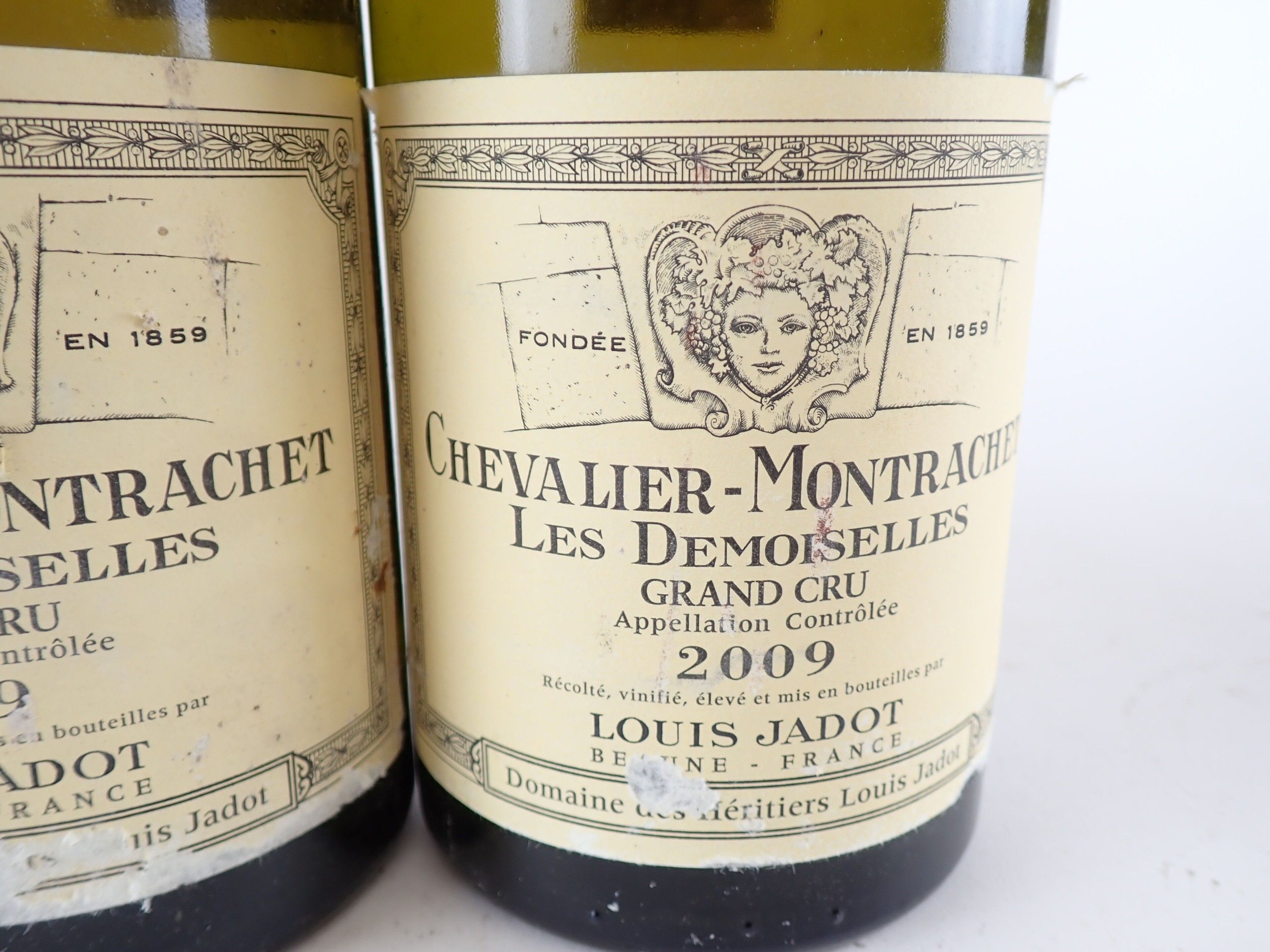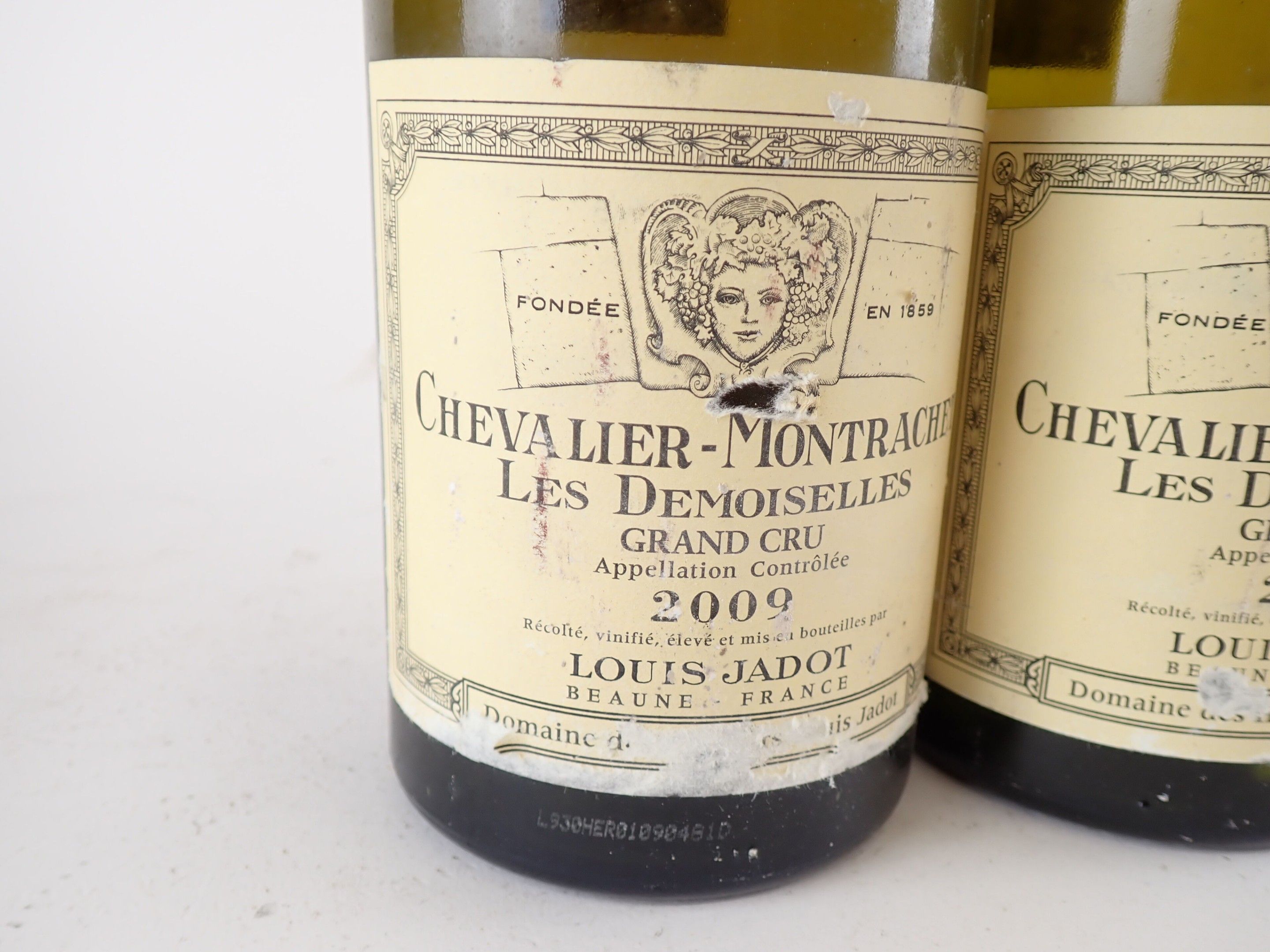 BOURGOGNE - 2 bottles, Chevalier-Montrachet Grand Cru 'Les Demoiselles', Louis Jadot, 2009. Slightly dirty and faded labels and back labels.