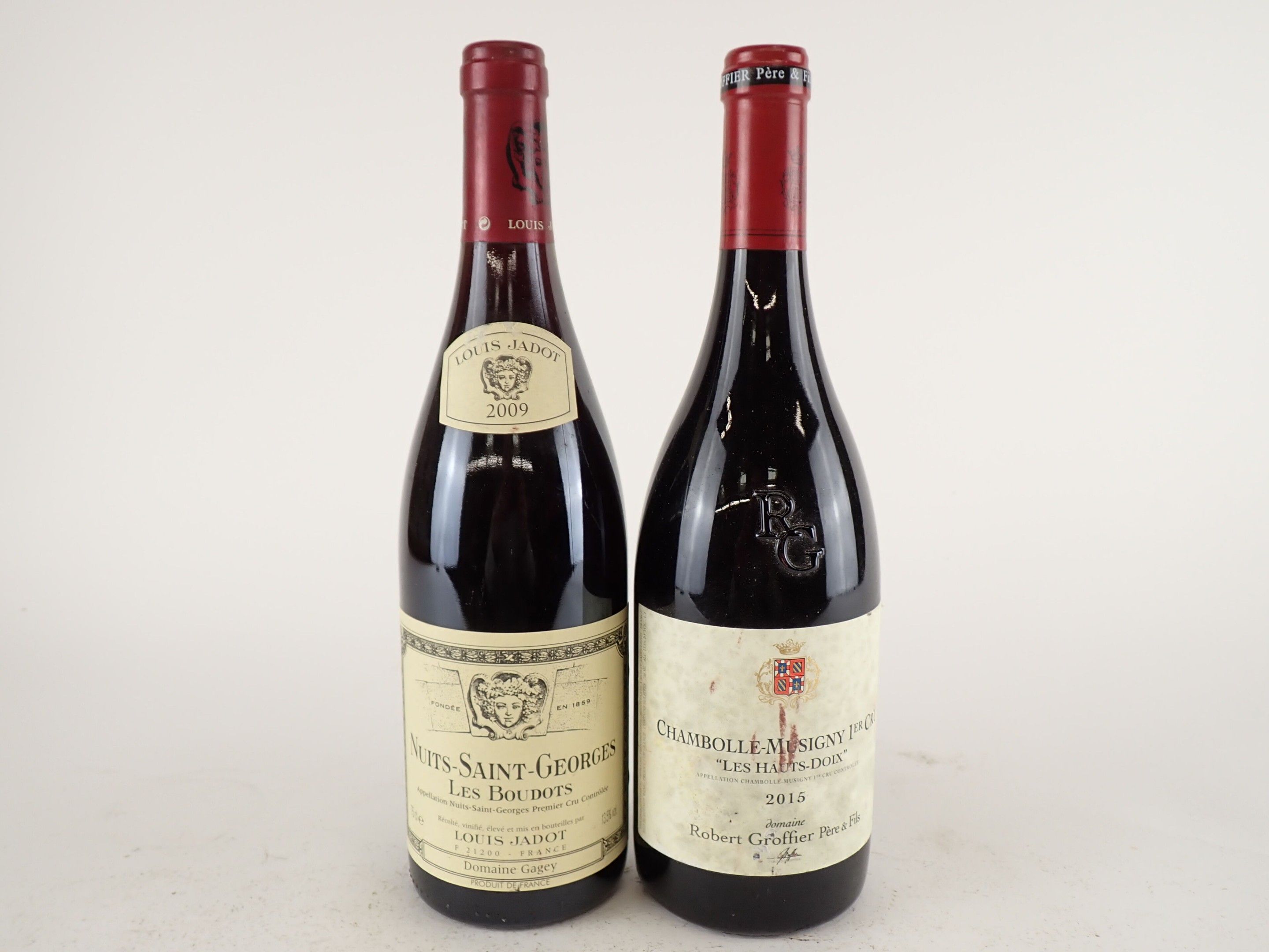 1 bottle, Nuits-Saint-Georges 'Les Boudots', Louis Jadot, Domaine Gagey, 2009. Badge very slightly damaged. Back label slightly dirty and stained.