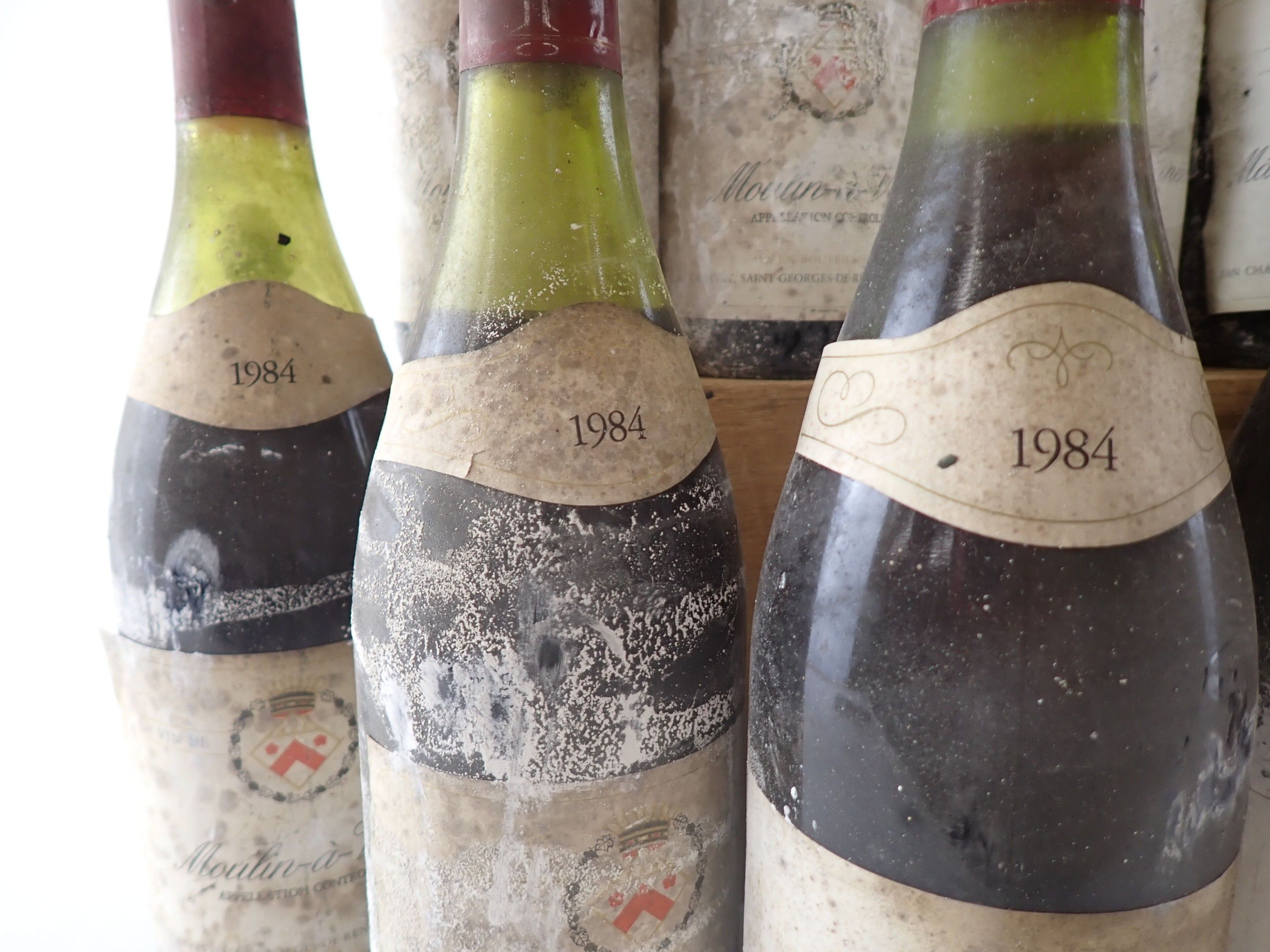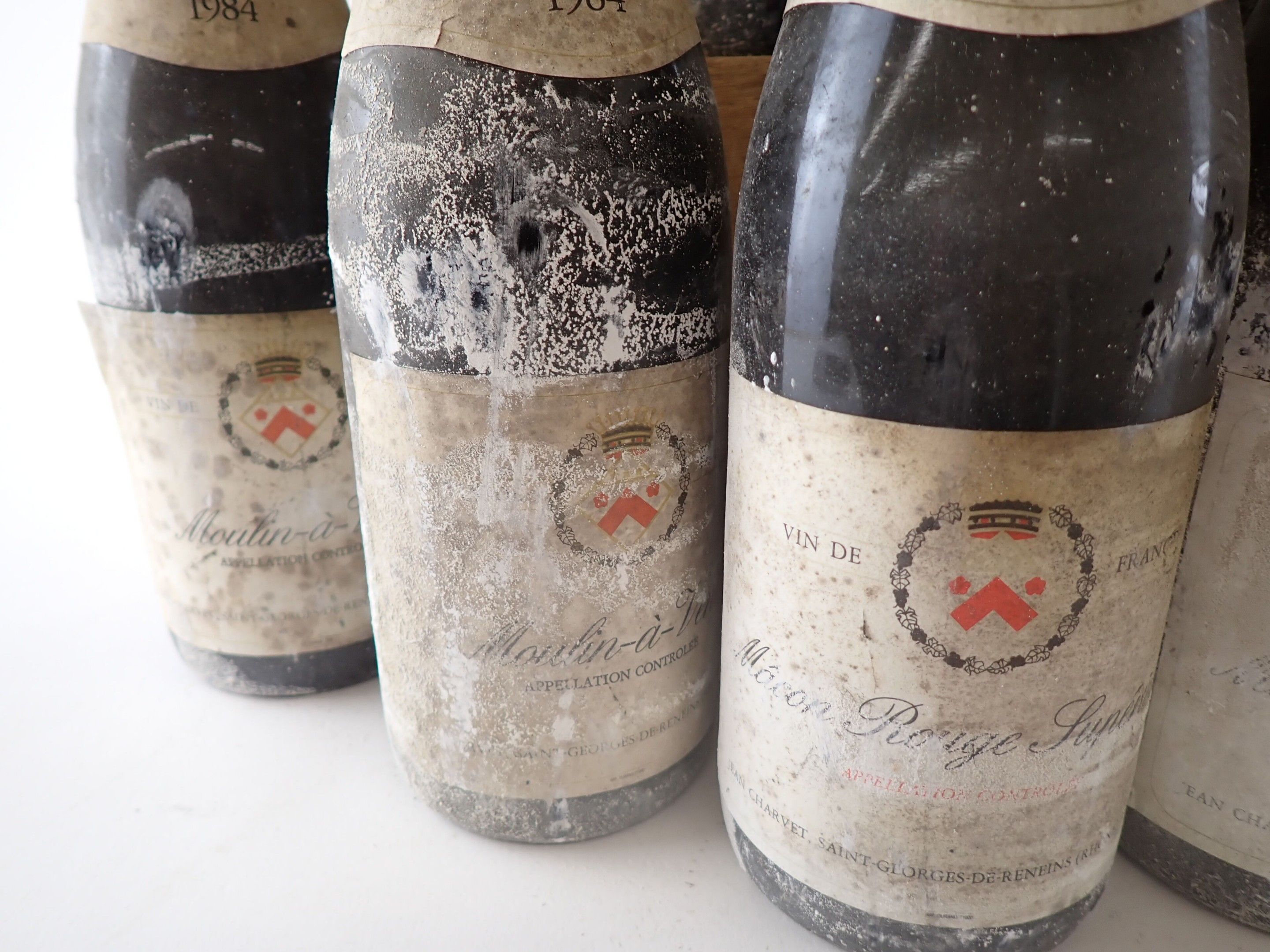 4 bottles, Moulin-à-Vent, Jean Charvet, 1984. As is. Bottles with recent traces of dripping.