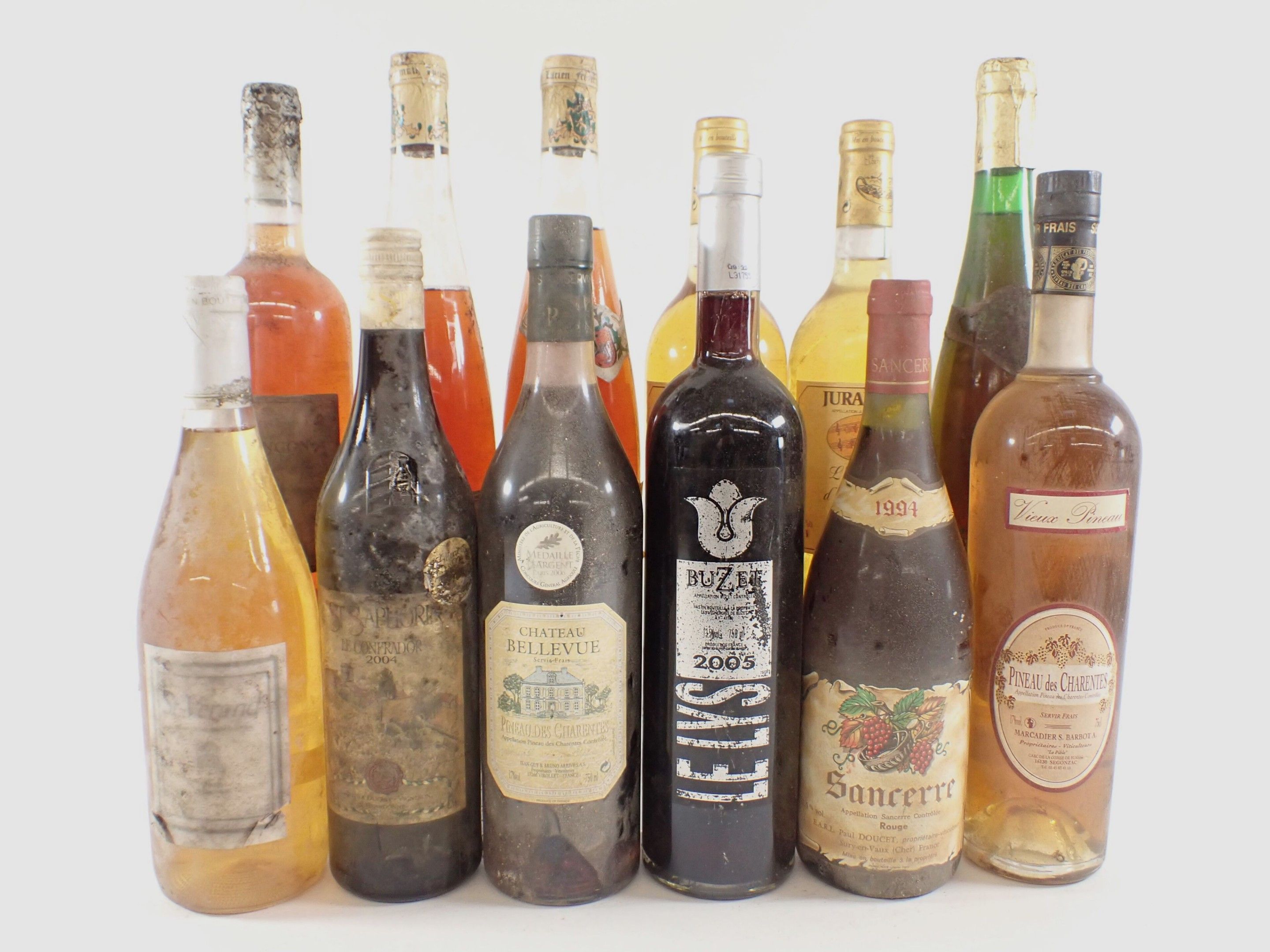 MISCELLANEOUS - Set of 12 bottles of various wines including Sancerre (red), Pineau des Charentes, Alsace, Jurançon, Sud-Ouest, etc. As is.