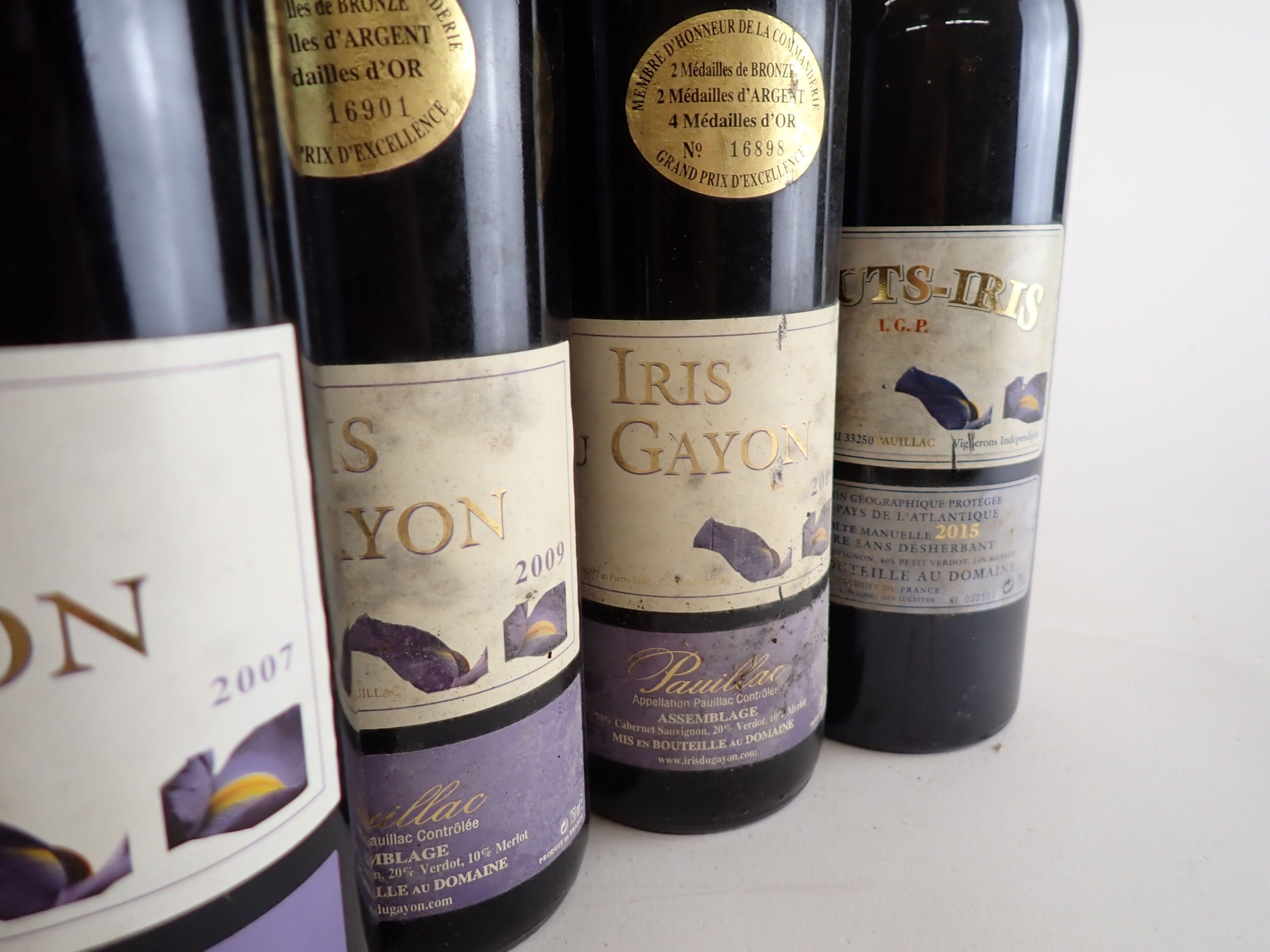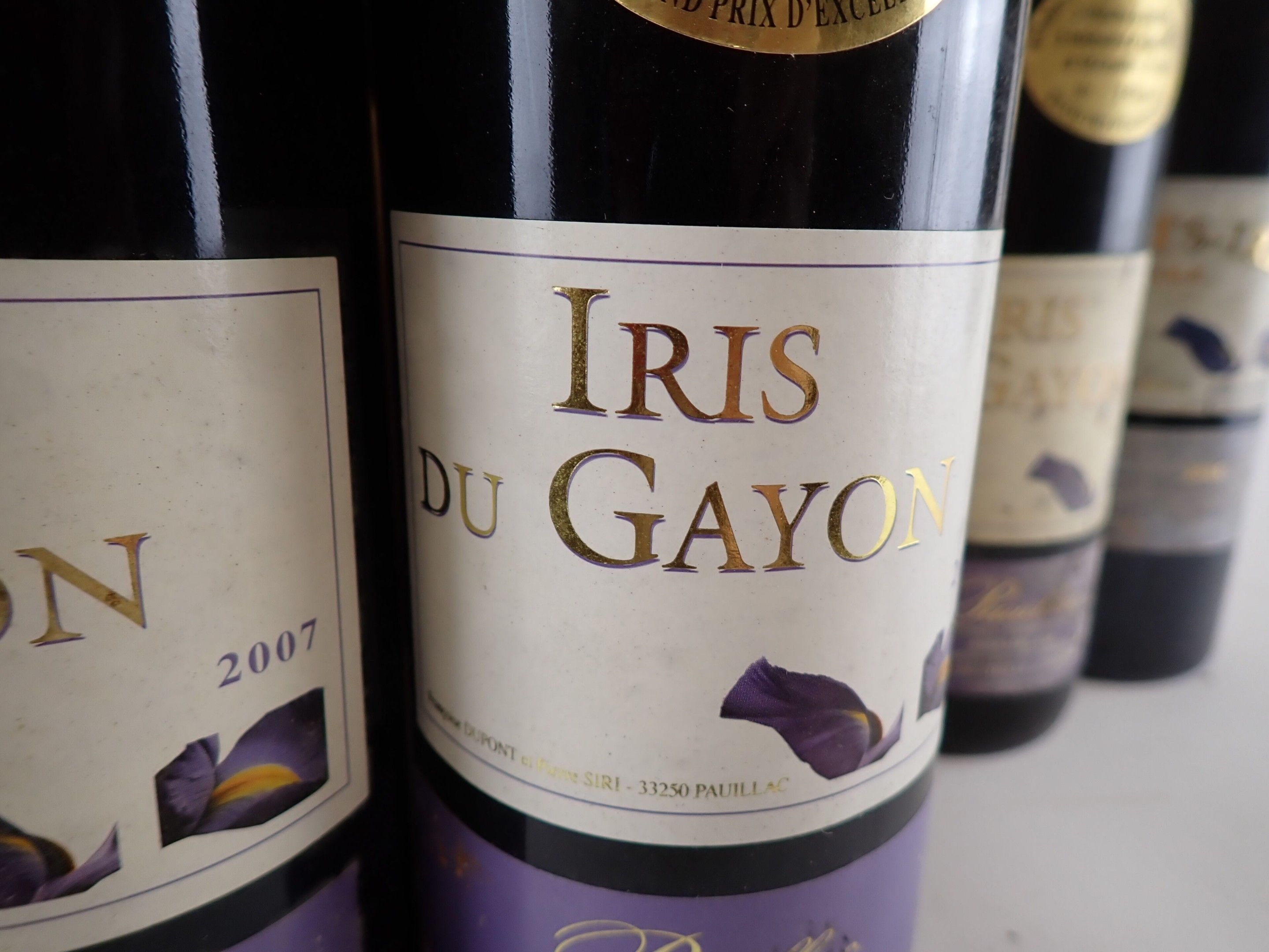 7 bottles, Pauillac, Iris du Gayon, 2007 (3) and 2009 (4). 2 BG (+) and 5 BG. The capsules of the 2009 vintage are domed. Slightly dirty to dirty labels.