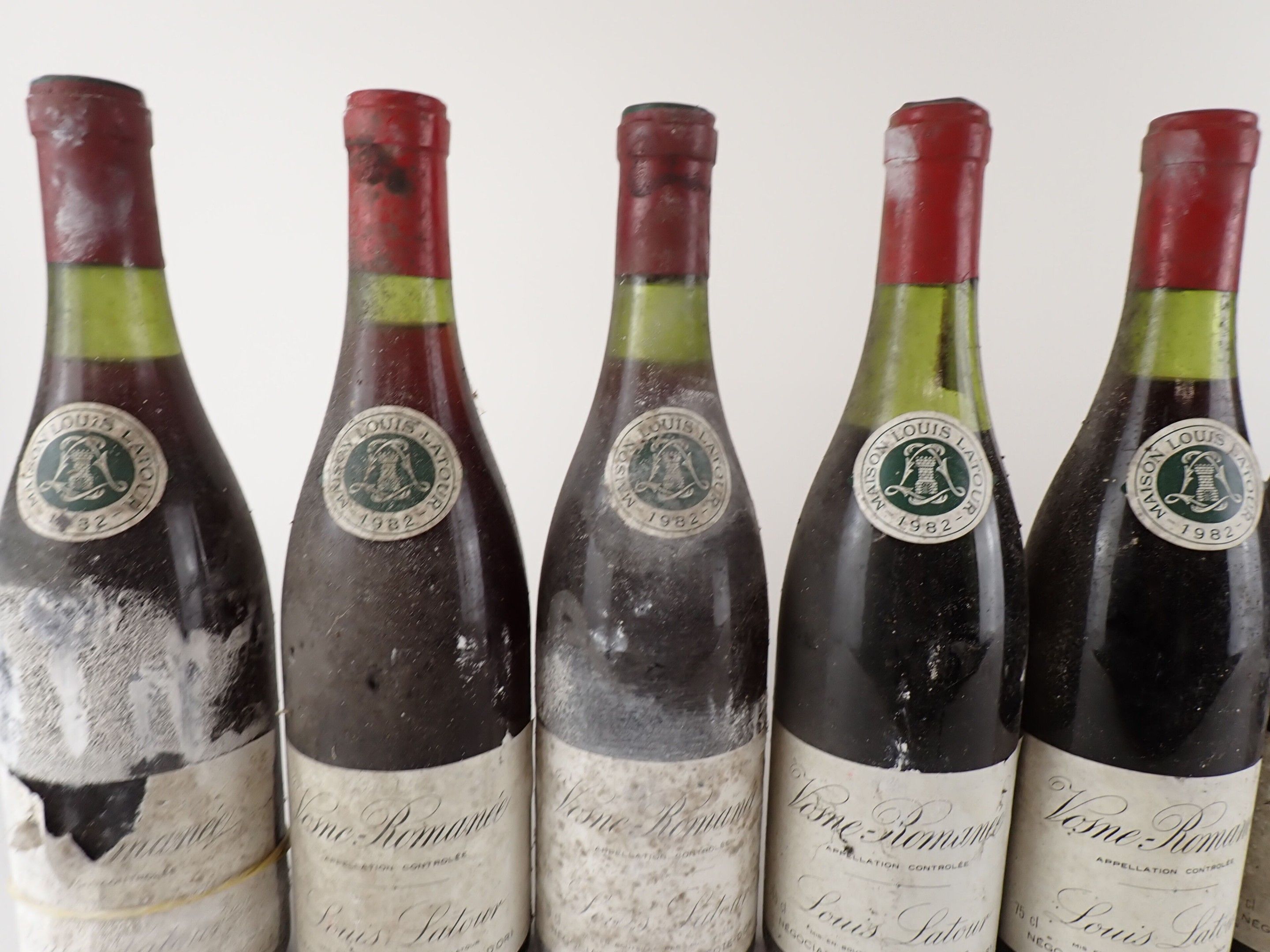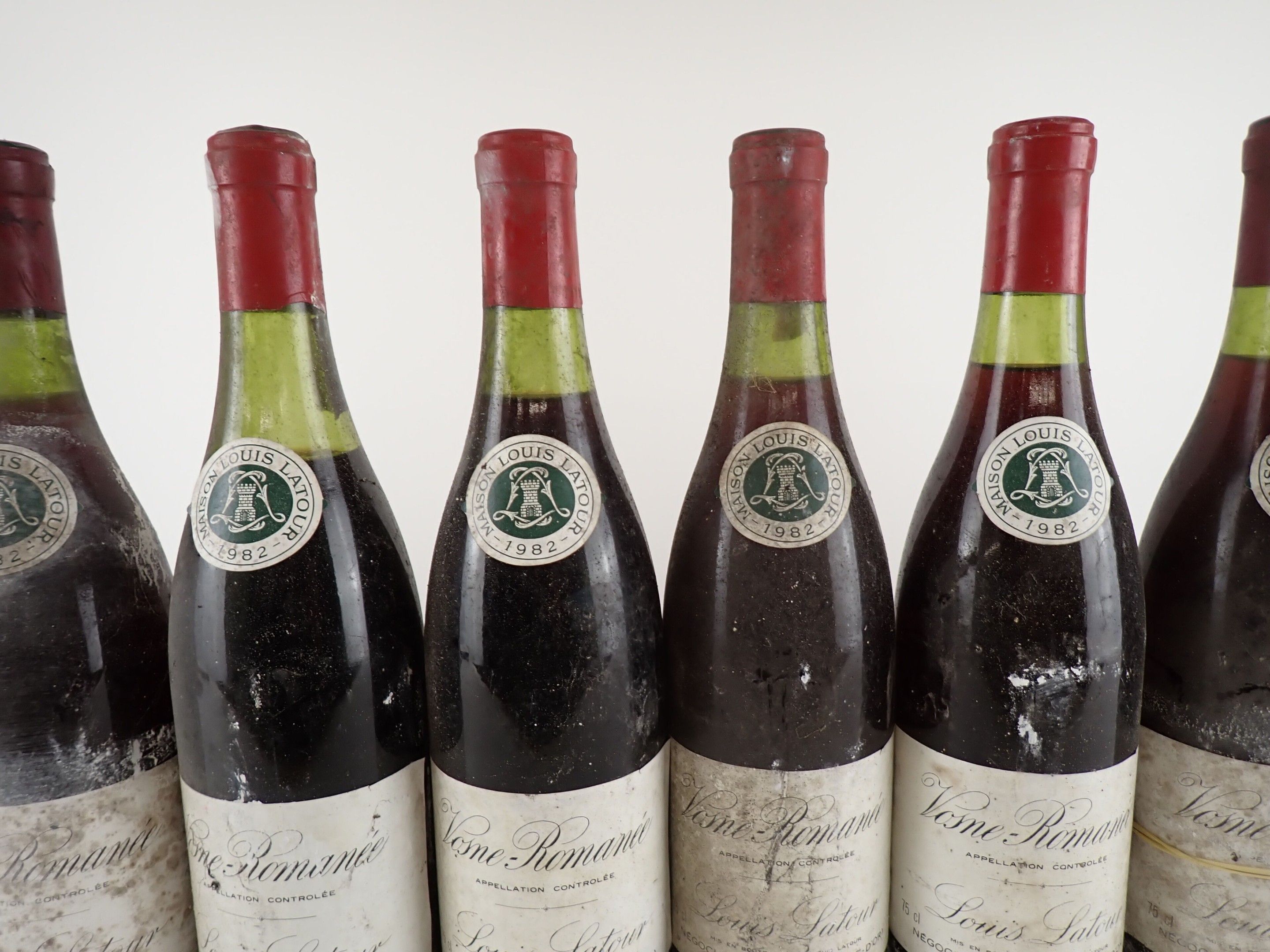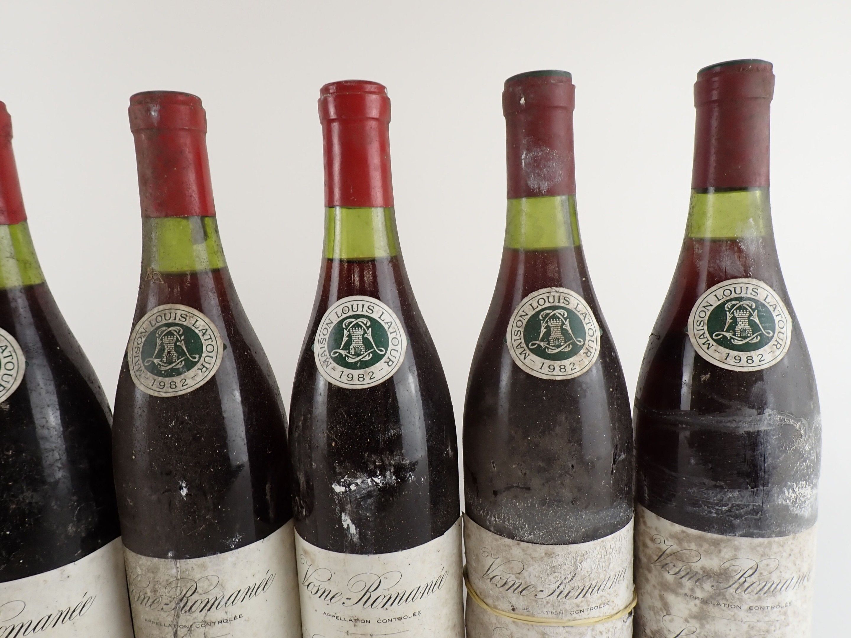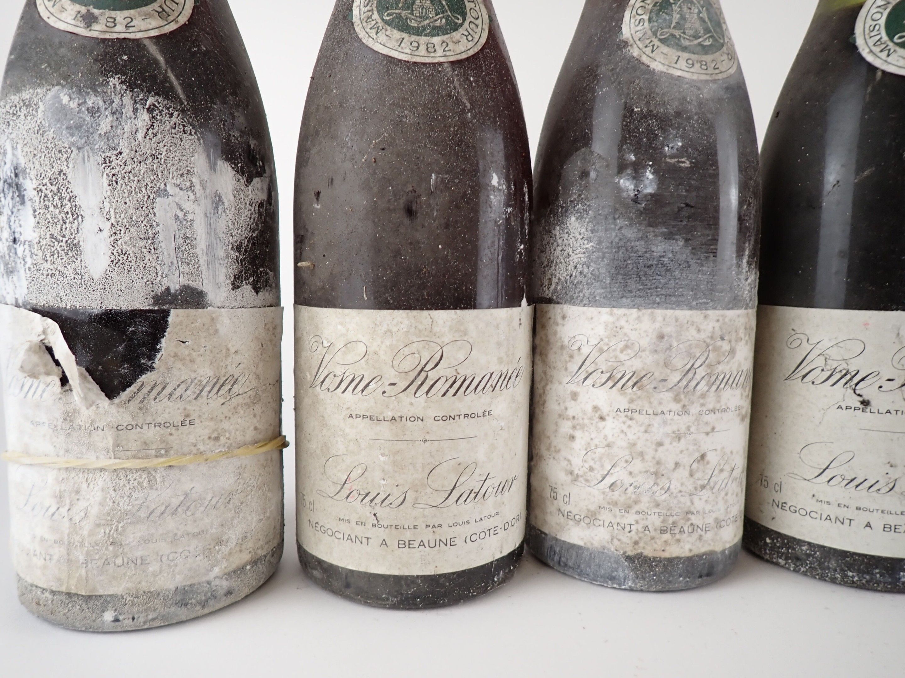 BOURGOGNE - 9 bottles, Vosne-Romanée, Louis Latour, 1982. One level at 4.5 cm. Dirty capsules and escutcheons. Dirty to very dirty labels, three of which are damaged, one partially peeled off and one completely peeled off.