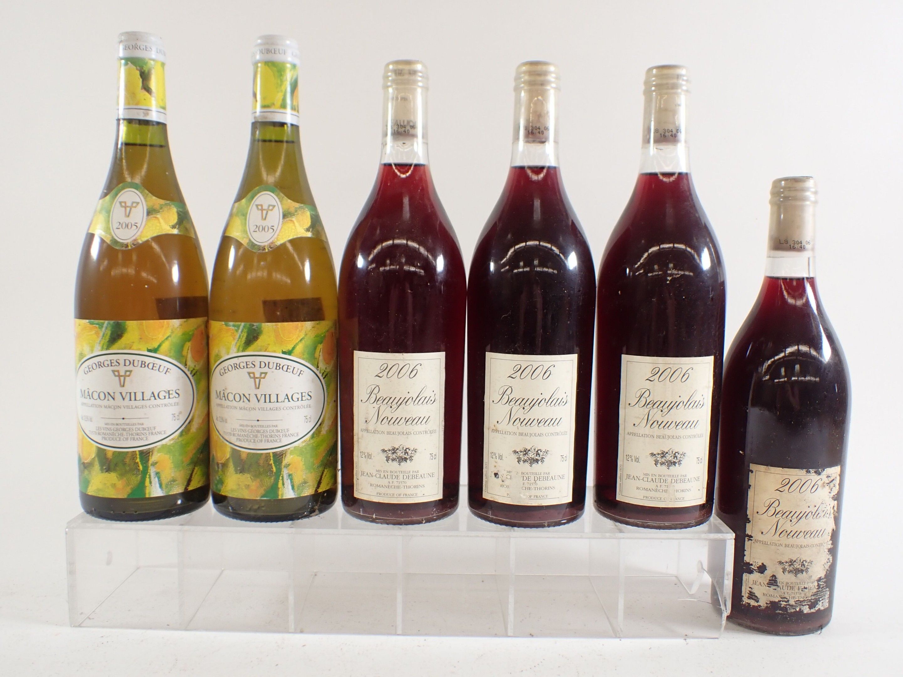 6 bottles, Beaujolais Nouveau, Jean-Claude Debeaune, 2006. As is.