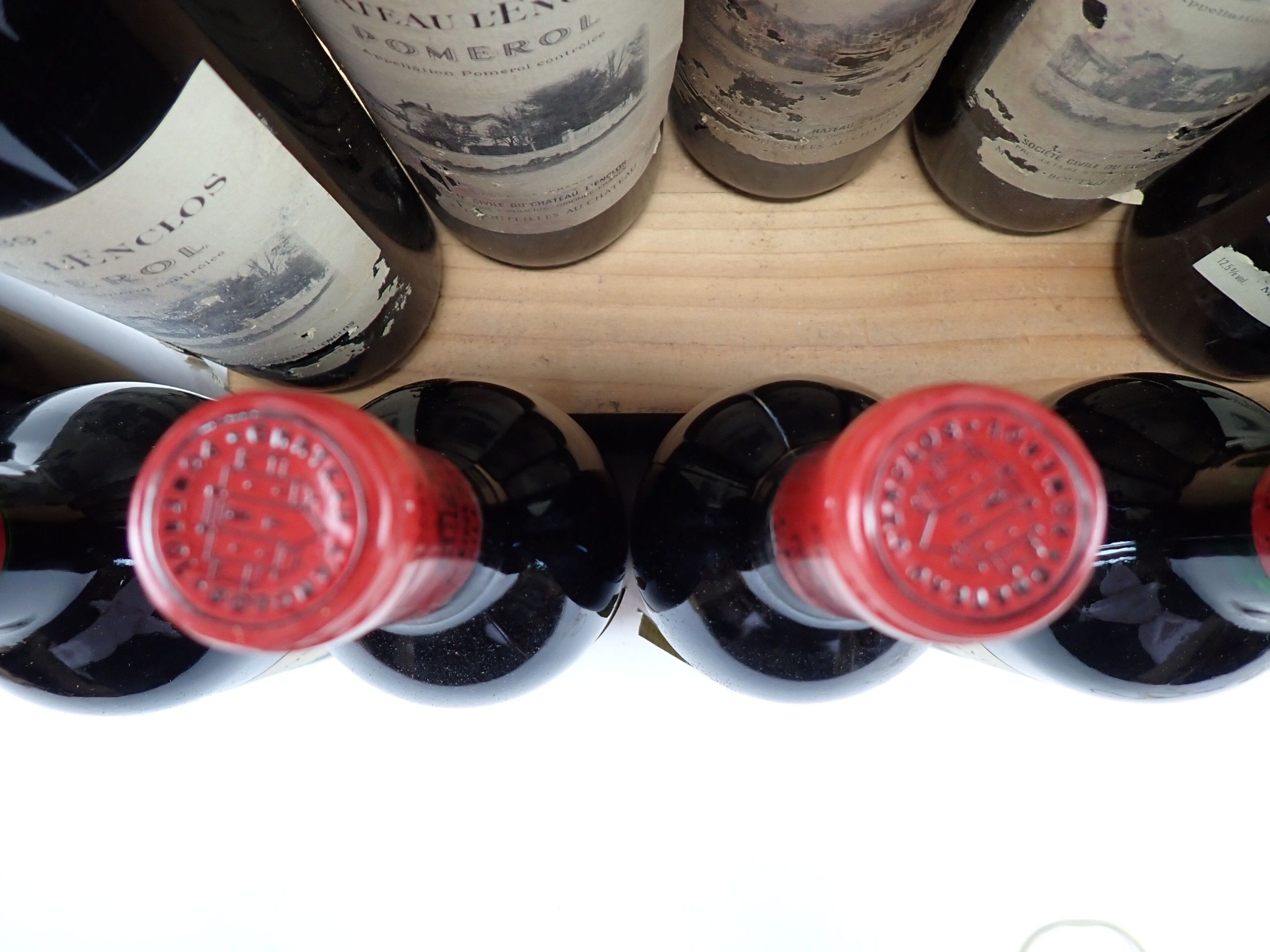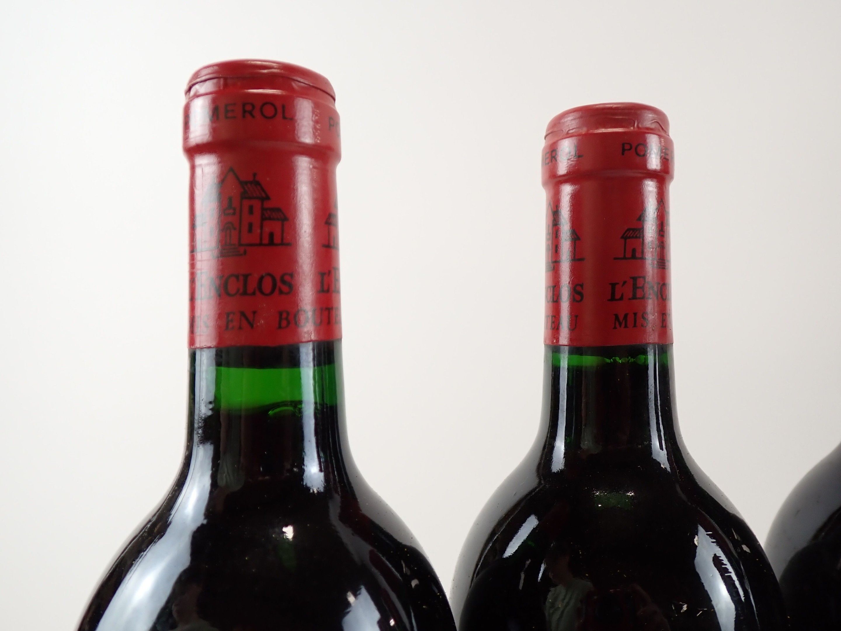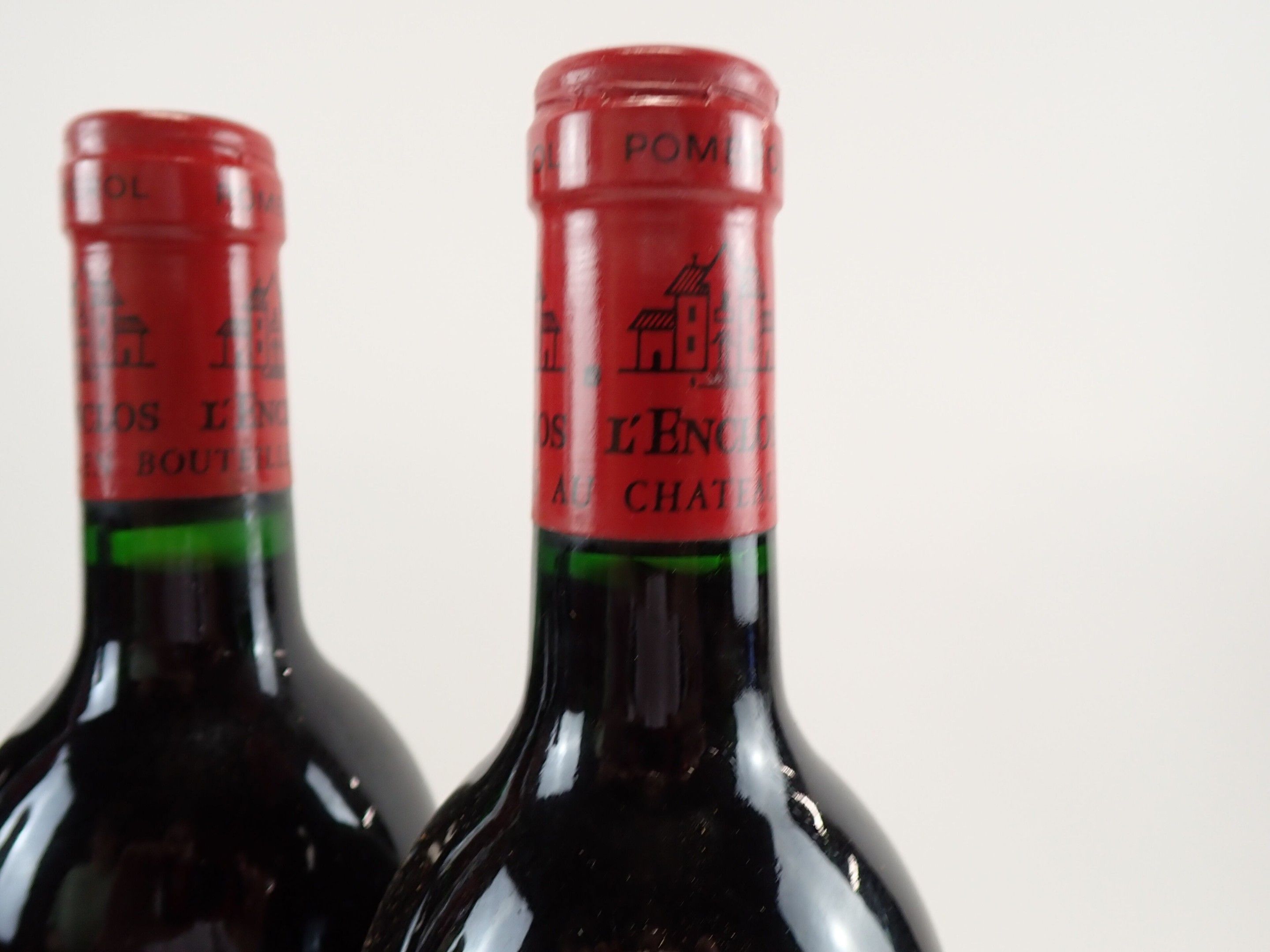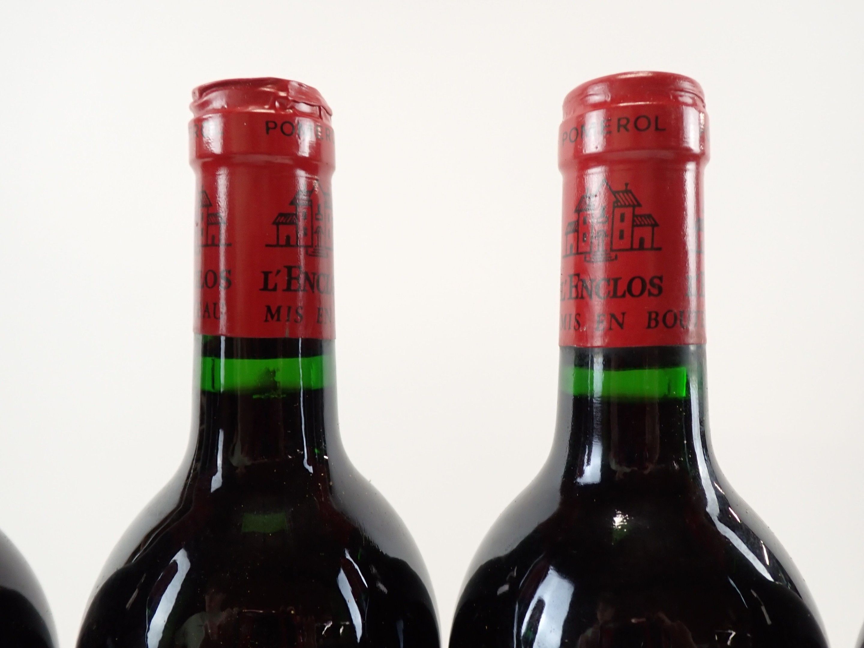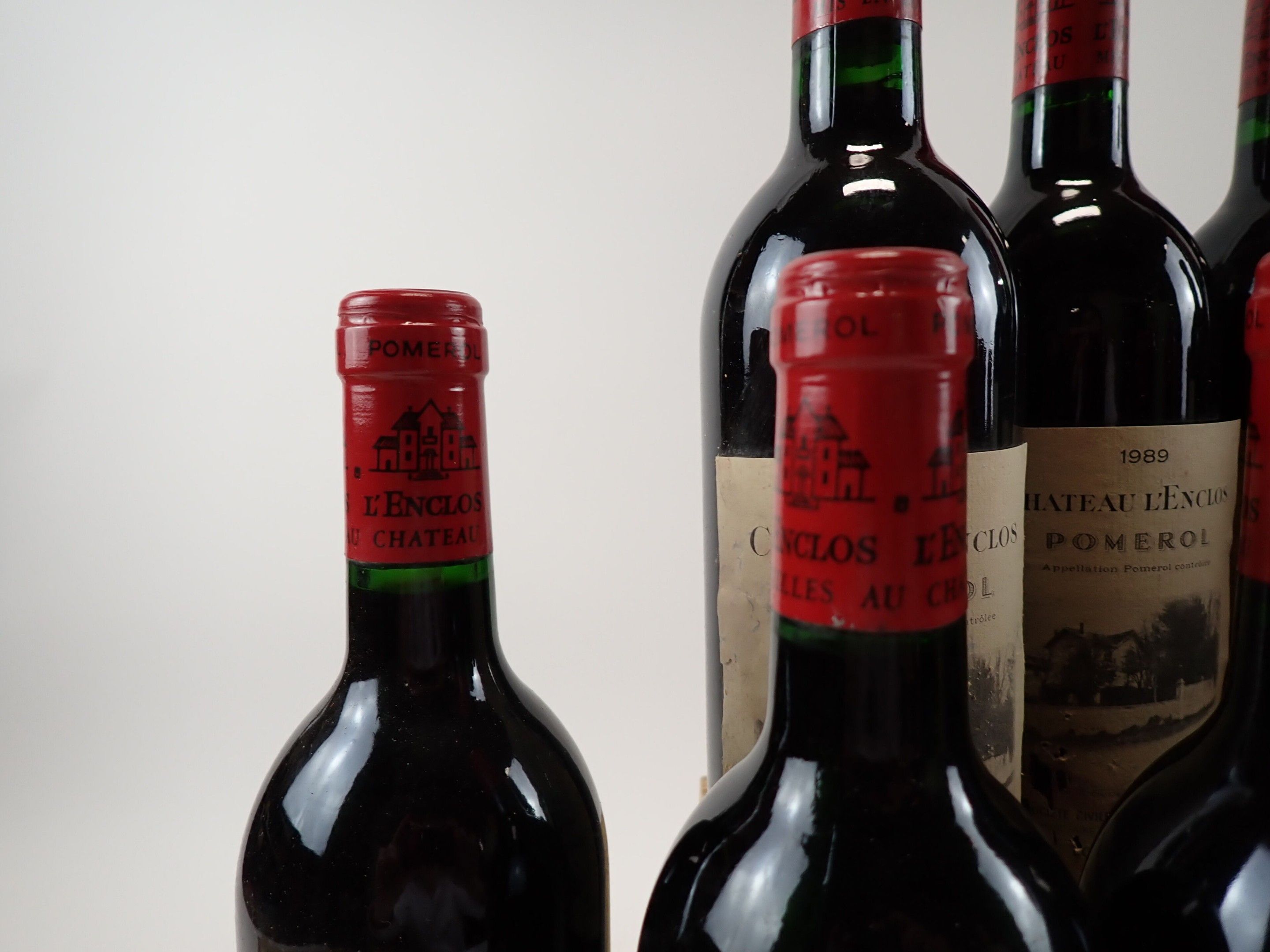BORDEAUX - 1 CBO, 12 bottles, Pomerol, Château L'Enclos, 1989. Labels faded, slightly dirty to dirty and slightly damaged to very damaged. 4 labels partially detached, 3 labels almost completely detached and 3 labels completely detached.
