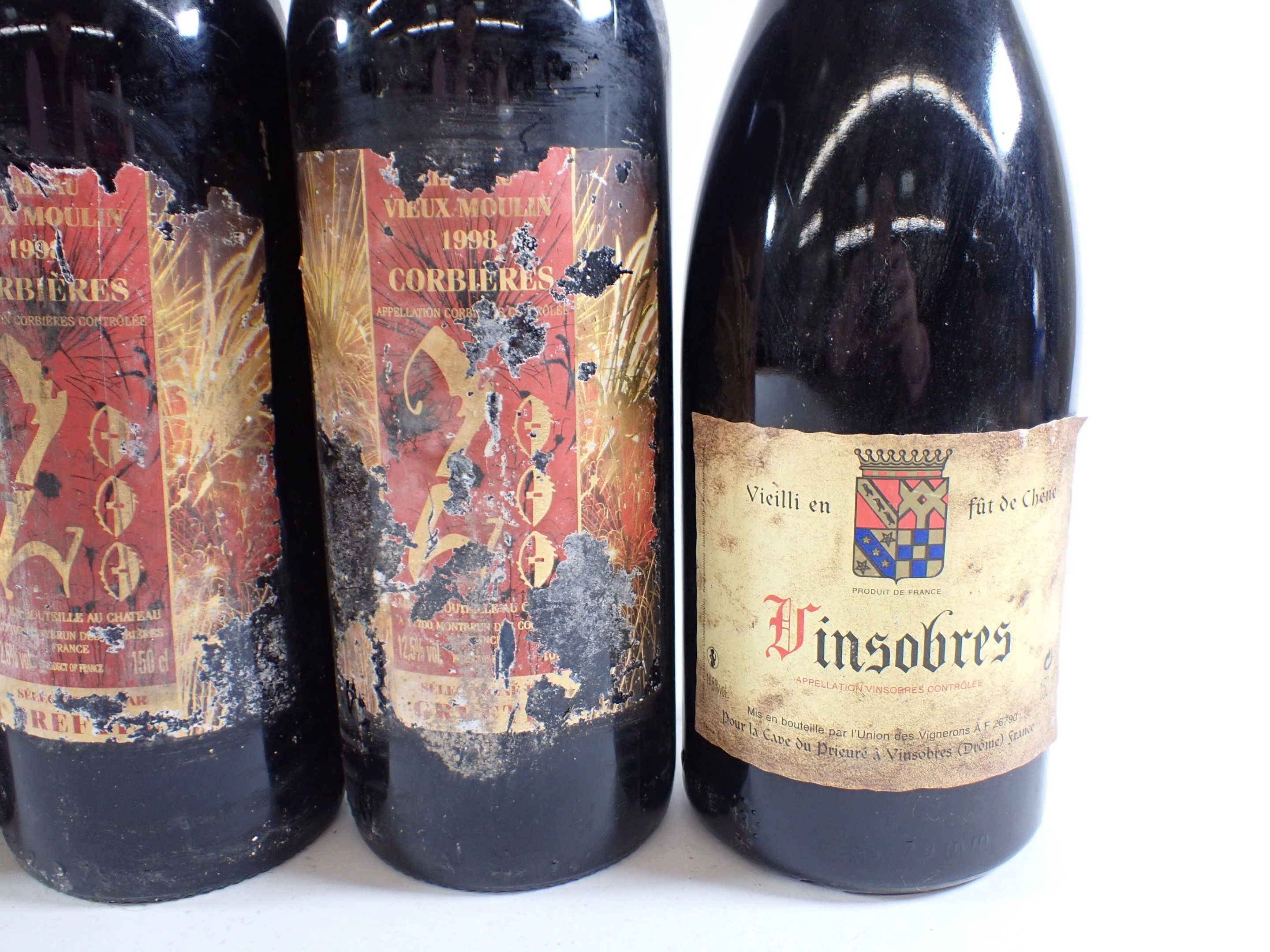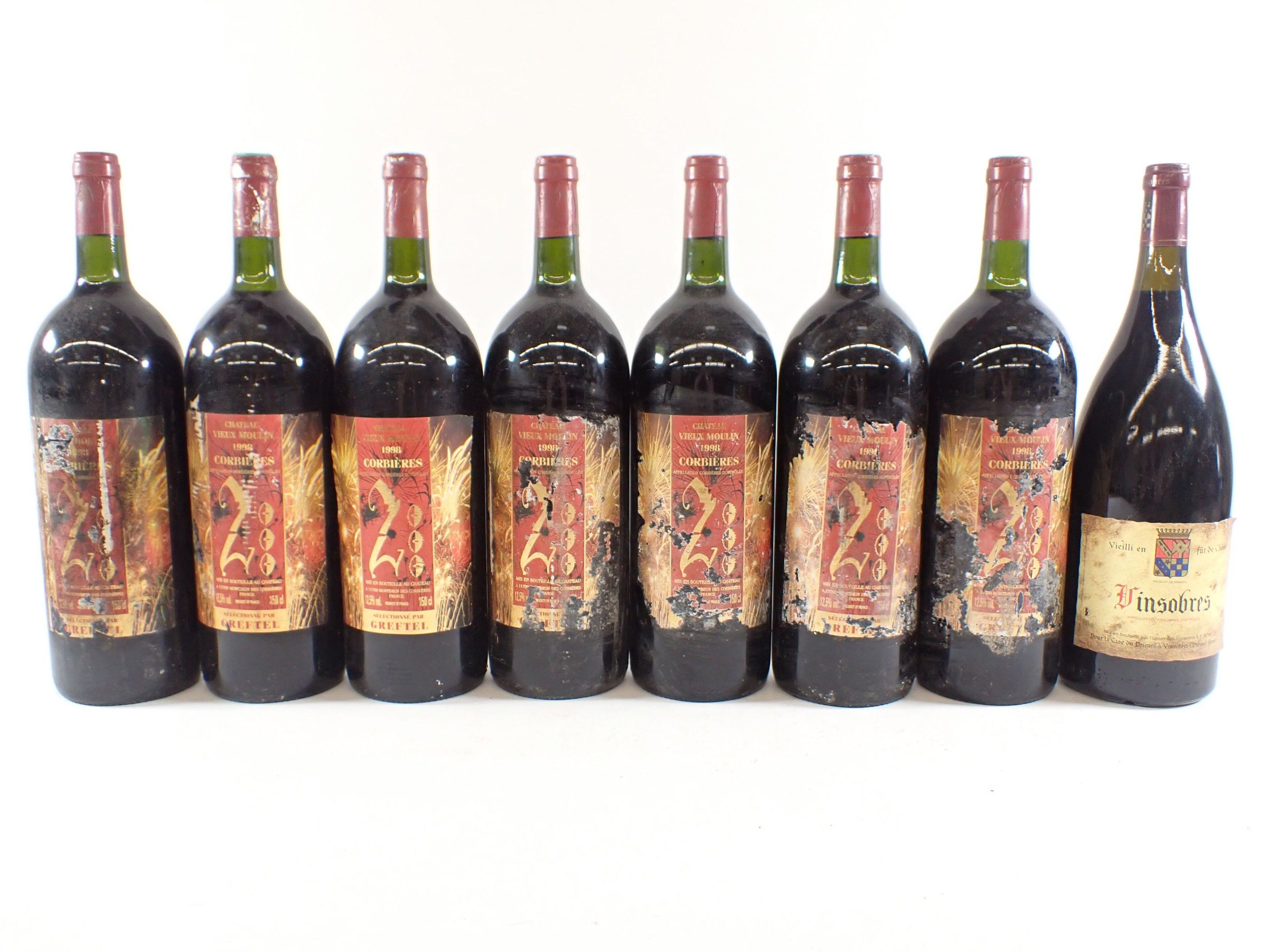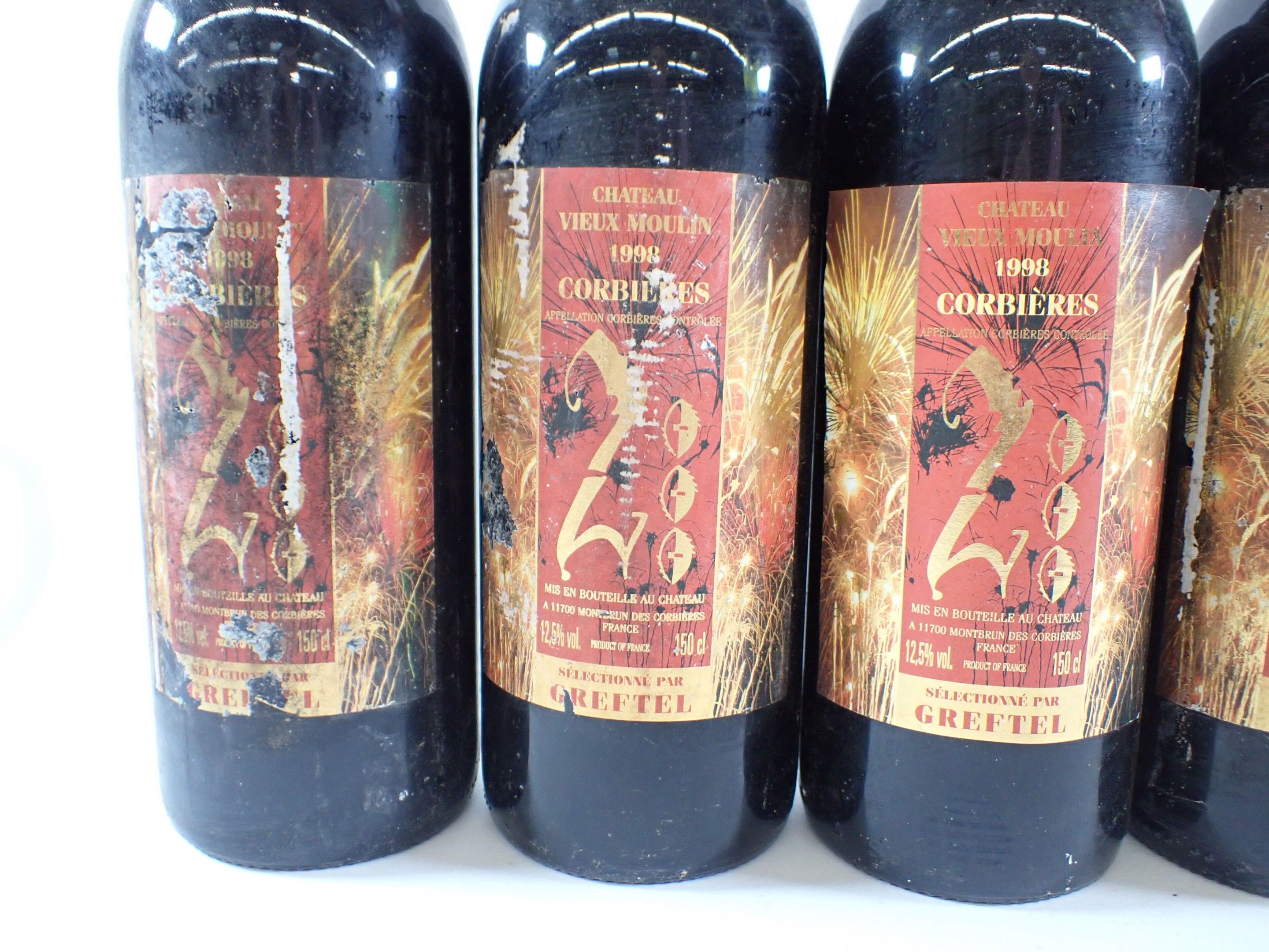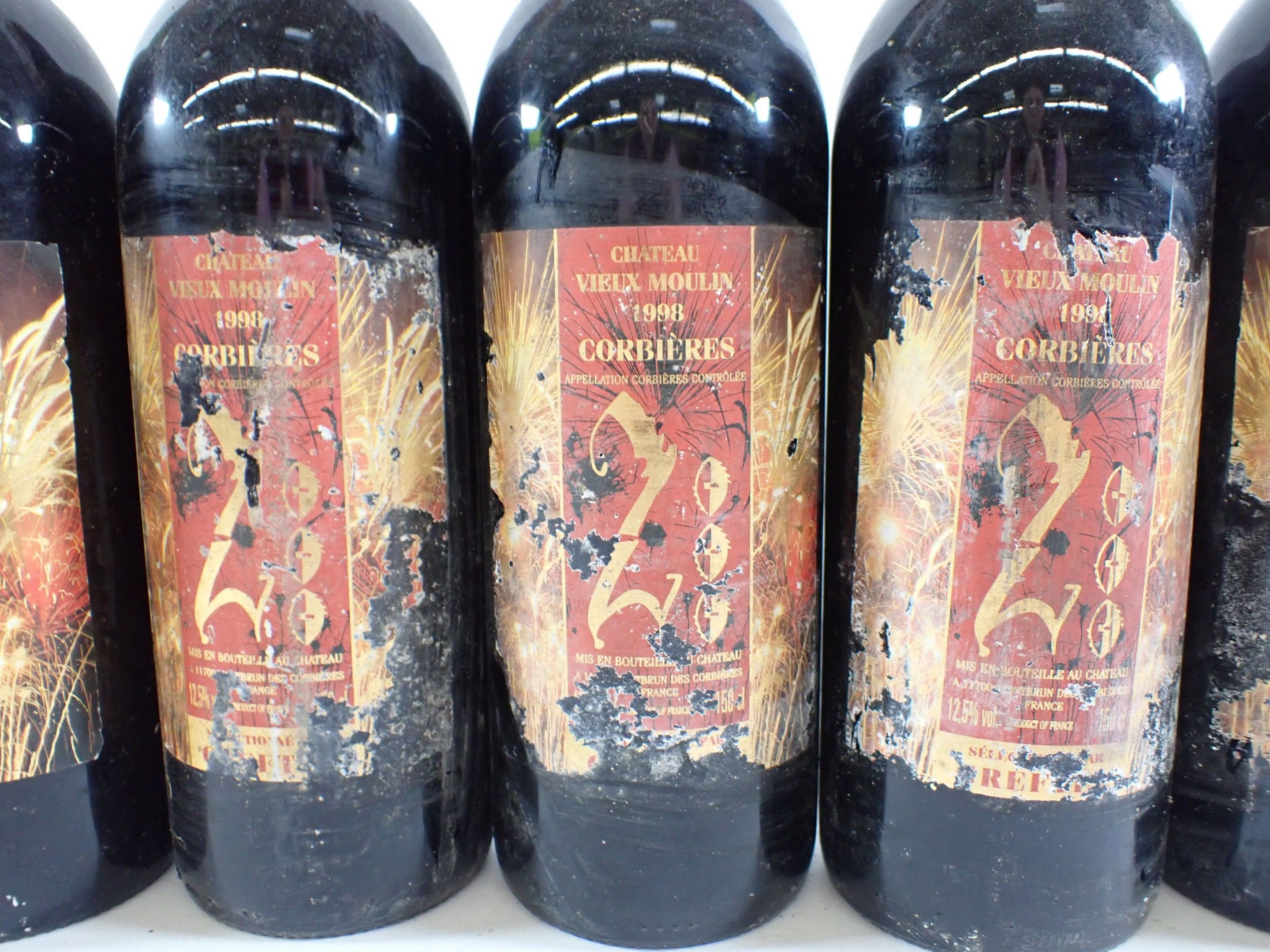 7 magnums, Corbières, Château Vieux Moulin, 1998. As is.