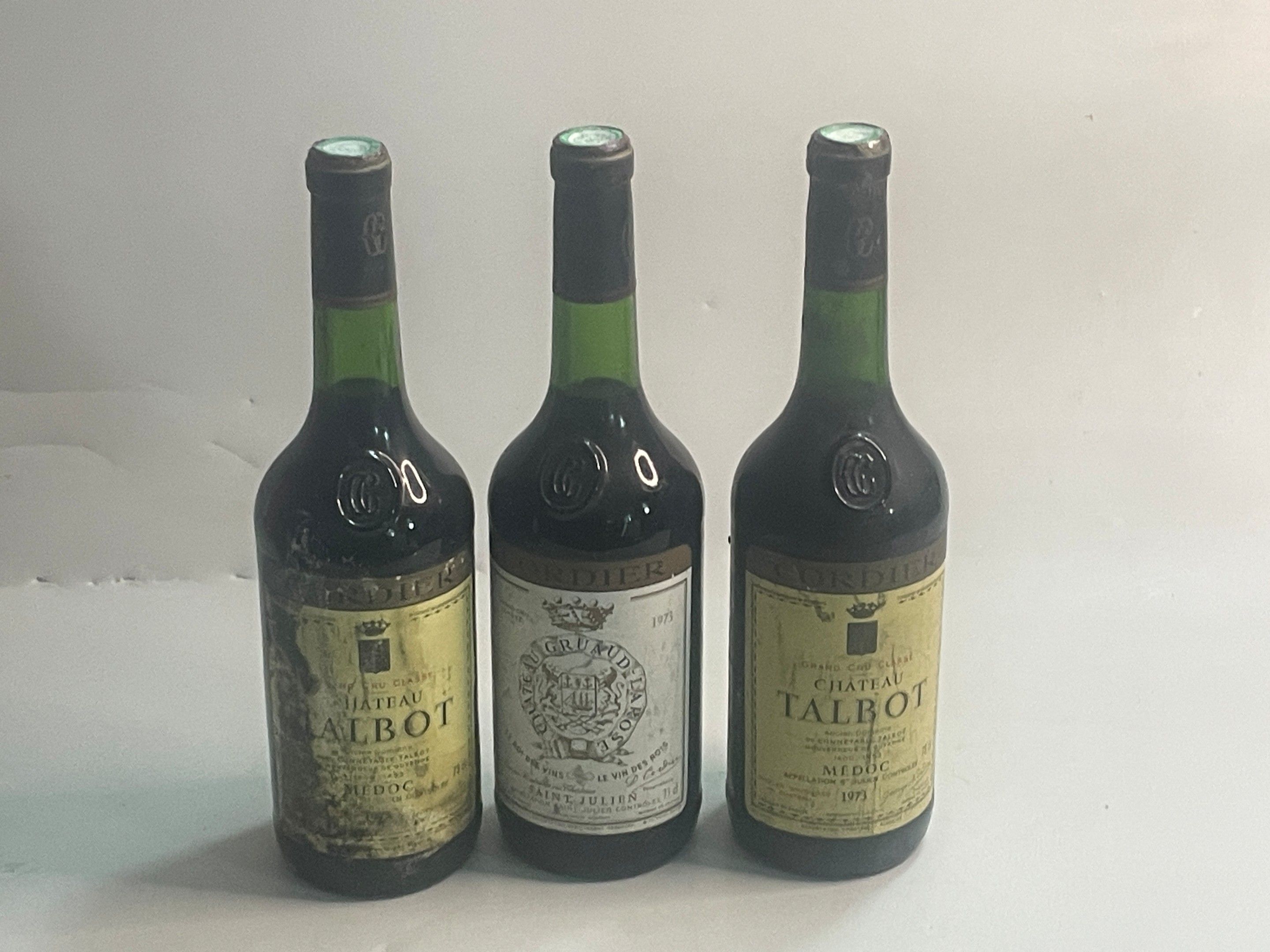 3 bottles 1 bottle :Chateau GRUAUD LAROSE 1973, 2 bottles Château TALBOT 1973 (stained labels)
