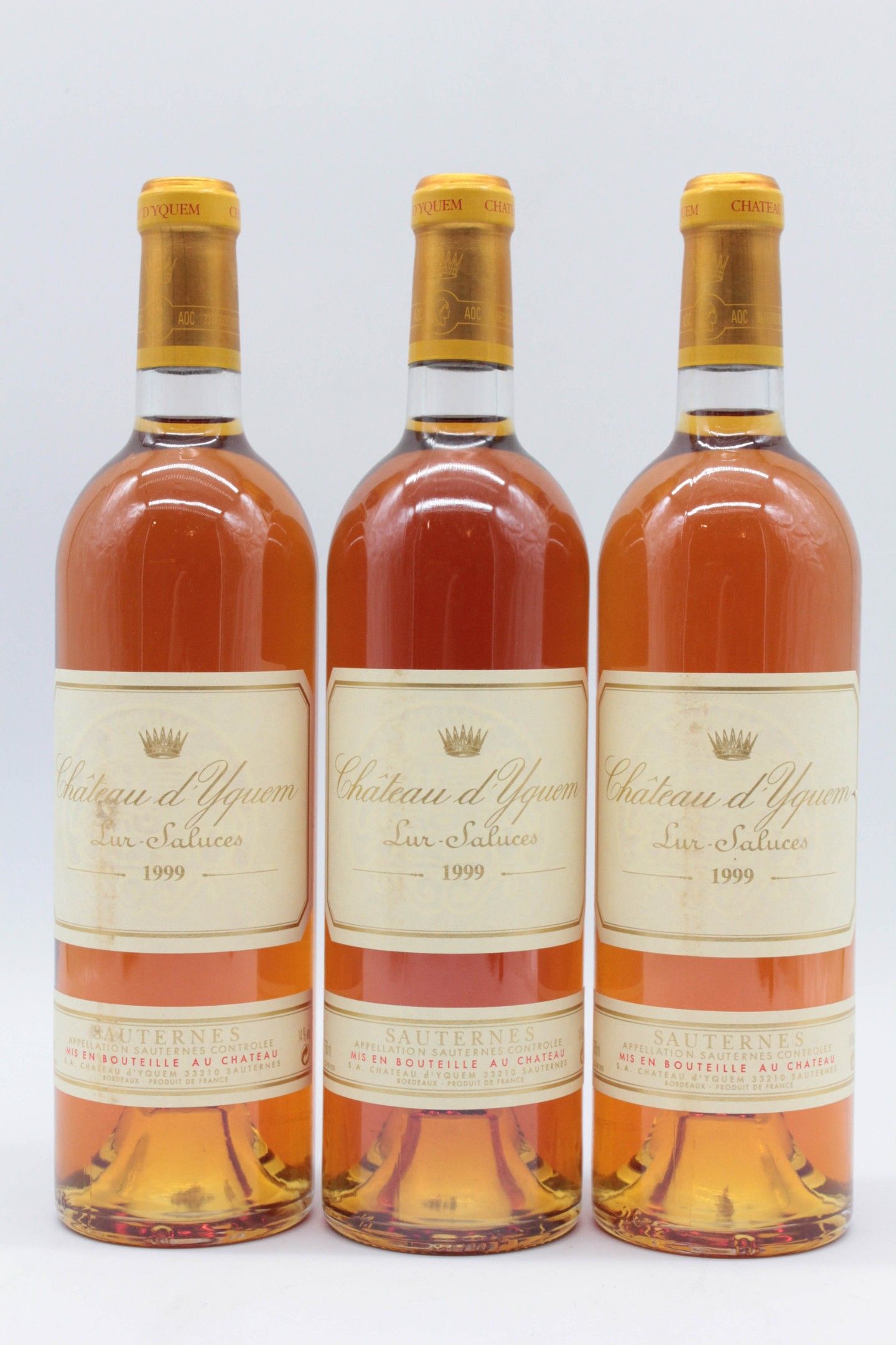 3 Bottles, Château D'YQUEM, Sauternes 1er Cru Supérieur, 1999