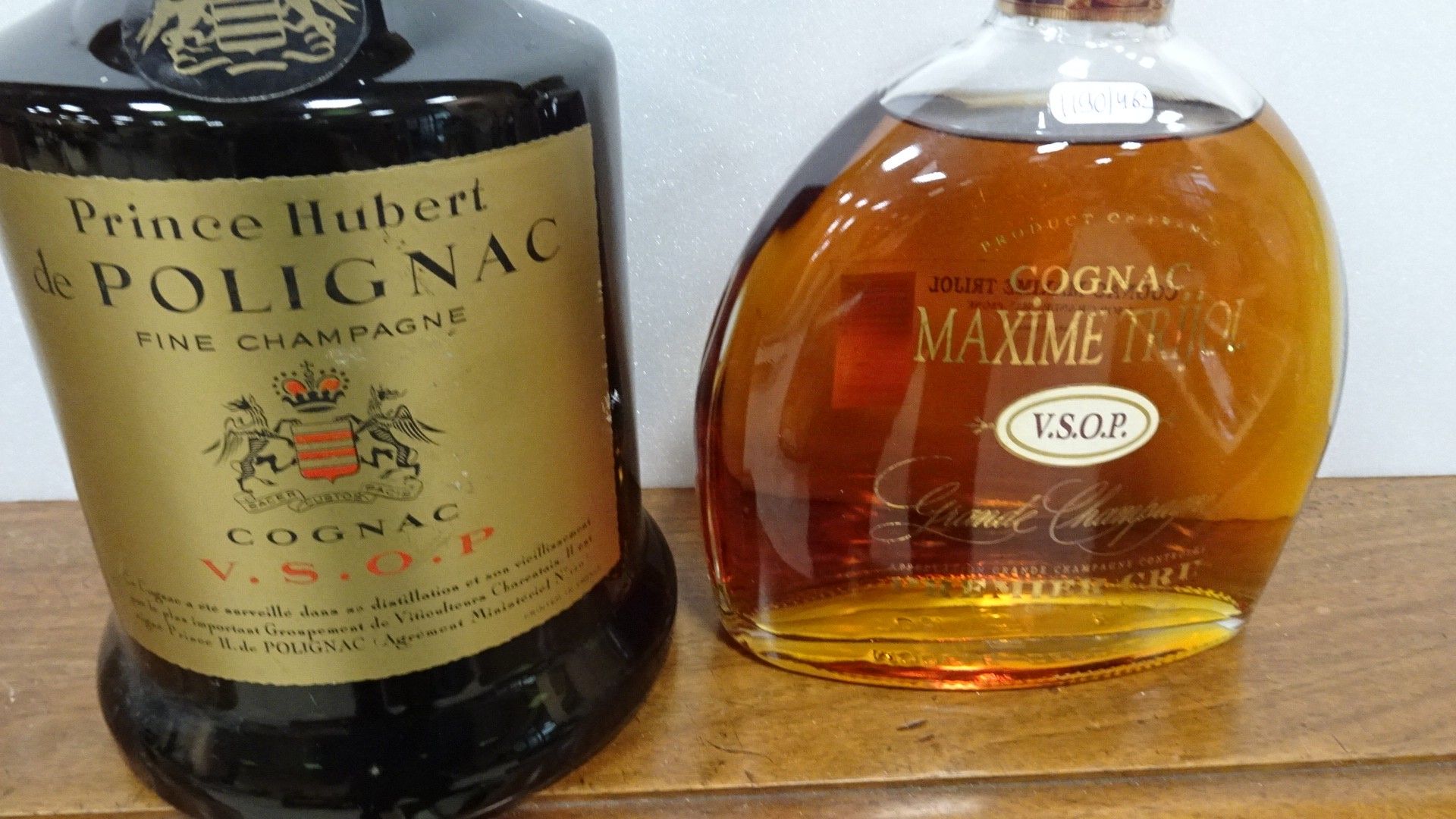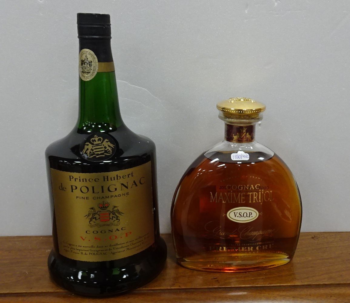 Batch of 2 Bts: 1 Bt of COGNAC Maxime Trijol. VSOP. Grande Champagne. 1er cru + 1 Magnum Cognac Prince Hubert de Polignac. VSOP.