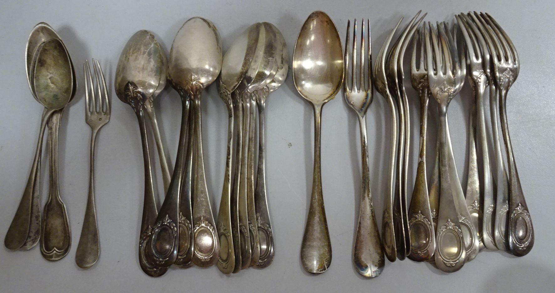 12 Silver flatware with medallion decoration. Minerve hallmark + 3 spoons and a fork. 2025 g