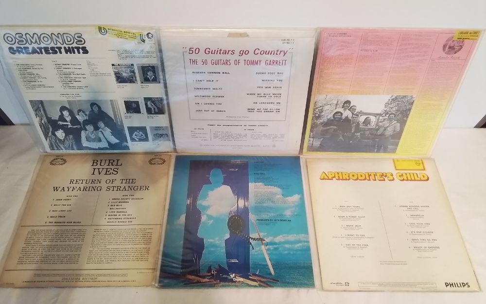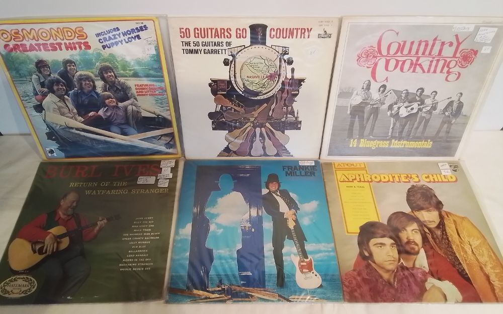 Pack of 12 LPs - Pop, Rock, Country, Bluegrass - compilations années 60-70-80 - Peter Frampton, 20 Blazing Bullets, Banjo Paris, Jimmy Cliff, The Osmonds, Burl Ives, Franz Miller