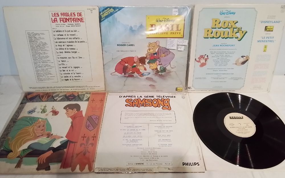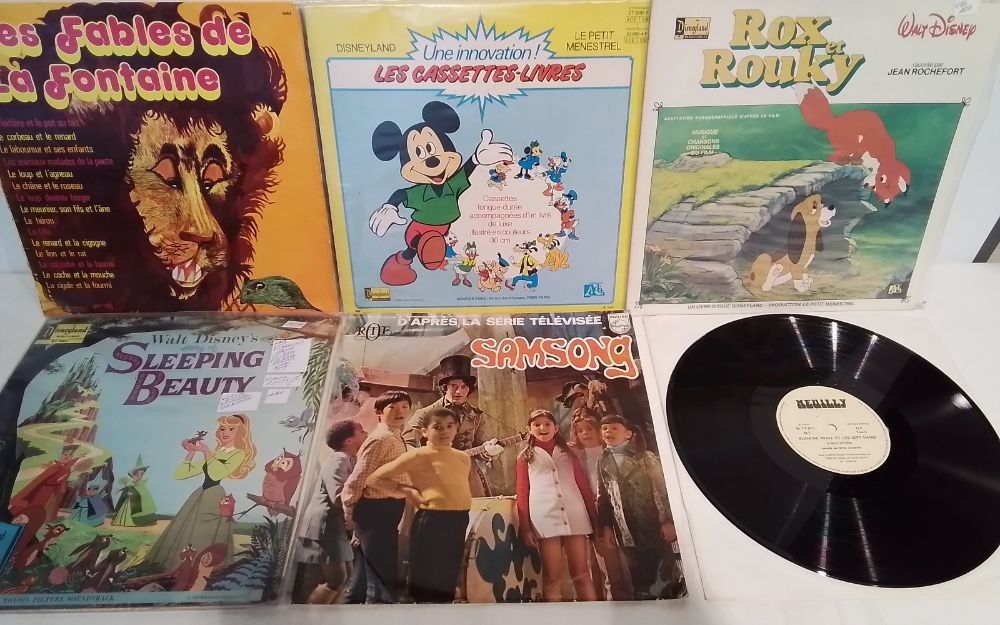 Pack of 6 33T vinyl records - Children's stories and cartoons from the 60s to the 80s