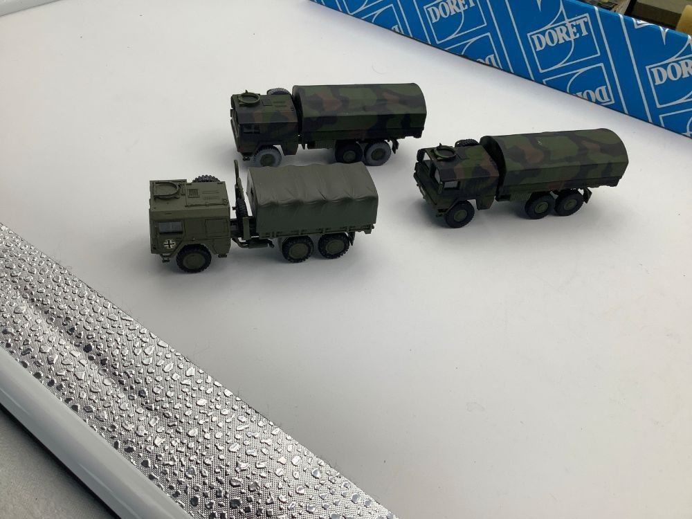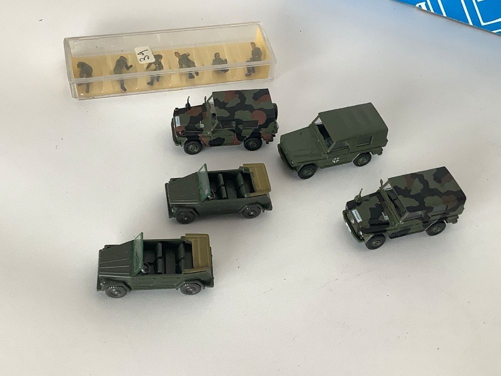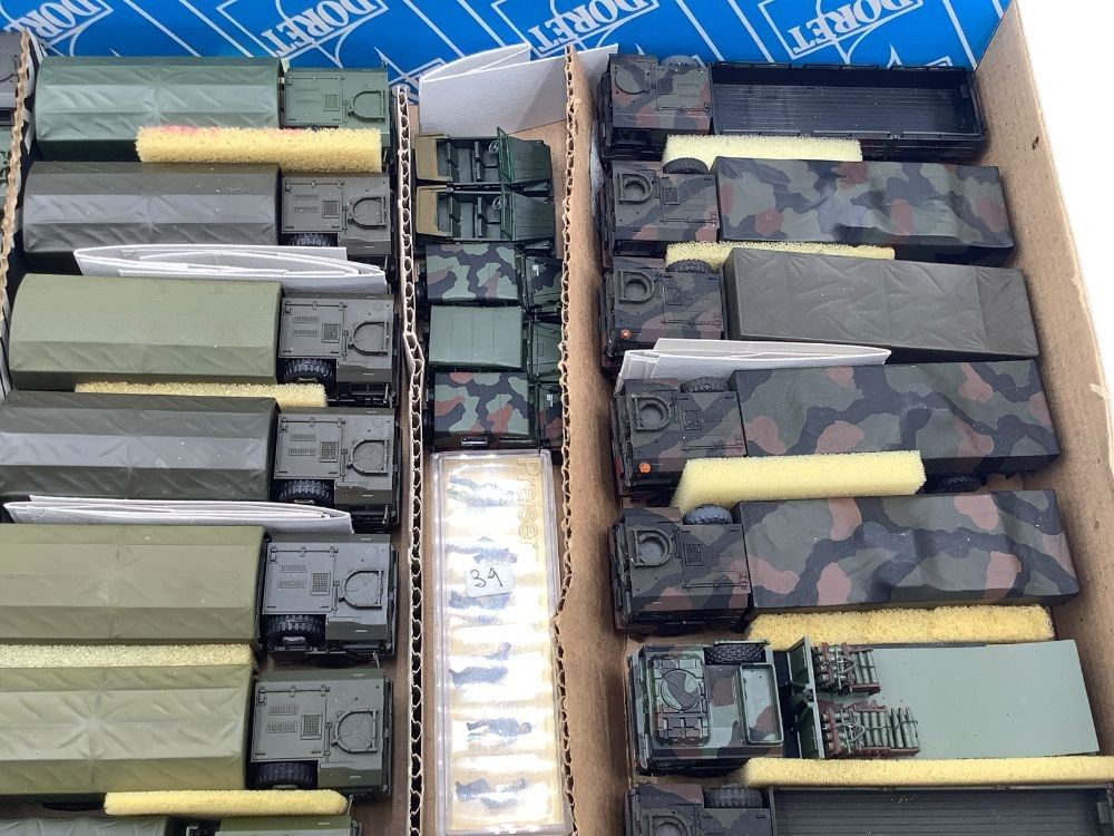 Lot of 42 various military vehicles: MAN Military 4x4 trucks 6x6 8x8 , MERCEDES BENZ , AND 6 figurines. As is