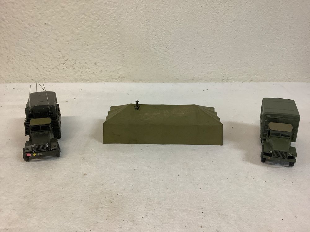 Lot of more than 20 military transport vehicles and various equipment. Some from ROCO. Good condition, lot sold as is.