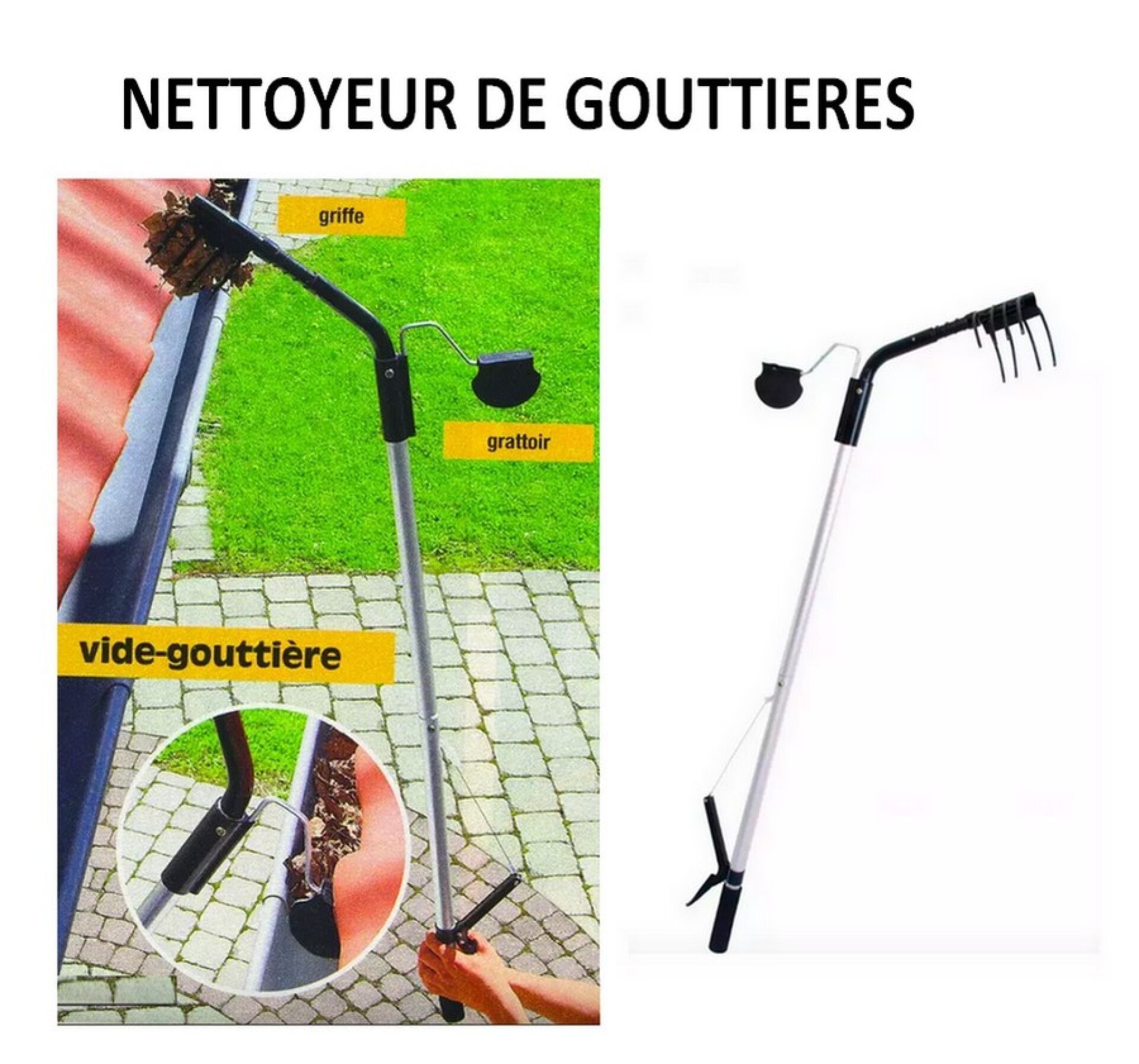 Gutter cleaner with pole Brand new. Place the plastic spatula in the gutter and gently slide the waste towards one end. Use the pliers to remove the waste from the gutter.