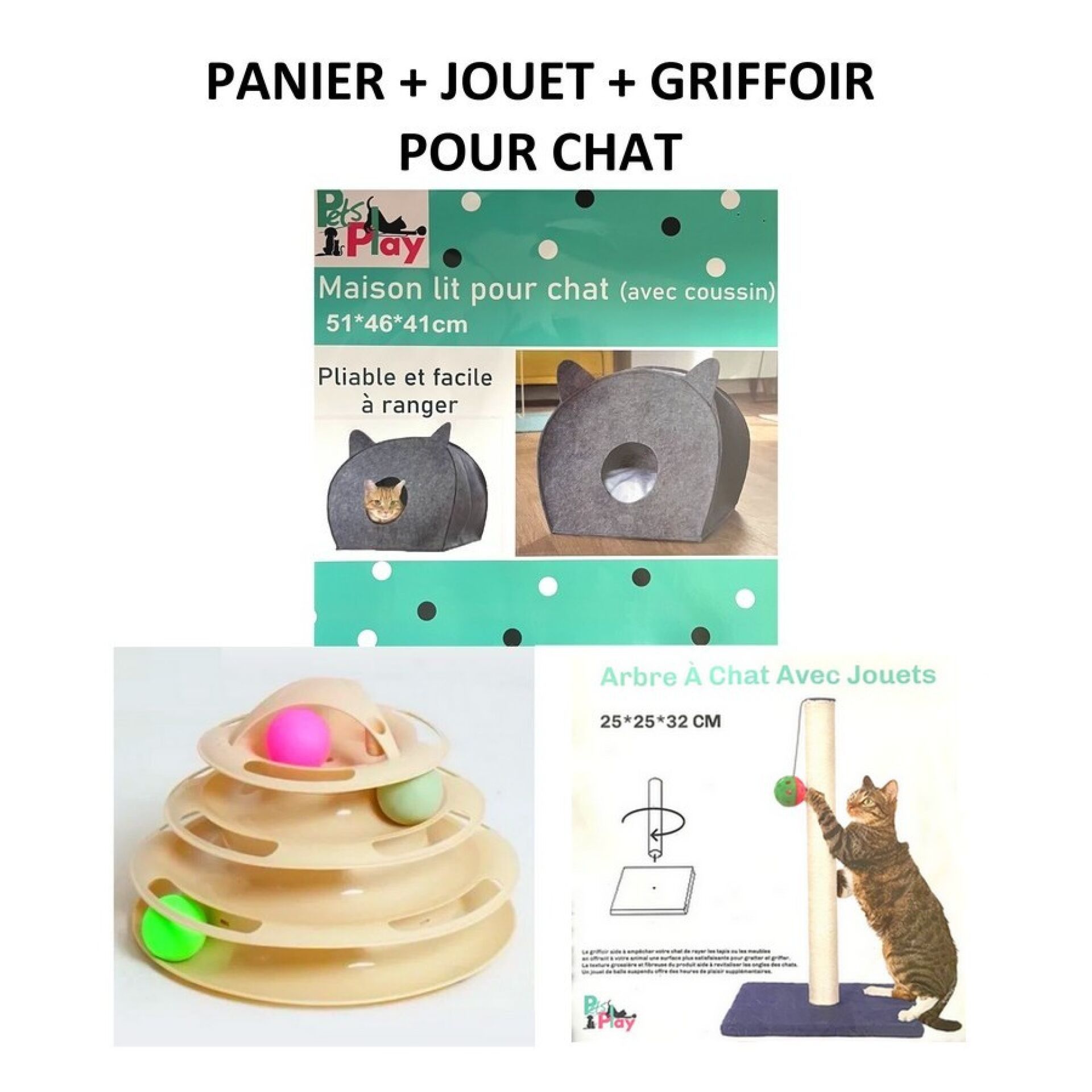 Pet set including 1 basket, 1 scratching post, 1 new cat toy