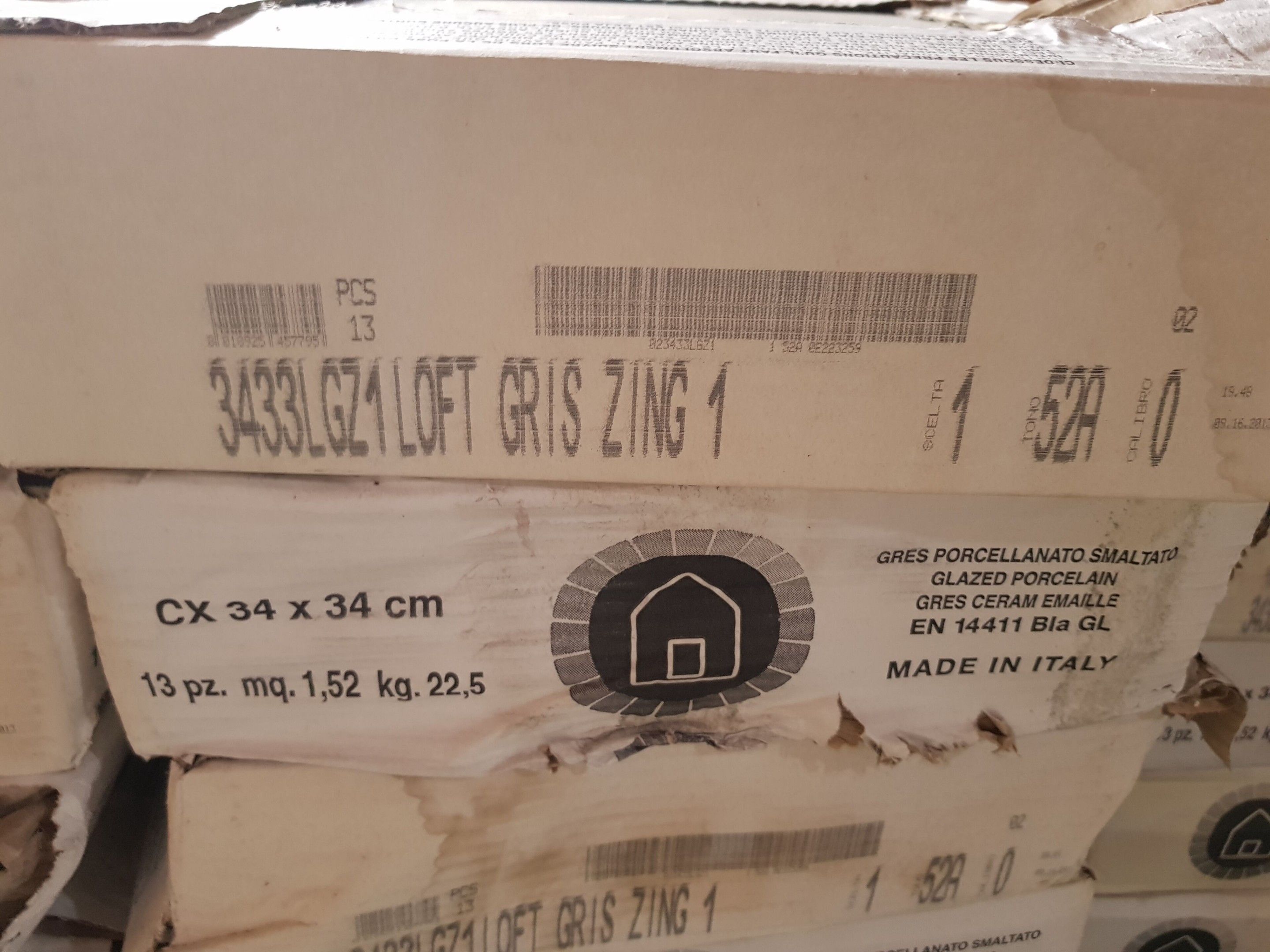 Pallet grey LOFT ZINC 1, 48 packages of 13 pieces, 34x34x0.6 or 72m².